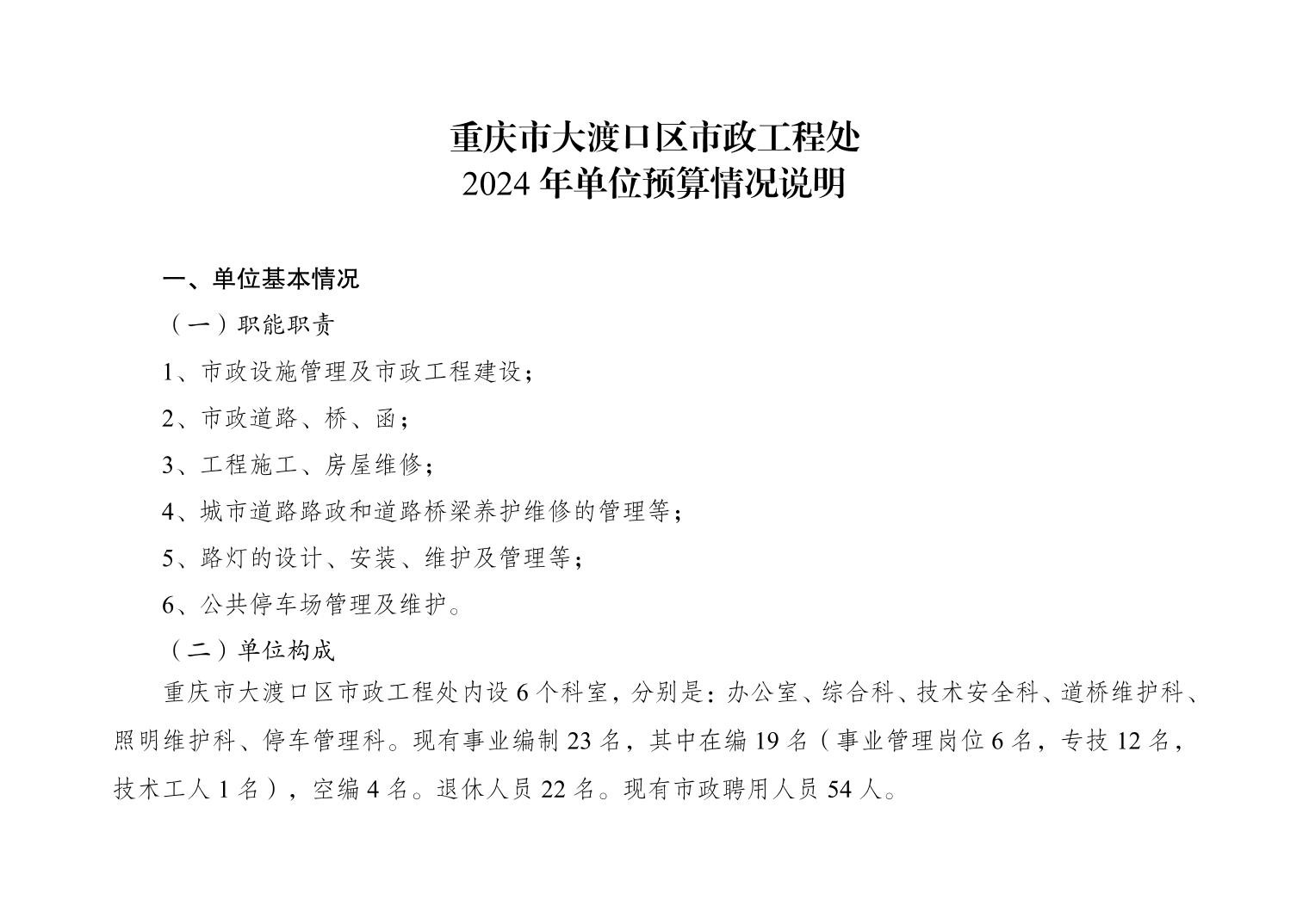 重庆市大渡口区市政工程处2024年单位预算情况说明