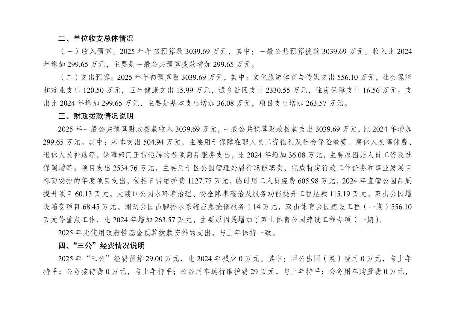 重庆市大渡口区公园管理处2025年单位预算情况说明