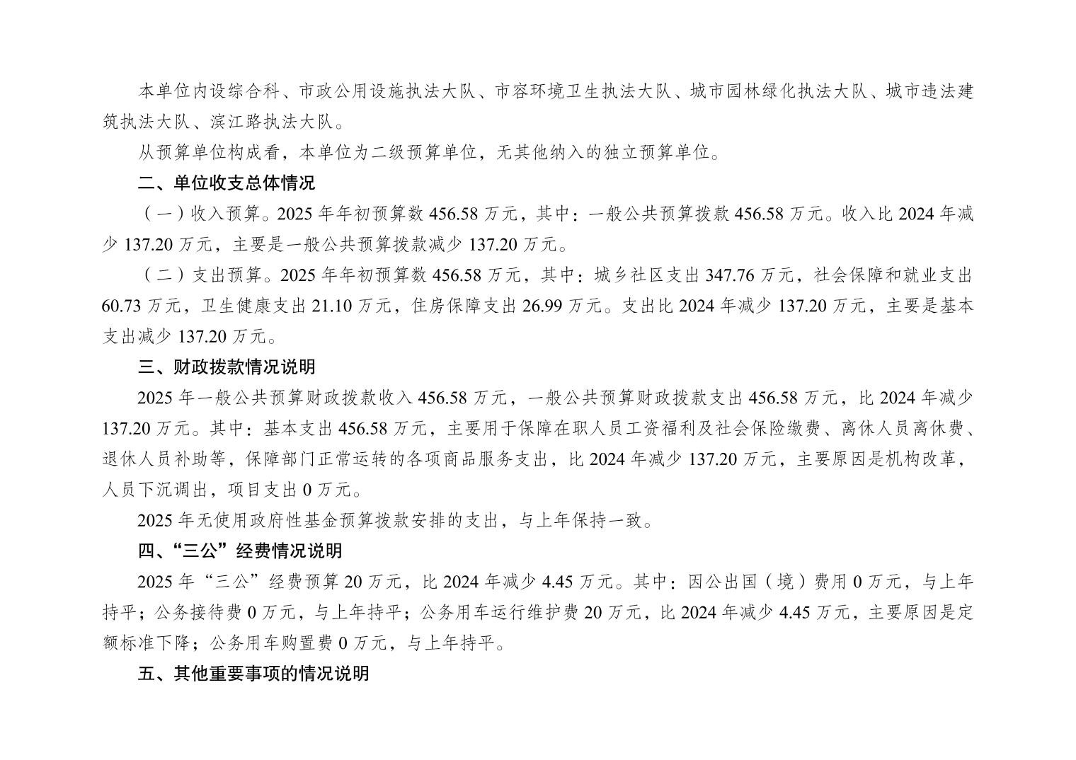 重庆市大渡口区城市管理综合行政执法支队2025年单位预算情况说明