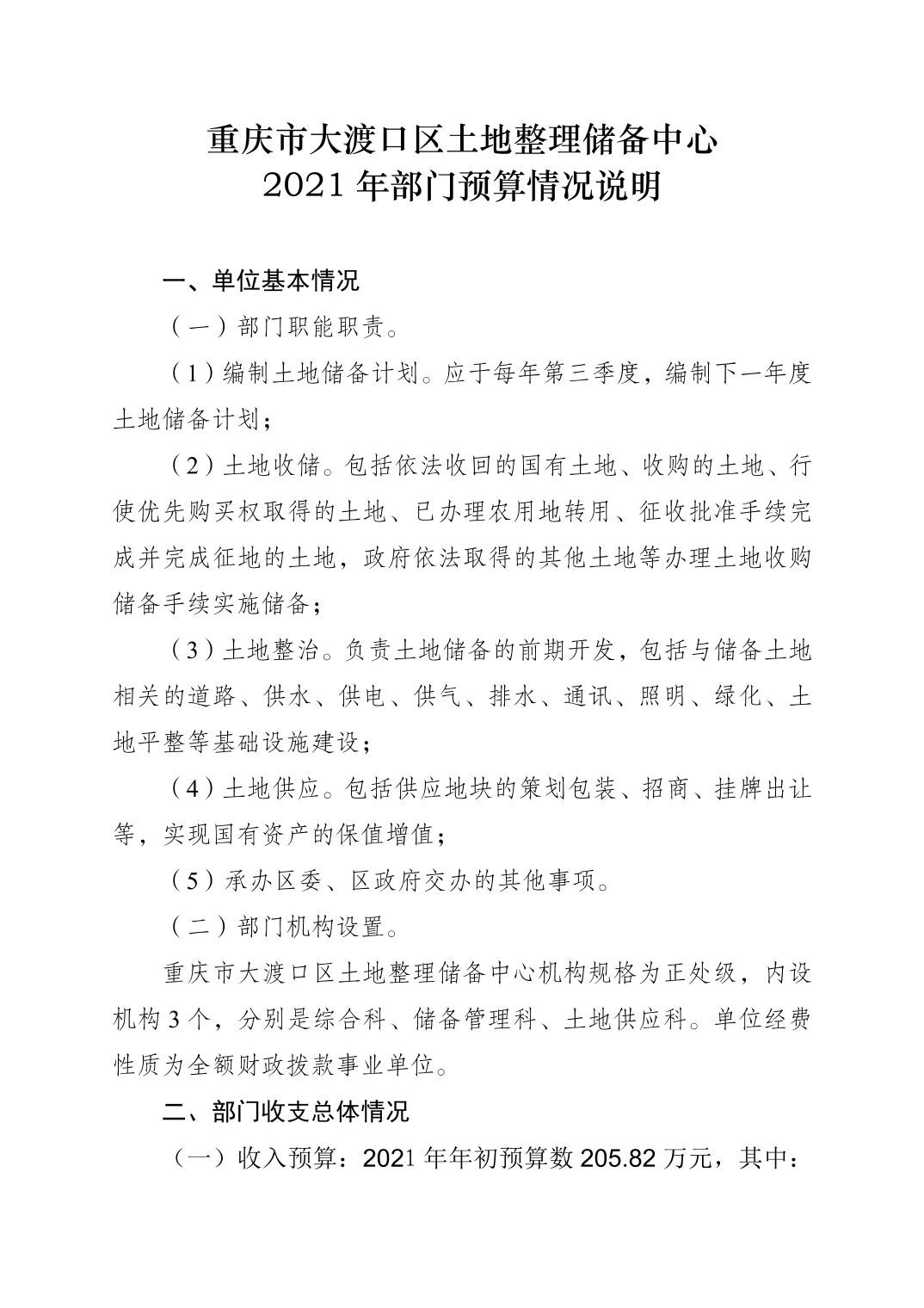 重庆市大渡口区土地整理储备中心2021年部门预算情况说明