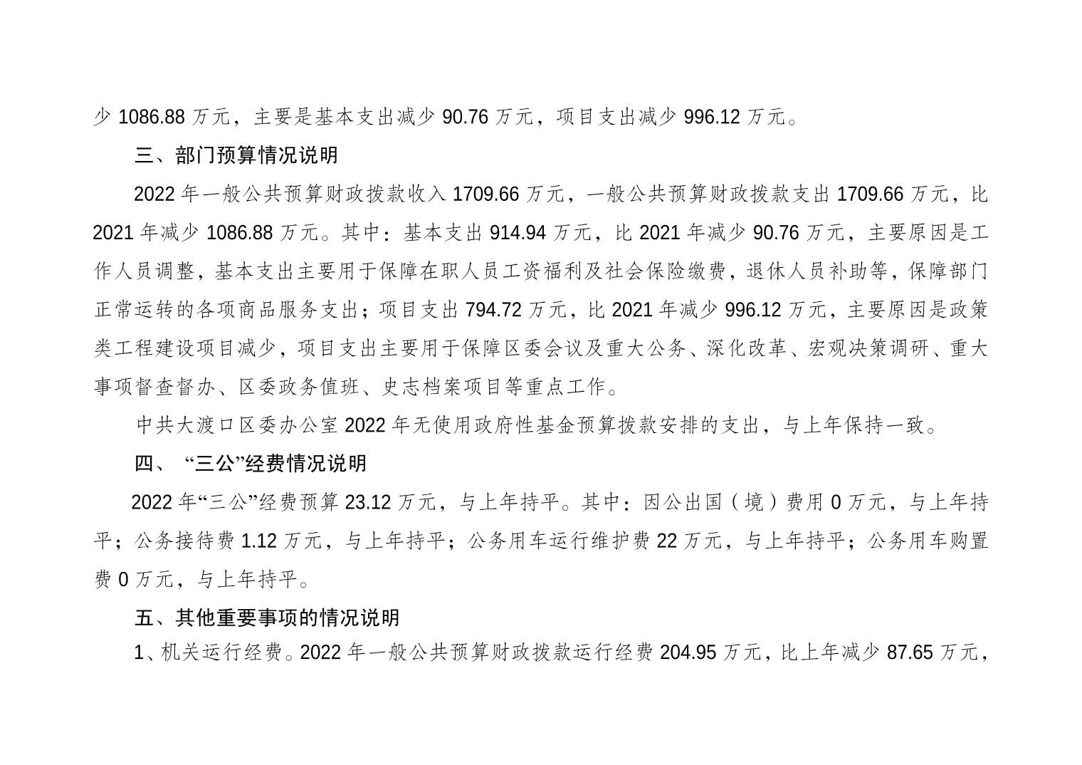 中国共产党重庆市大渡口区委员会办公室2022年部门预算公开