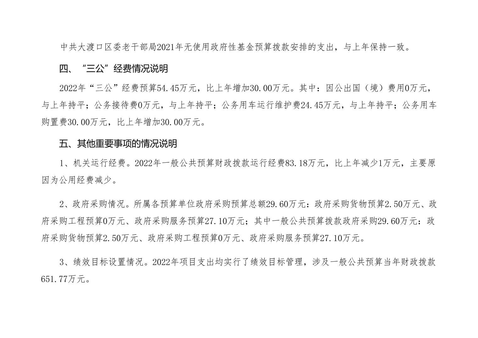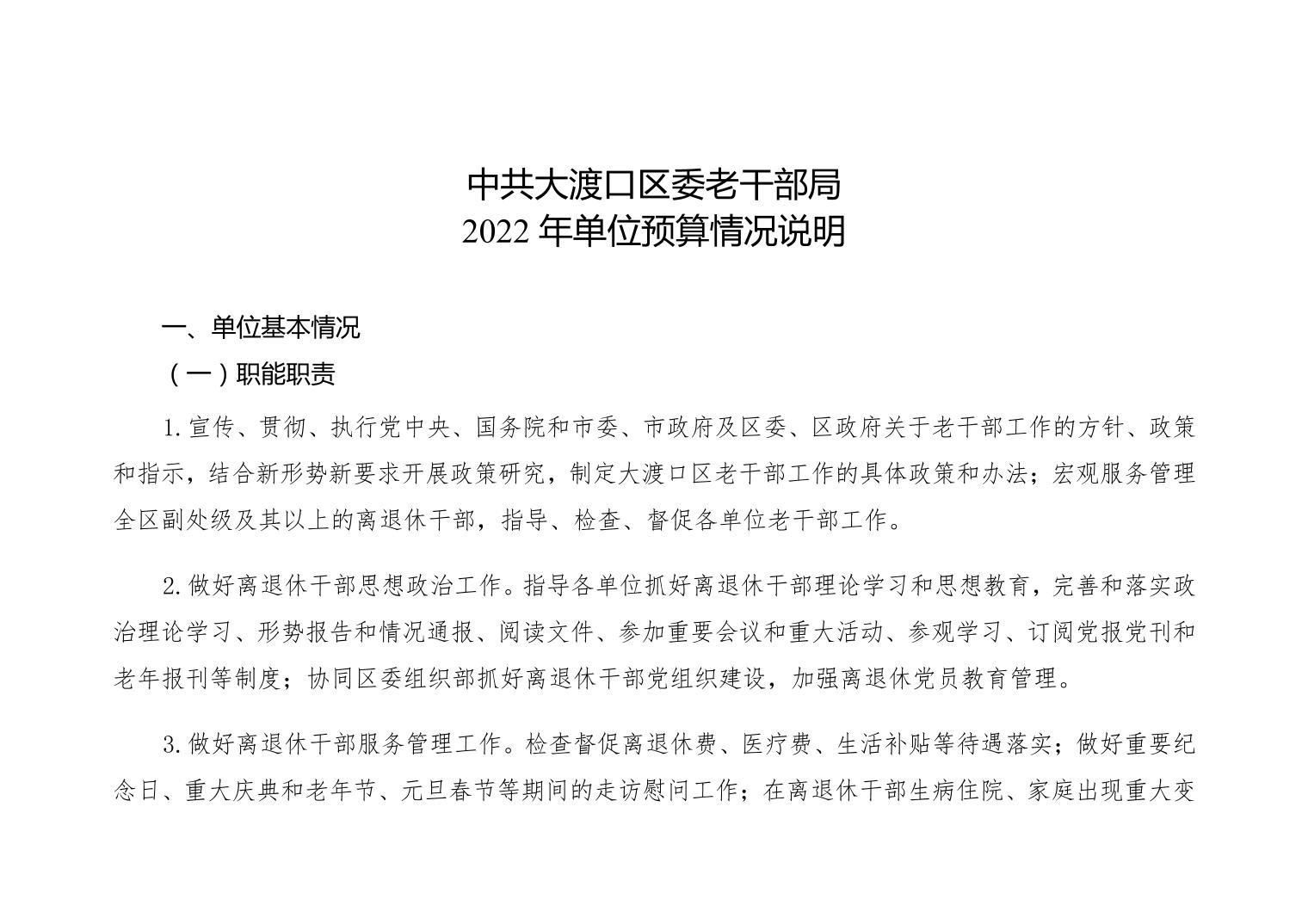 中国共产党重庆市大渡口区委老干部局2022年部门预算公开