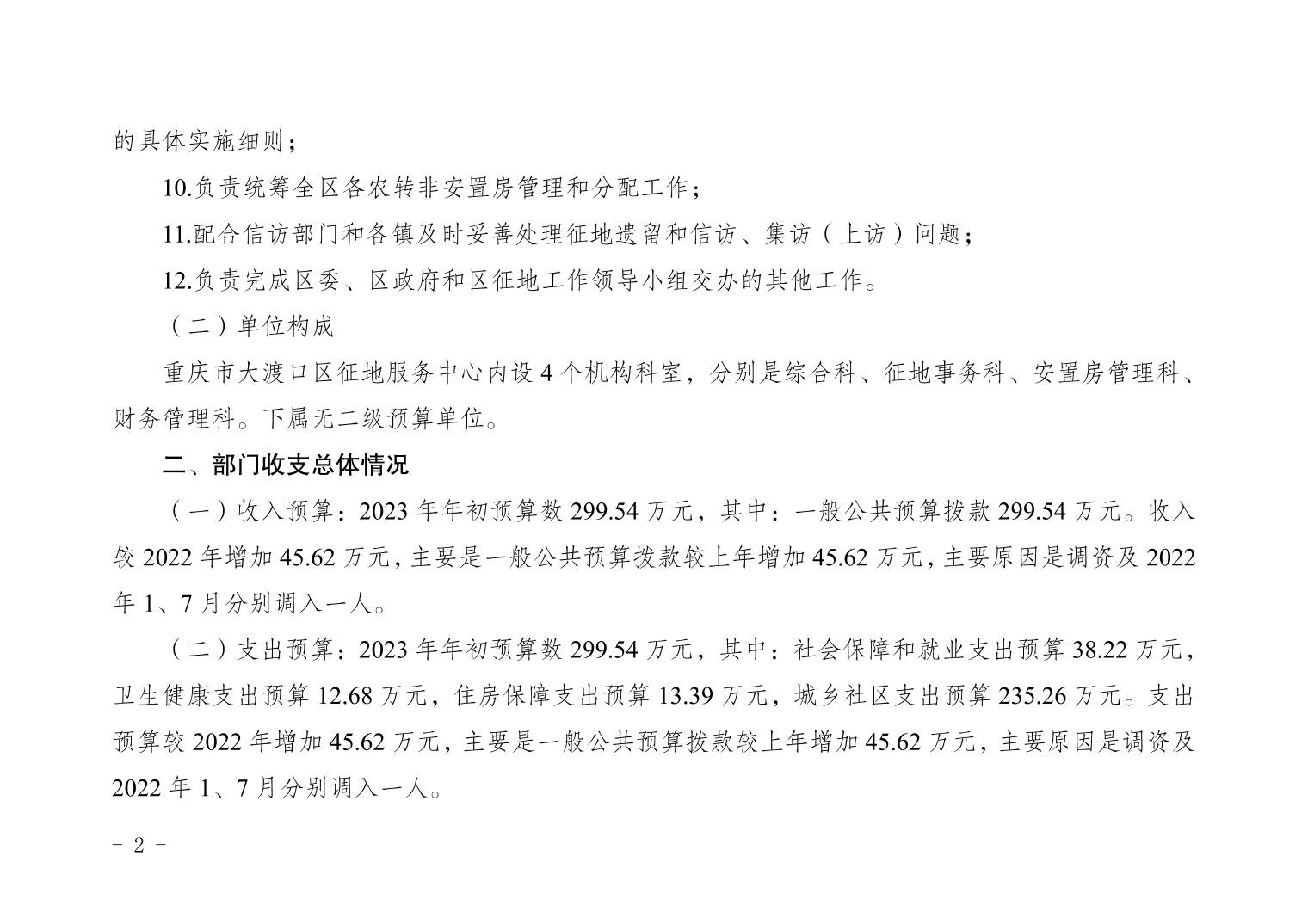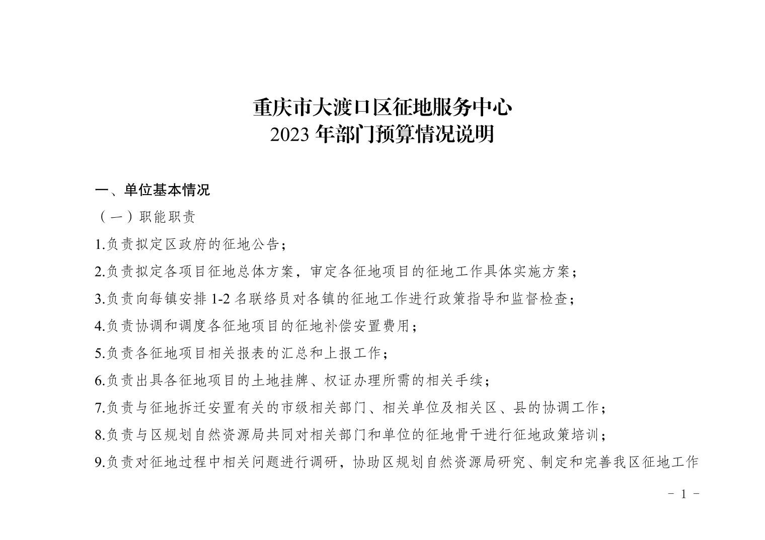 重庆市大渡口区征地服务中心2023年部门预算情况说明