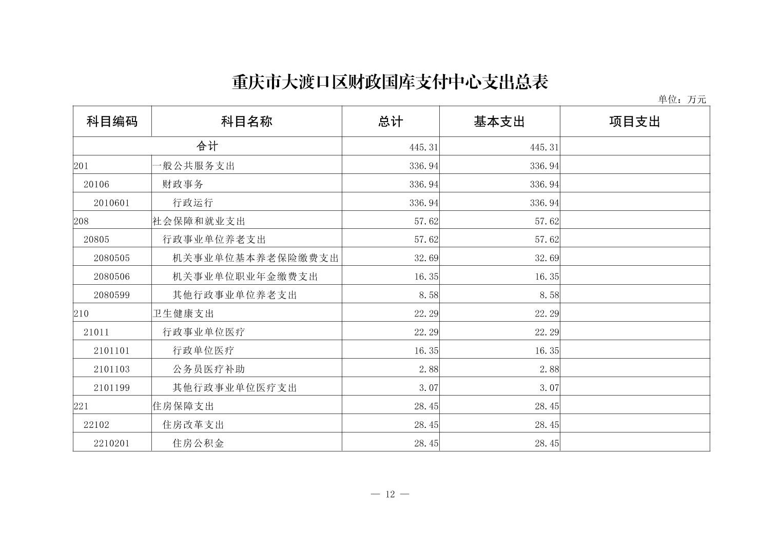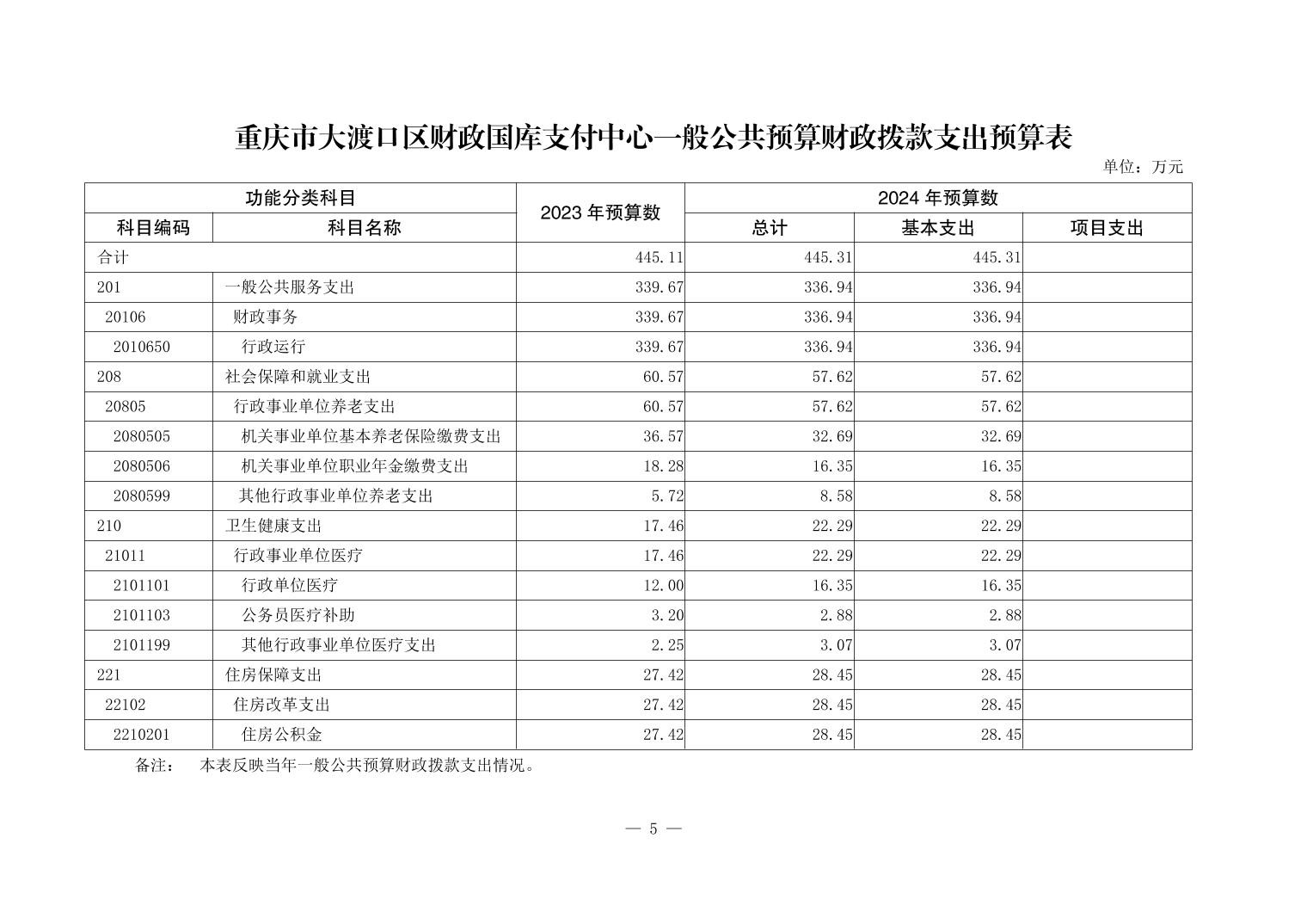 重庆市大渡口区财政国库支付中心2024年单位预算情况说明