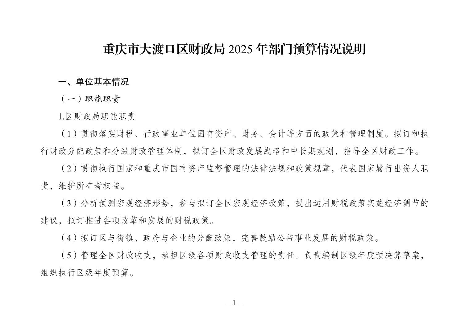 重庆市大渡口区财政局2025年部门预算情况说明