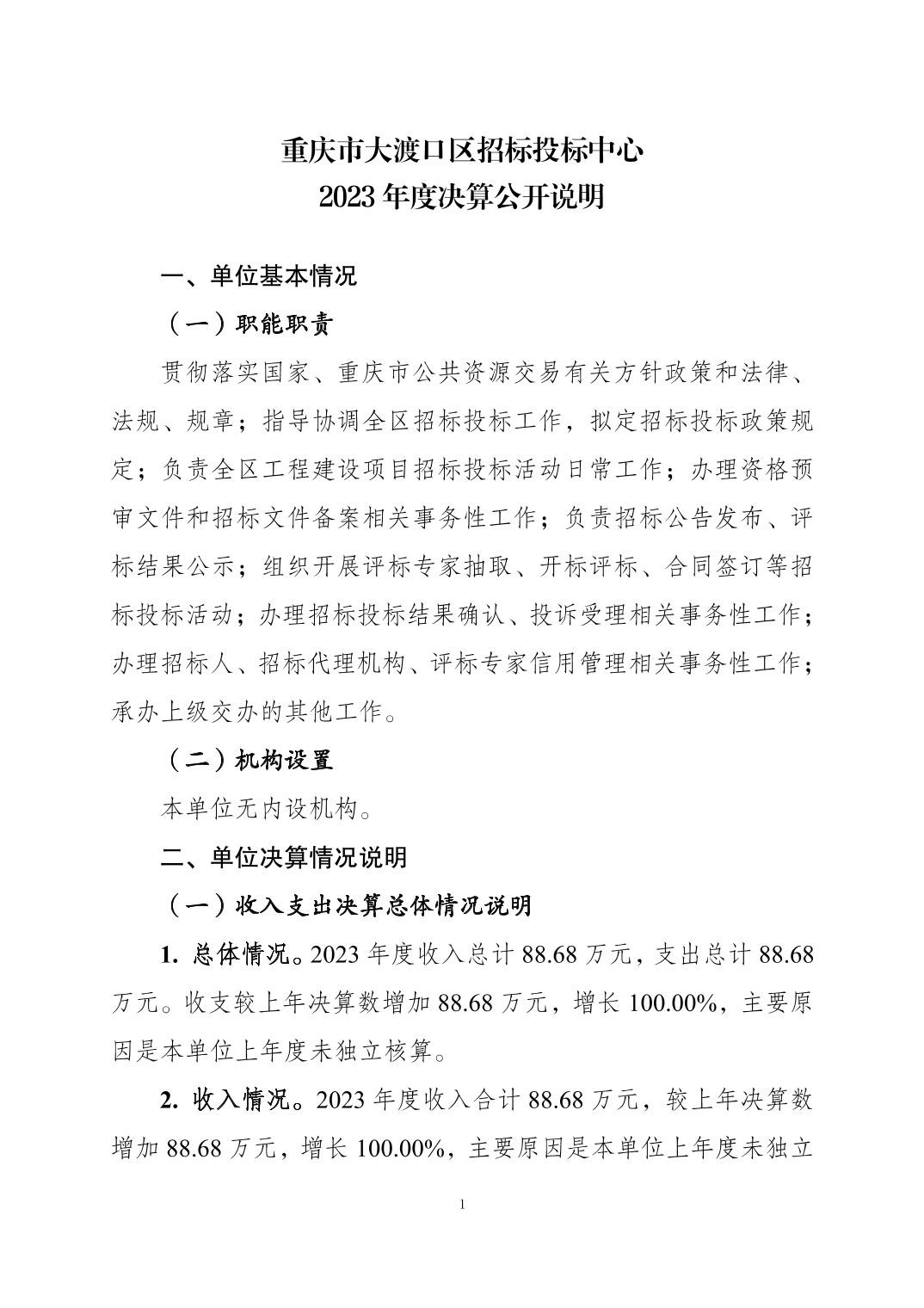 重庆市大渡口区招标投标中心2023年度决算公开说明
