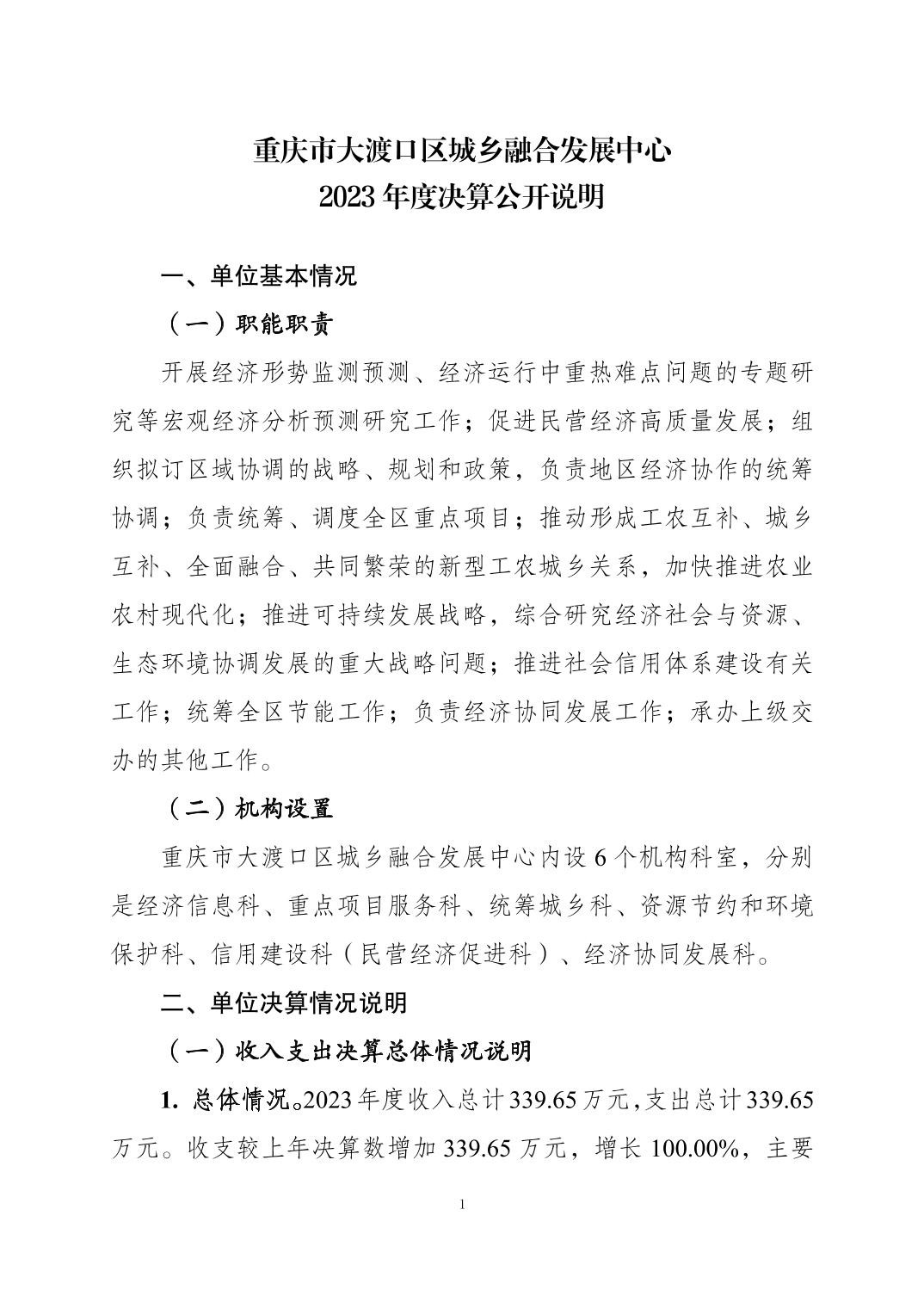 重庆市大渡口区城乡融合发展中心2023年度决算公开说明