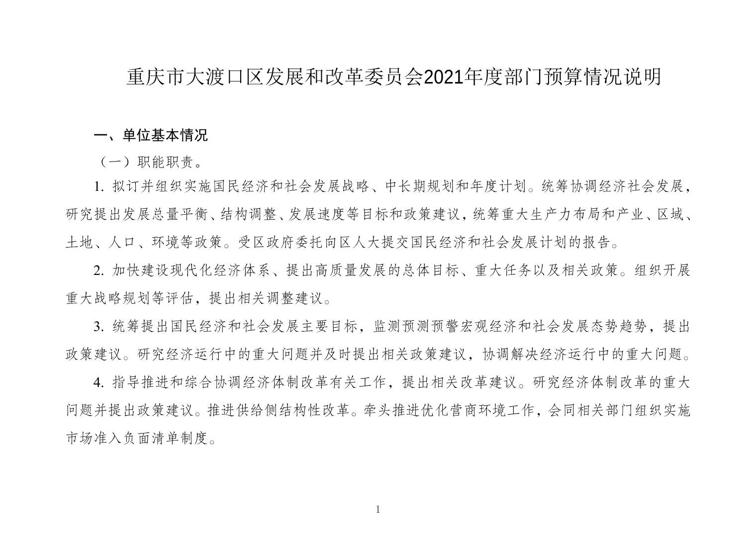 重庆市大渡口区发展和改革委员会2021年度部门预算情况说明