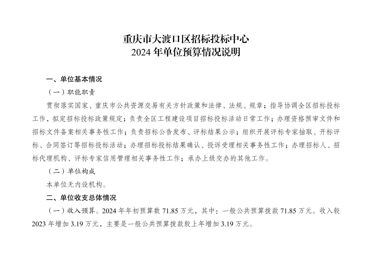 重庆市大渡口区招标投标中心2024年单位预算情况说明