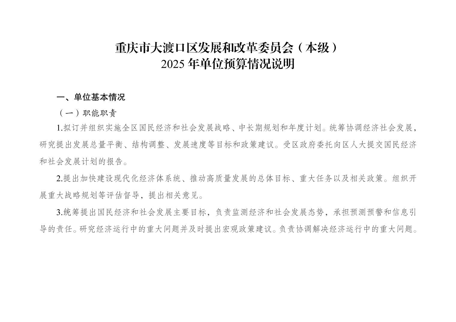 重庆市大渡口区发展和改革委员会(本级)2025年单位预算情况说明