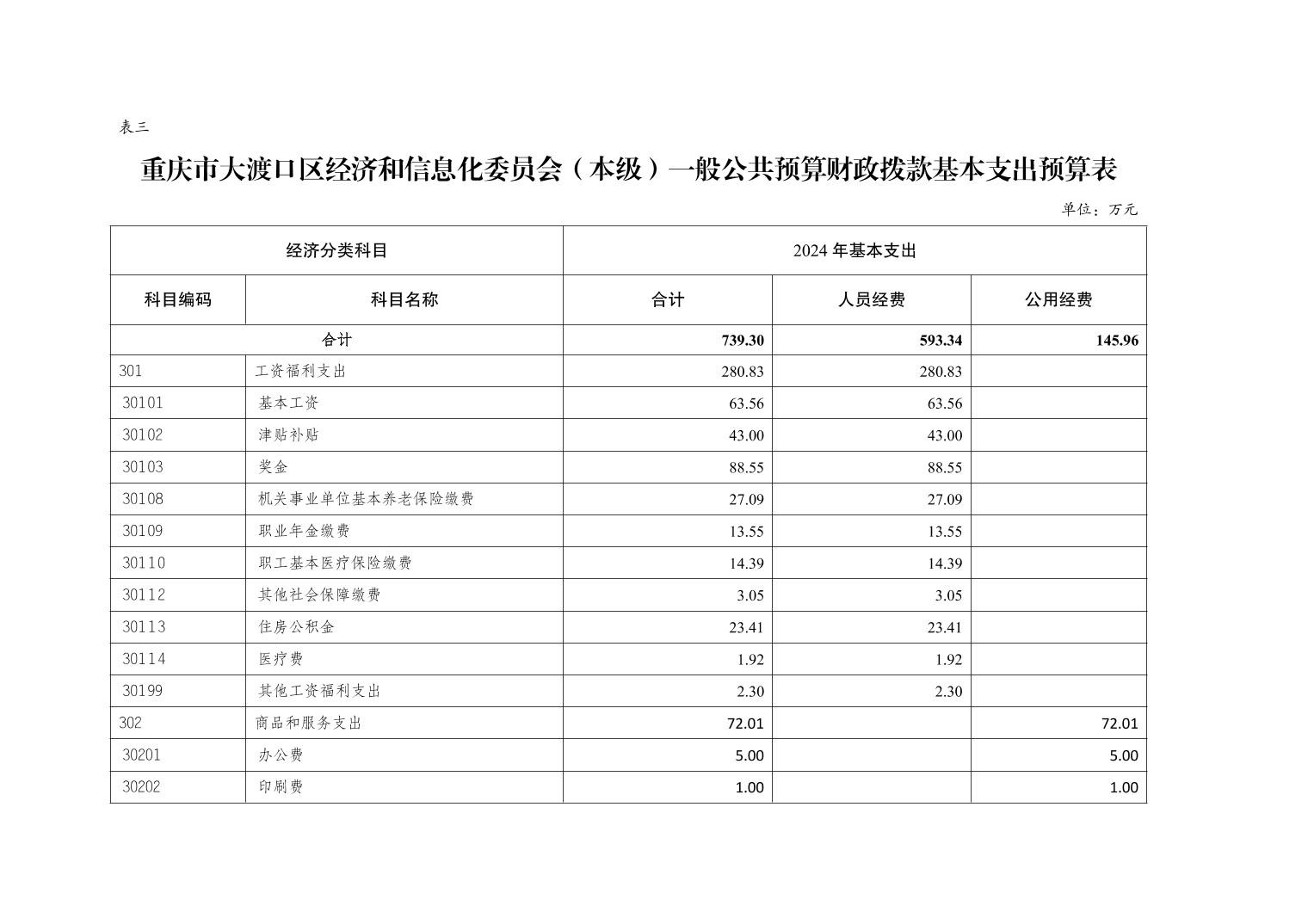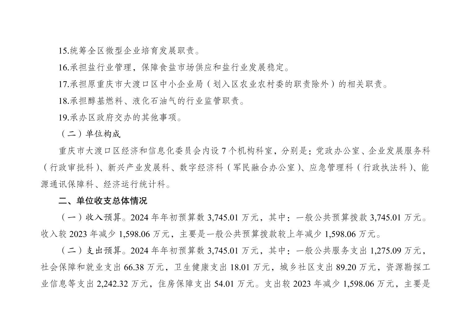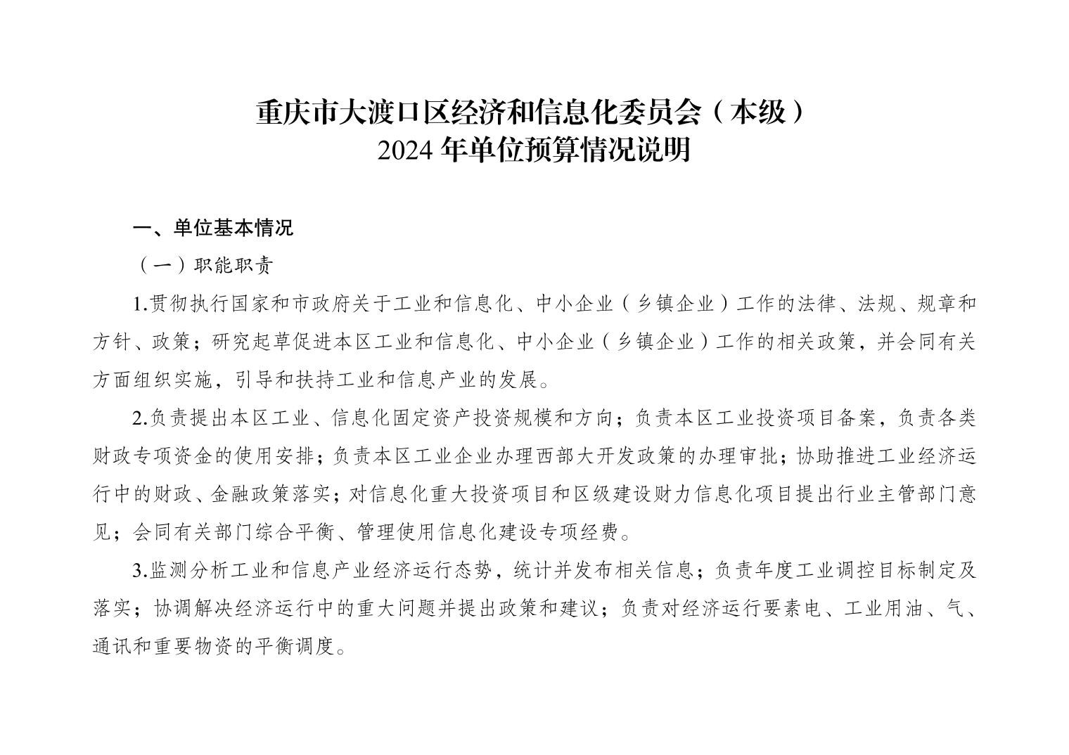 重庆市大渡口区经济和信息化委员会(本级)2024年单位预算情况说明