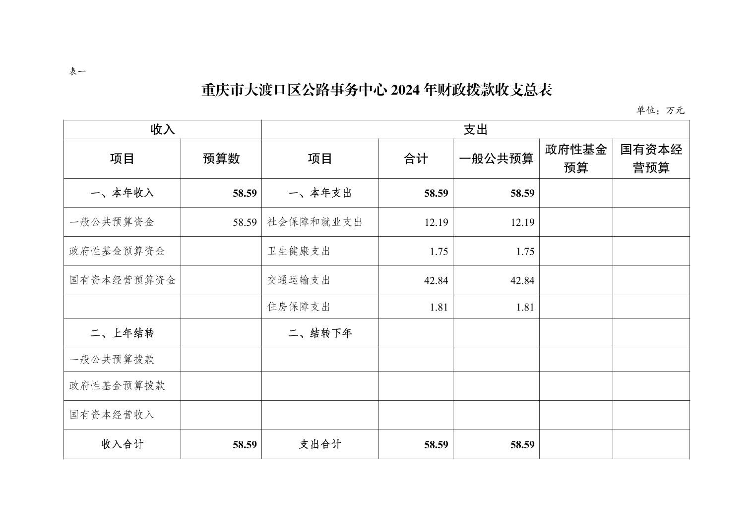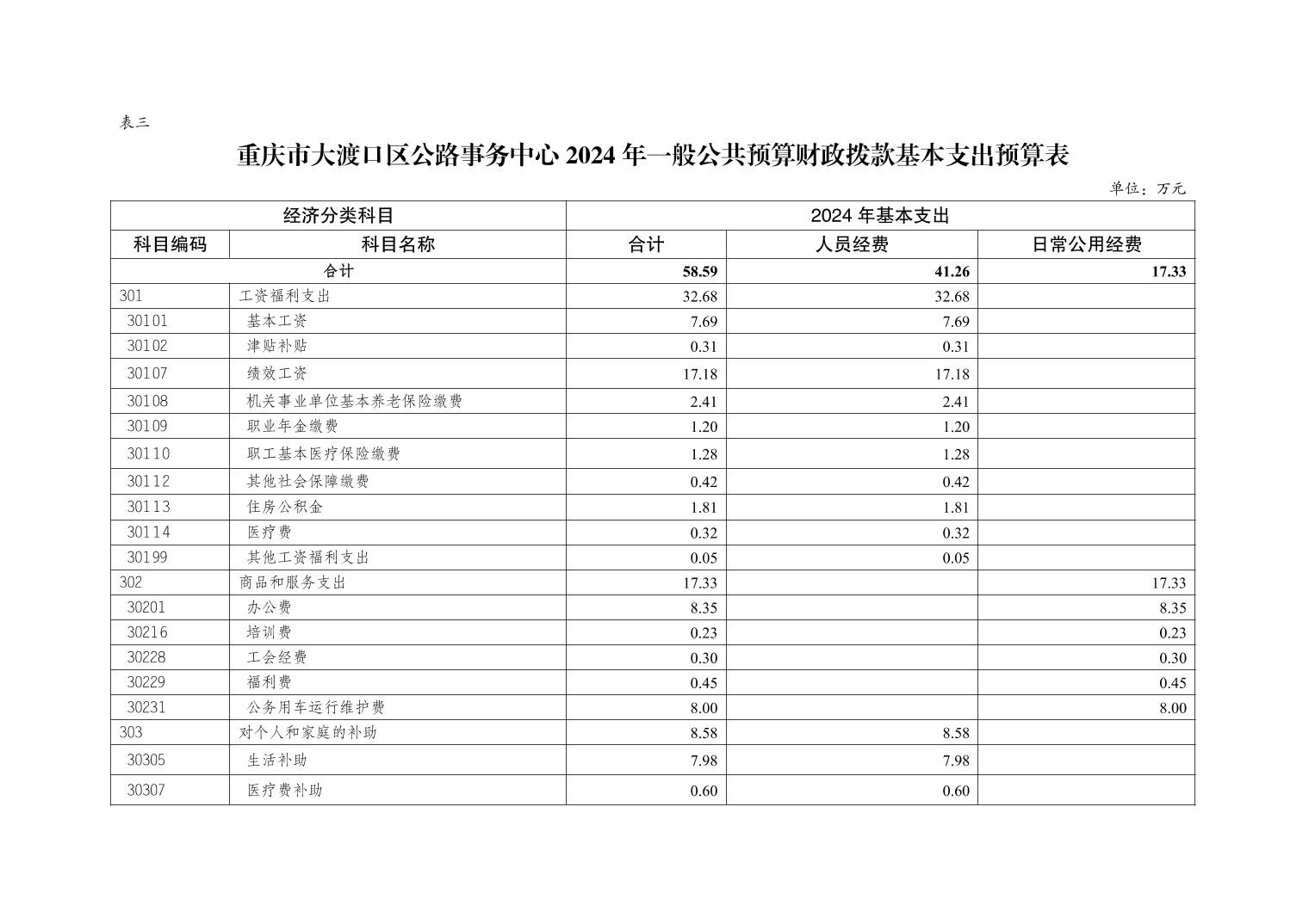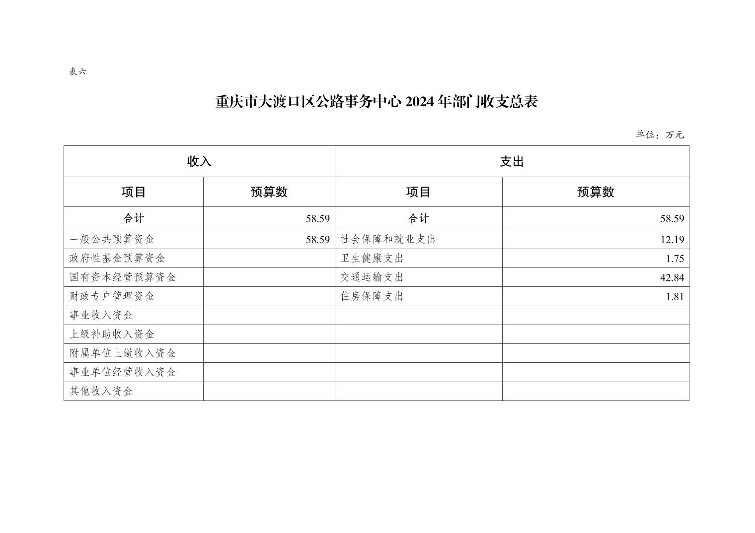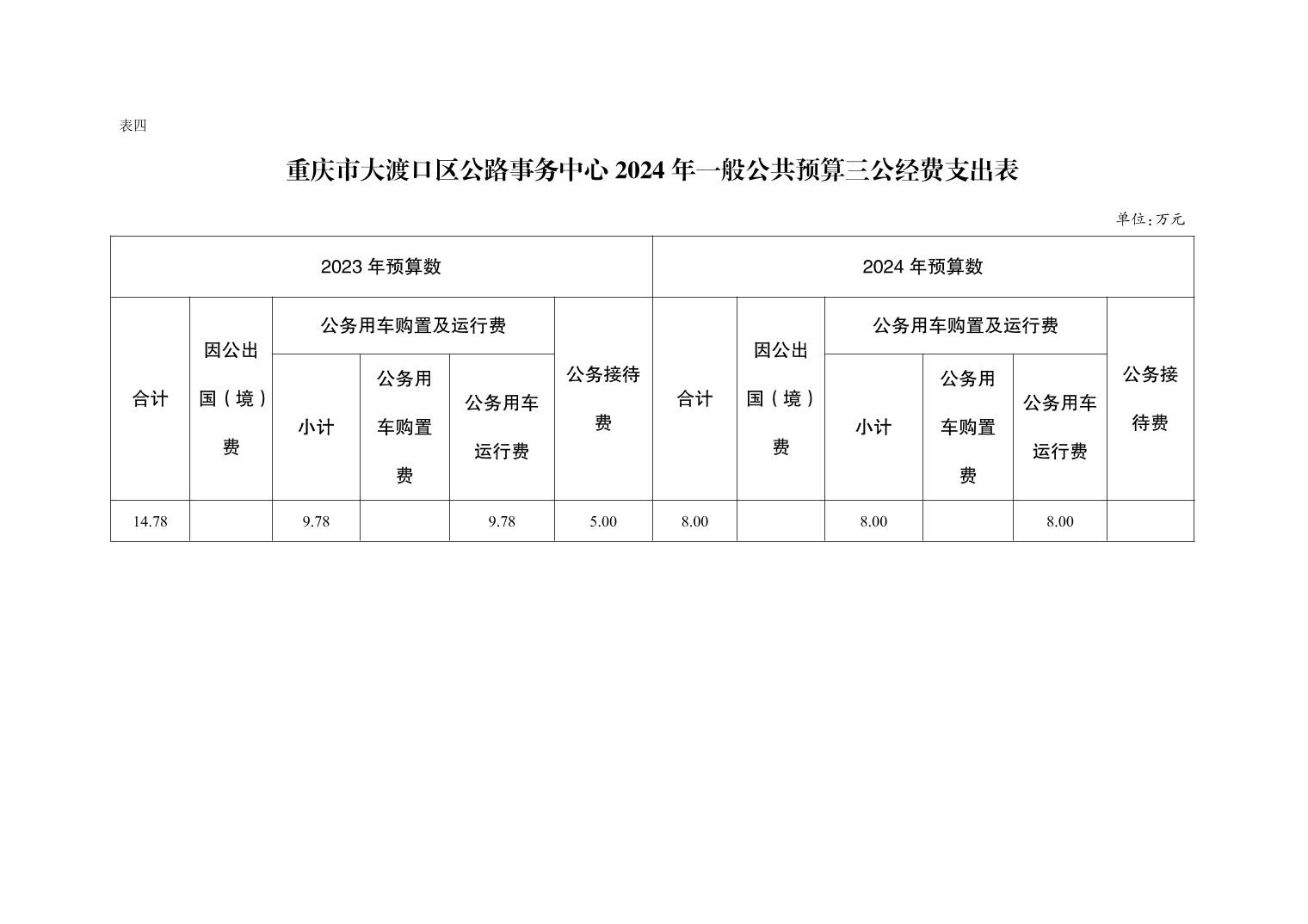 重庆市大渡口区公路事务中心2024年单位预算情况说明