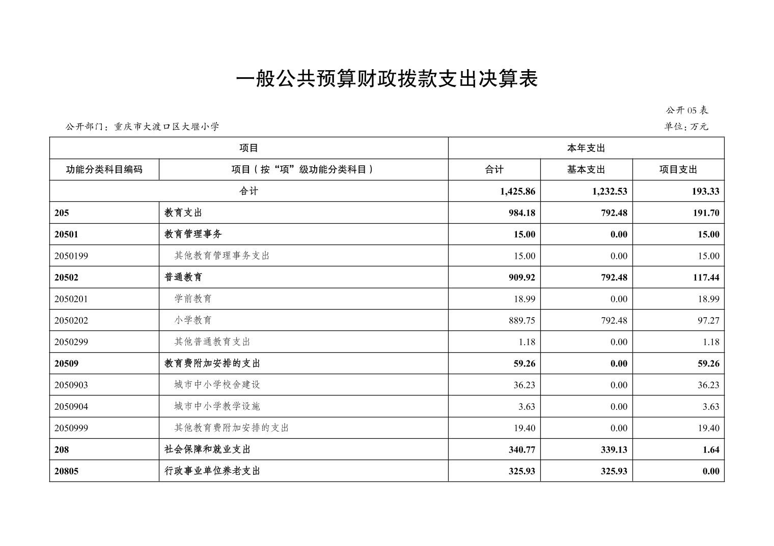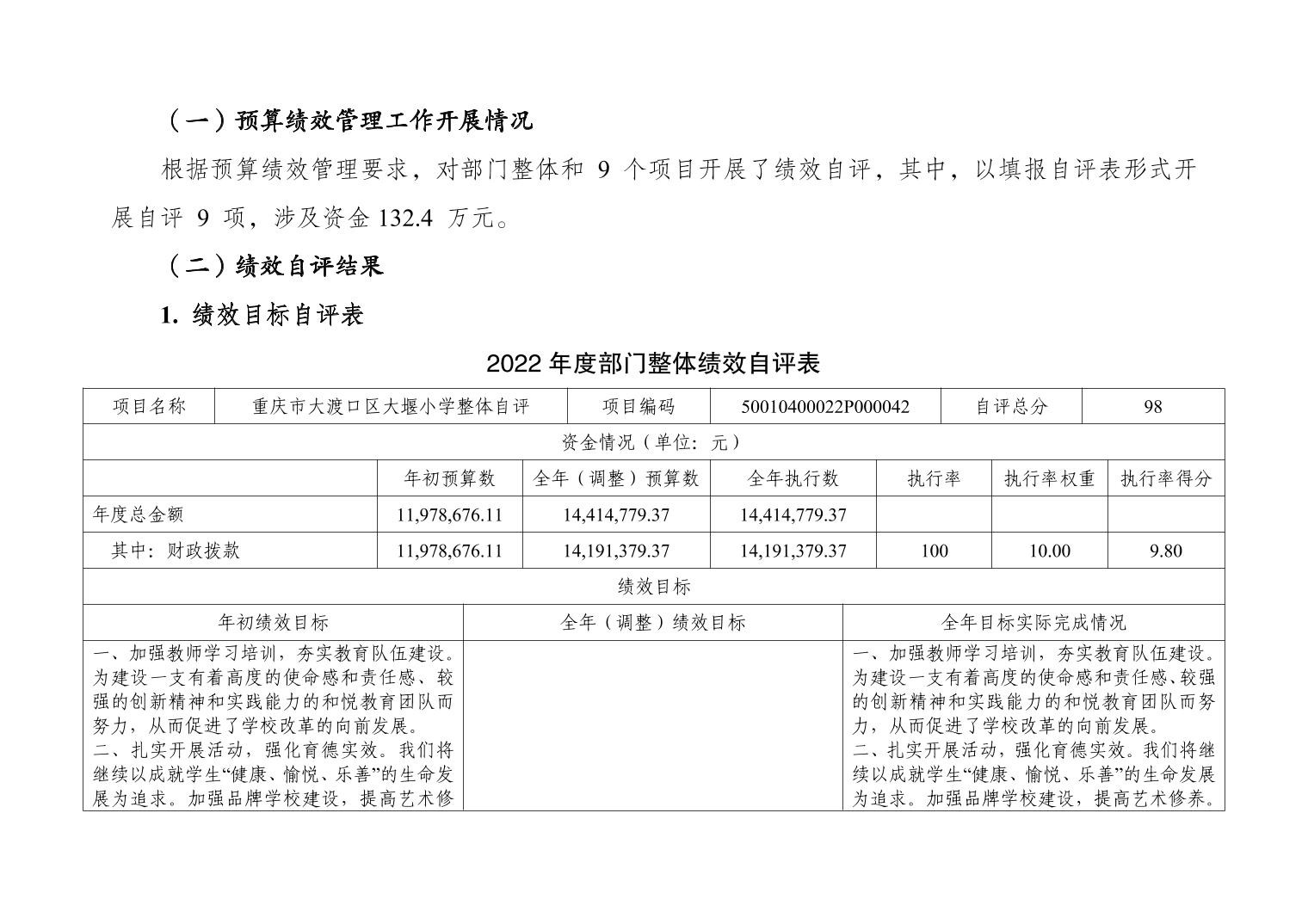 重庆市大渡口区大堰小学2022年度部门决算情况说明