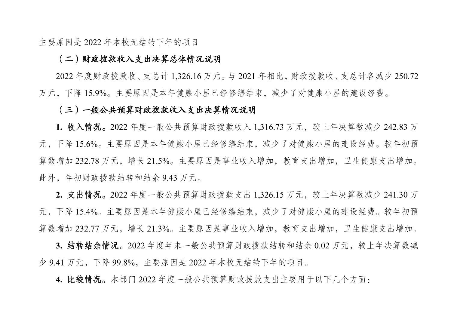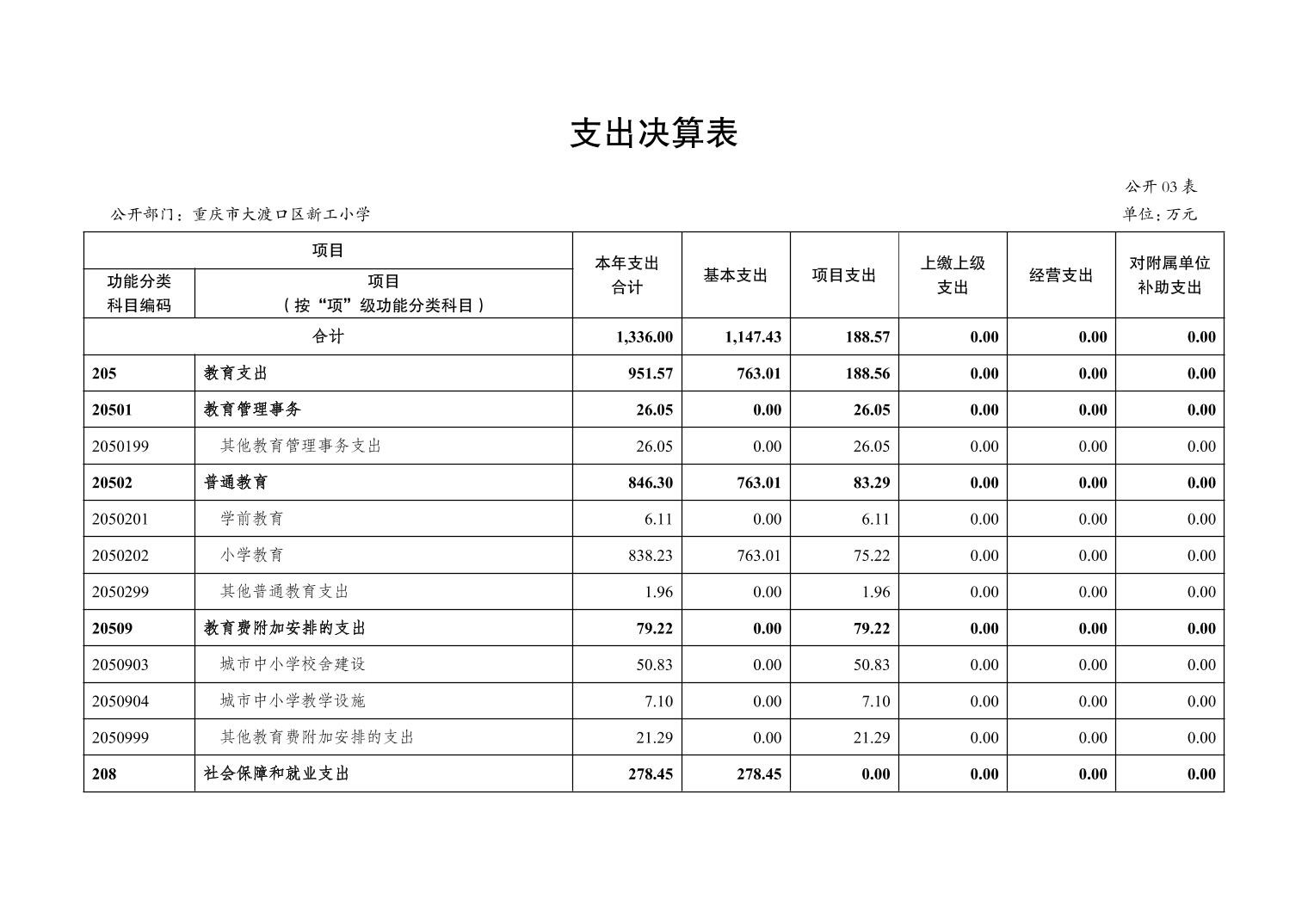 重庆市大渡口区新工小学2022年度部门决算情况说明