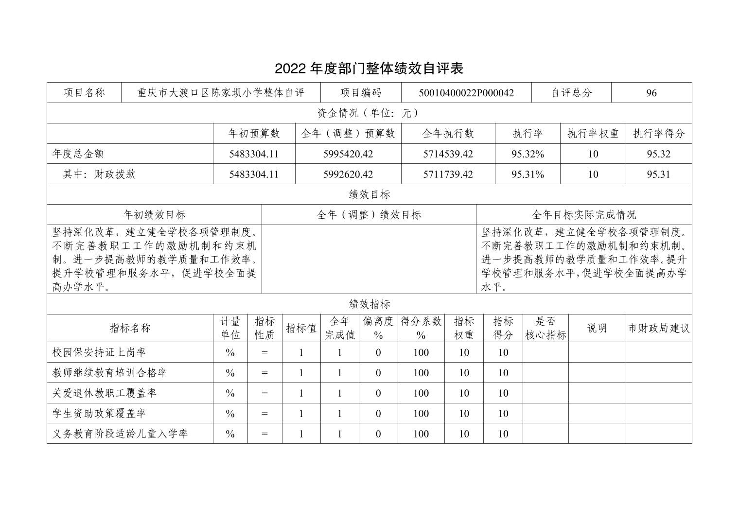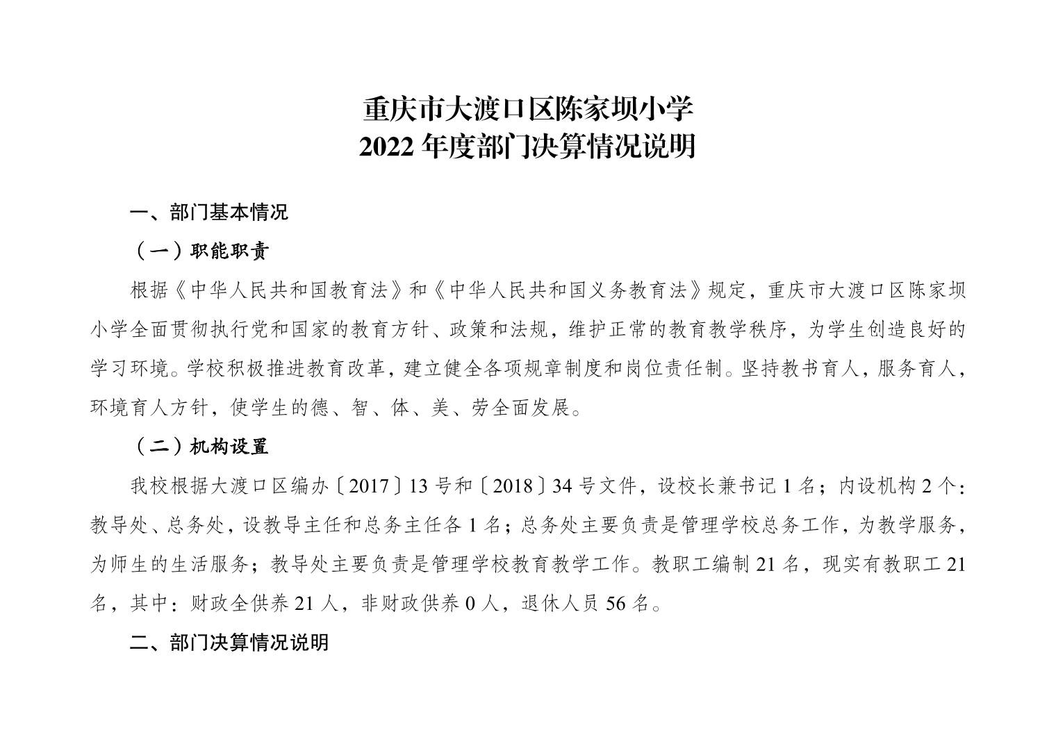重庆市大渡口区陈家坝小学2022年度部门决算情况说明