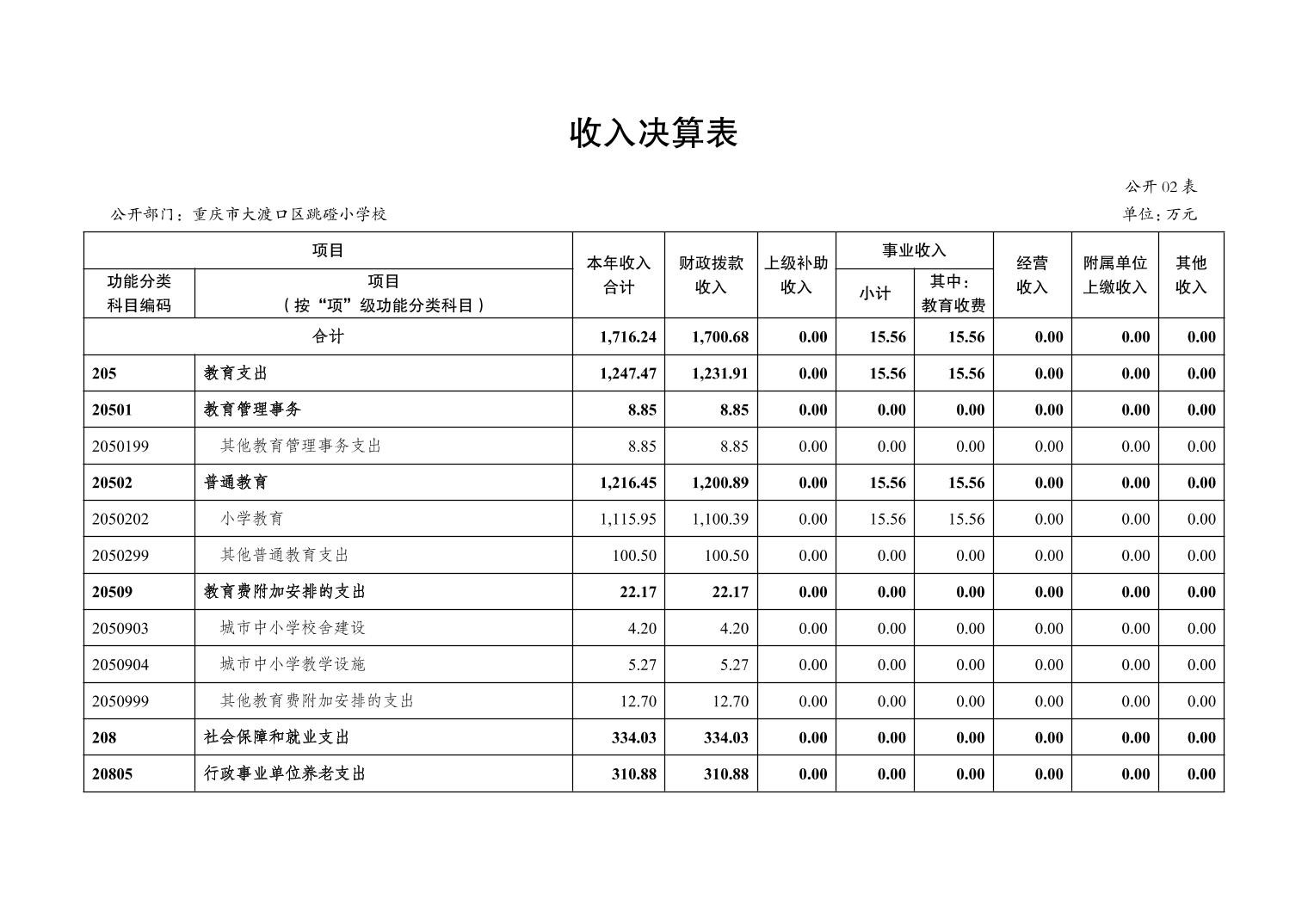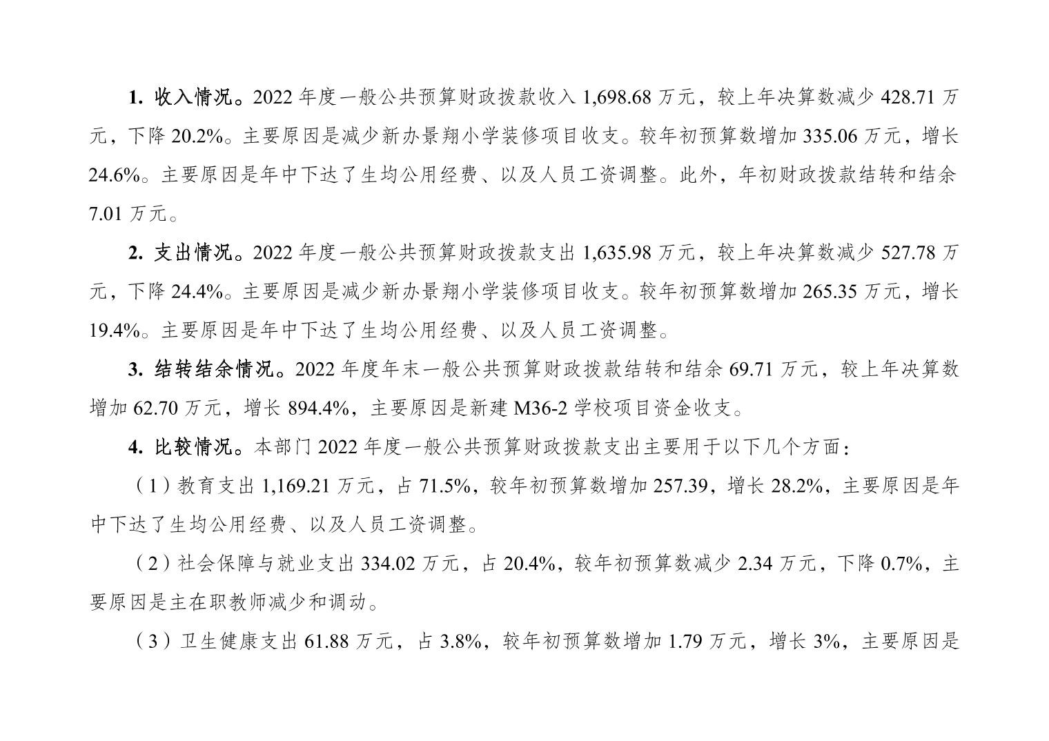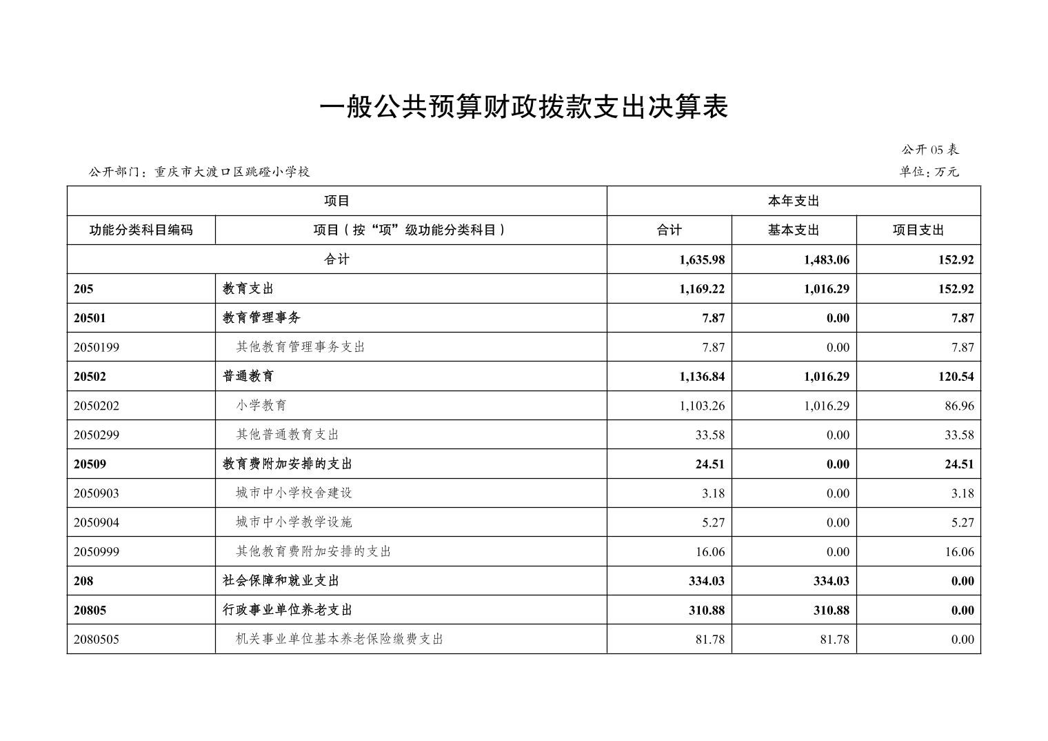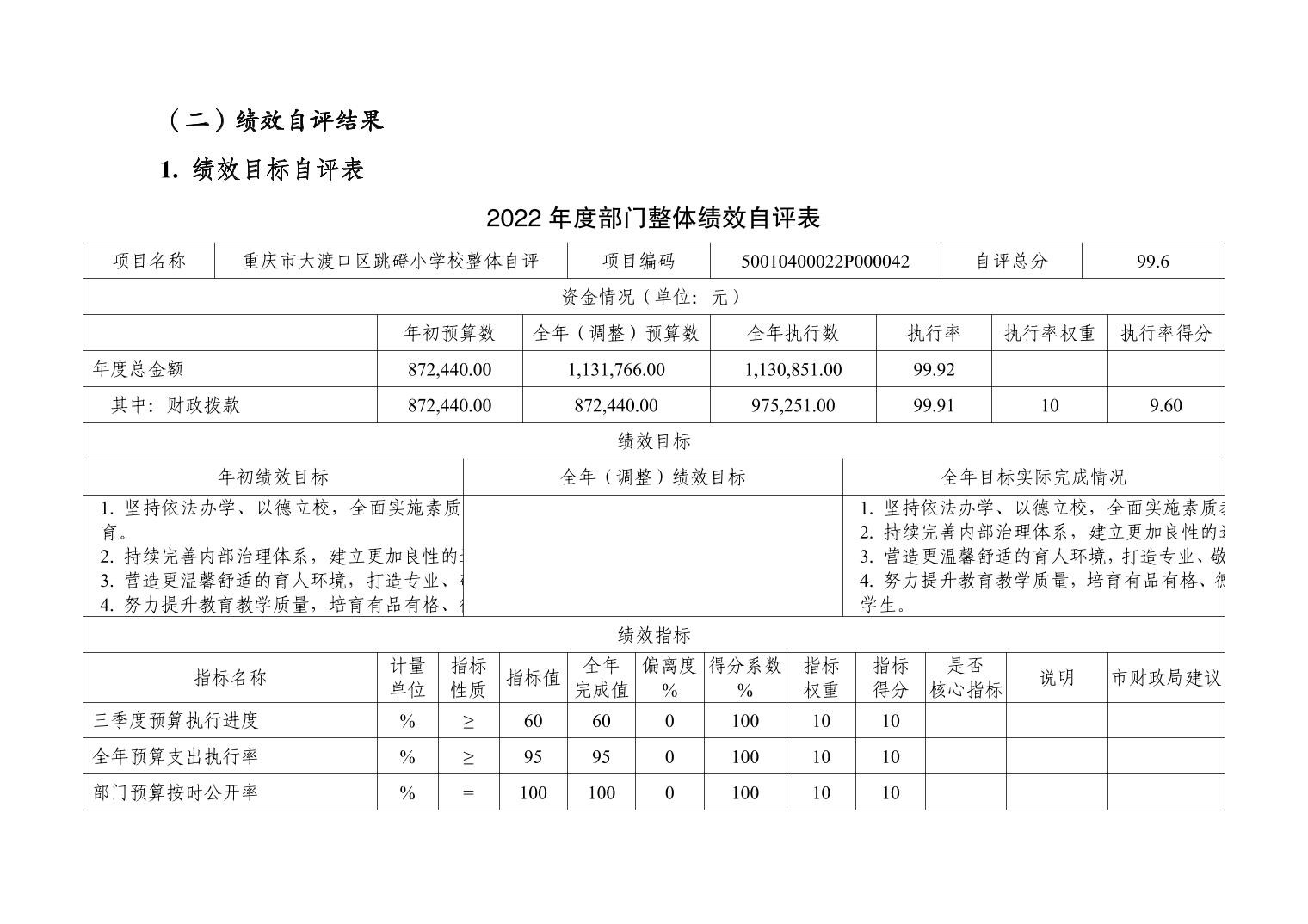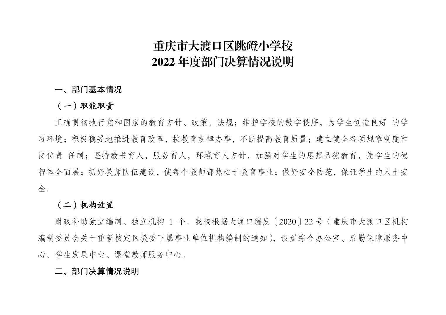 重庆市大渡口区跳磴小学校2022年度部门决算情况说明