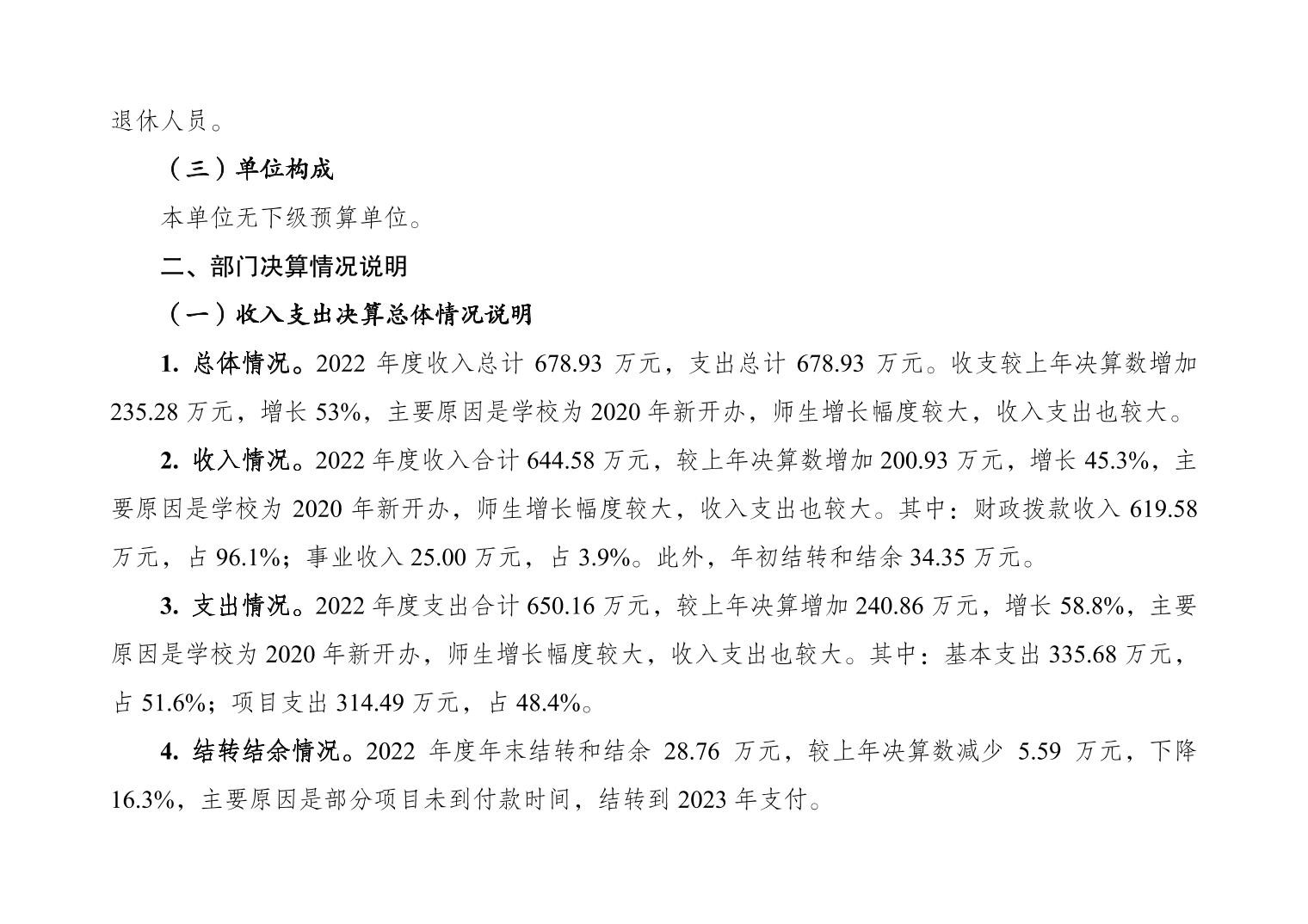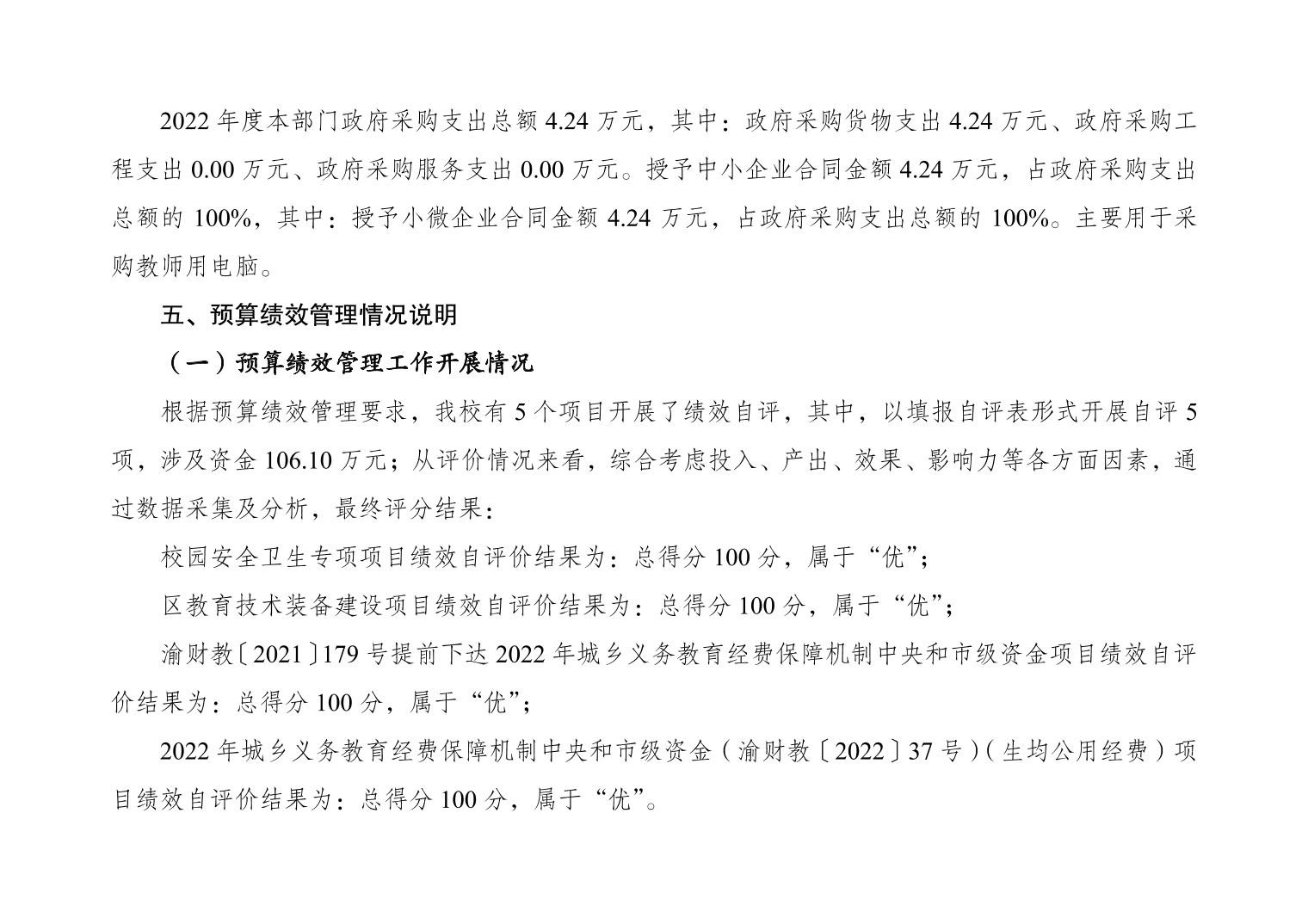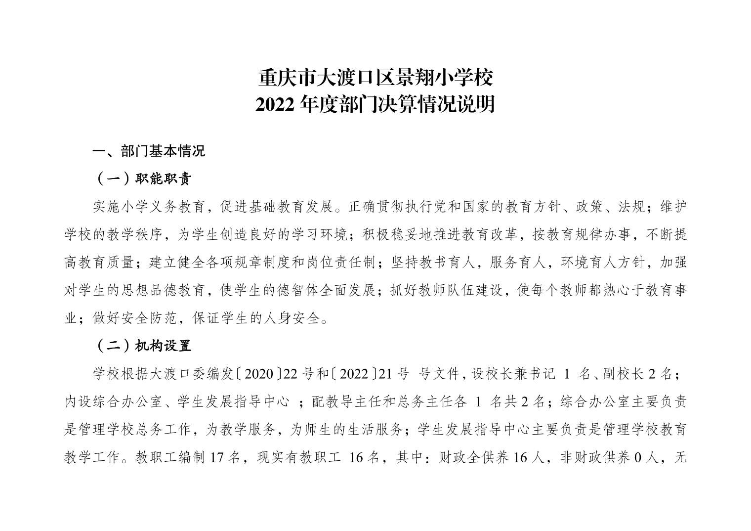 重庆市大渡口区景翔小学校2022年度部门决算情况说明
