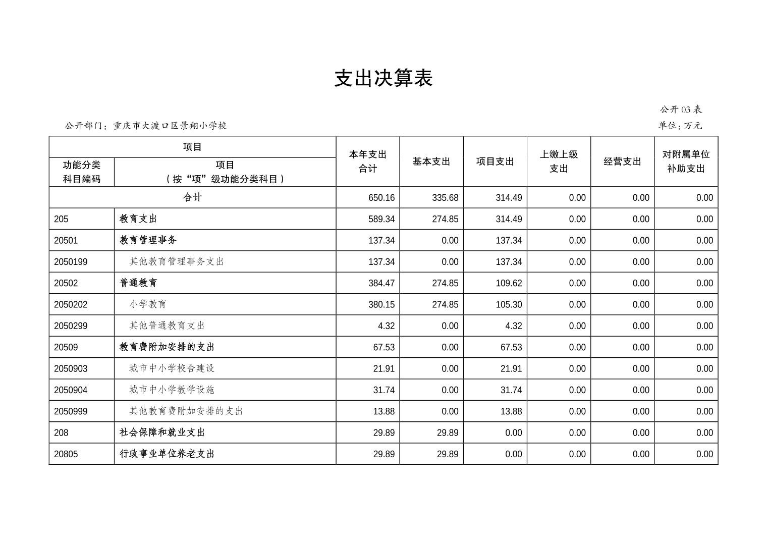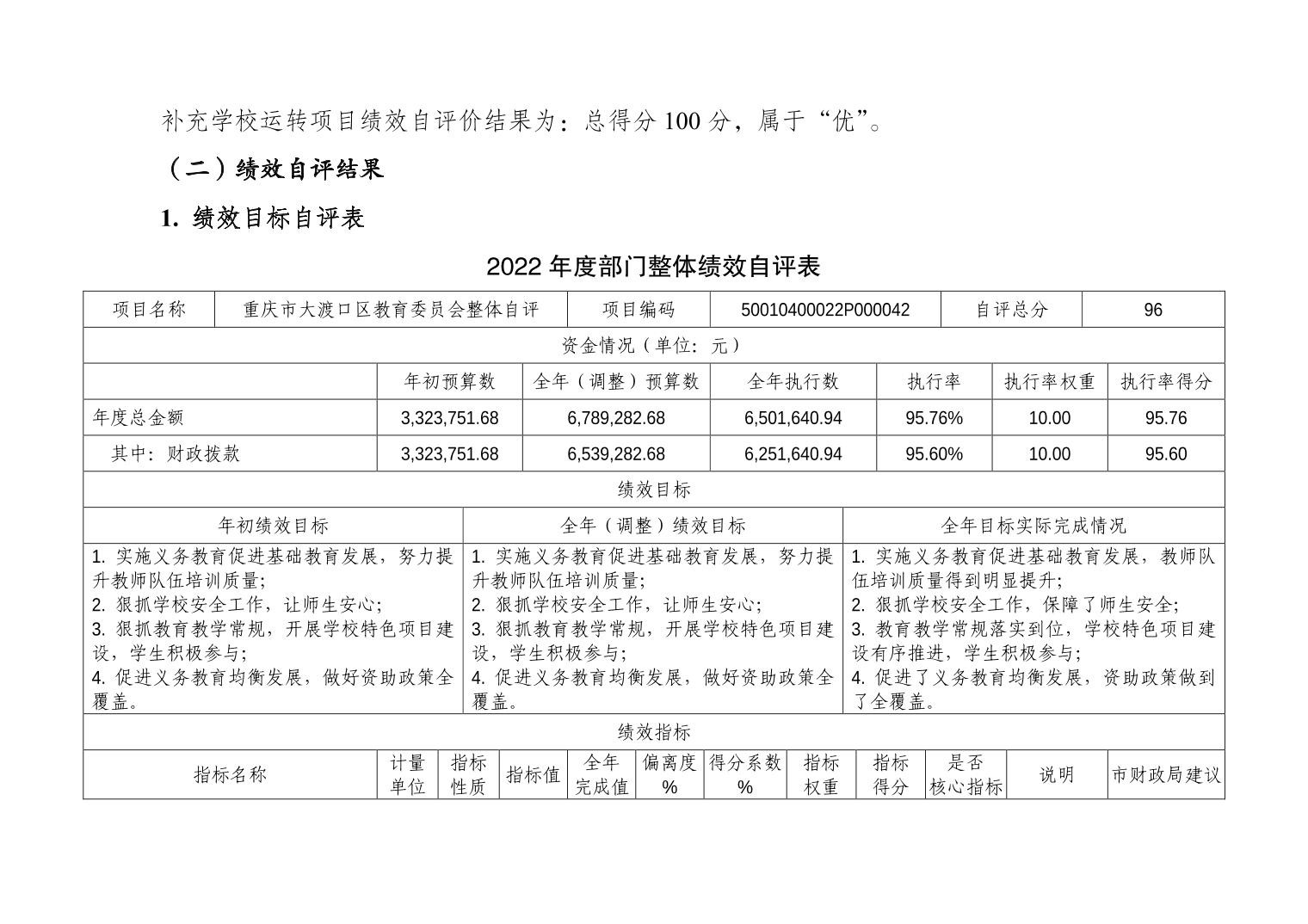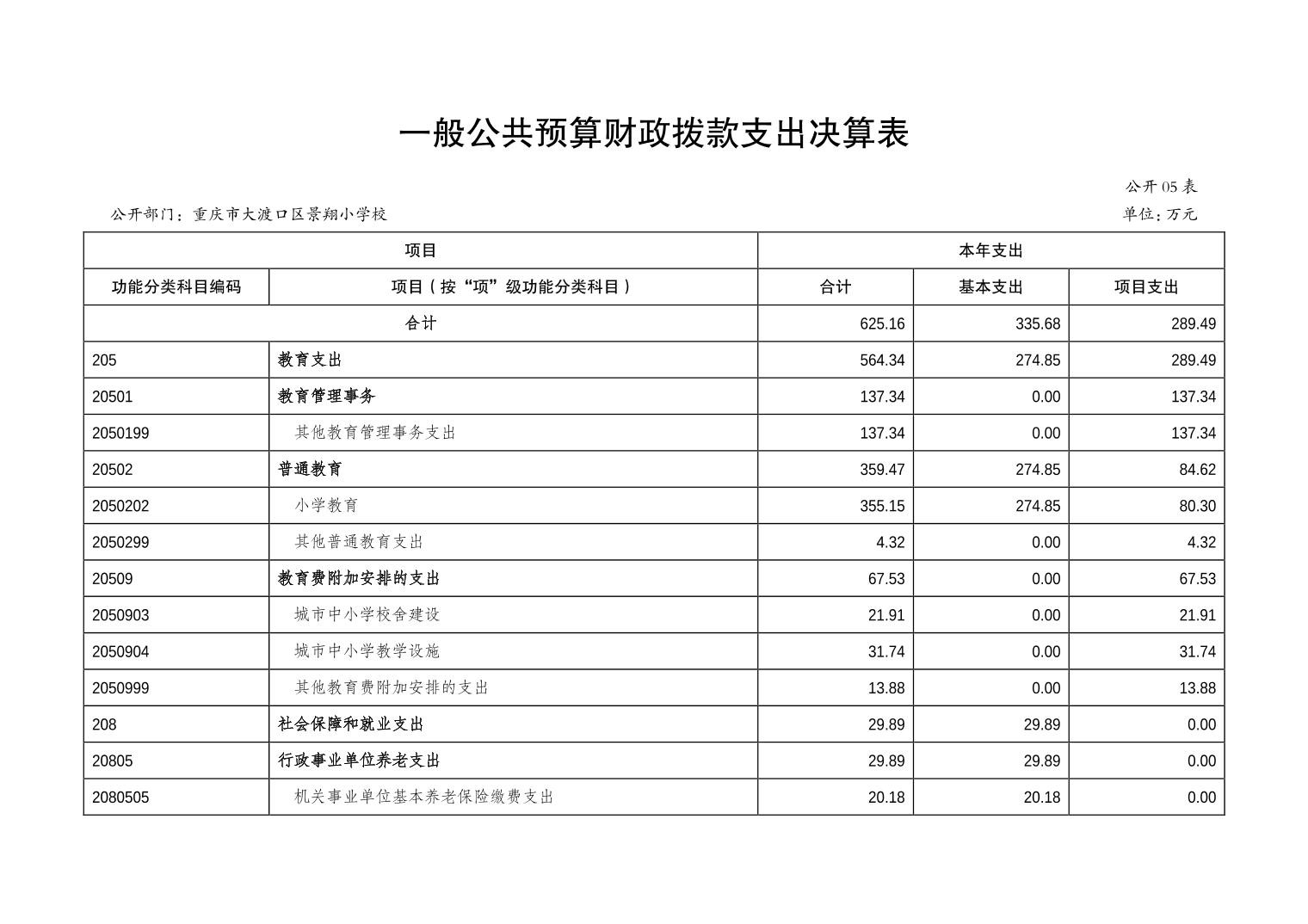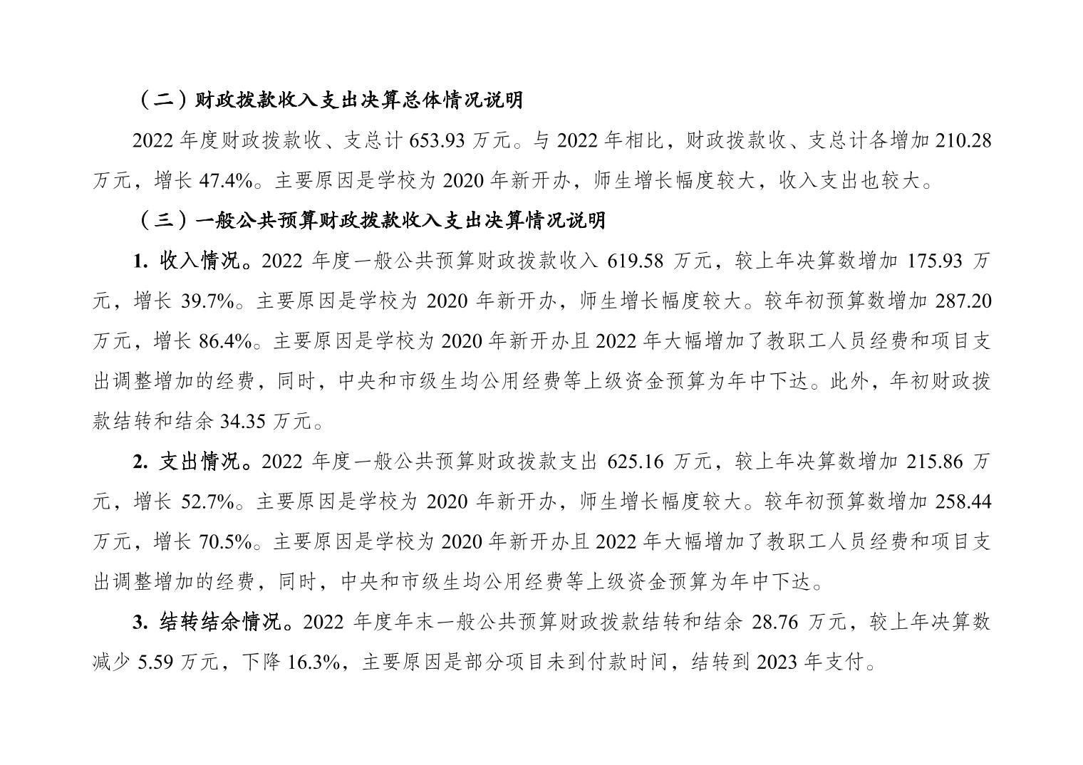 重庆市大渡口区景翔小学校2022年度部门决算情况说明