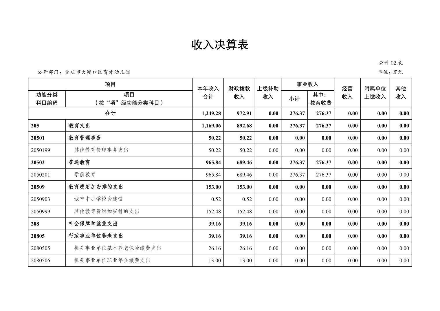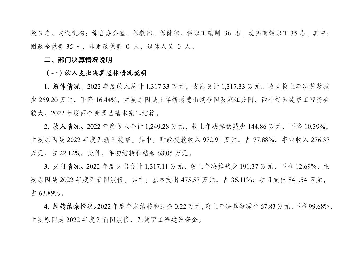 重庆市大渡口区育才幼儿园2022年度部门决算情况说明