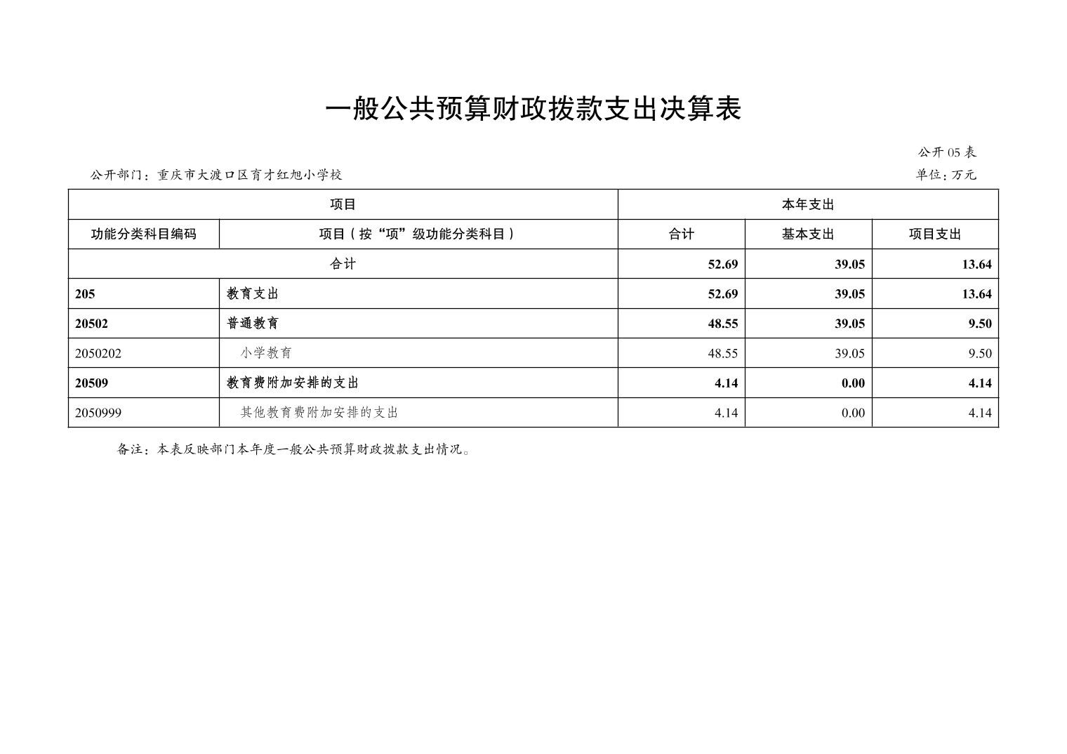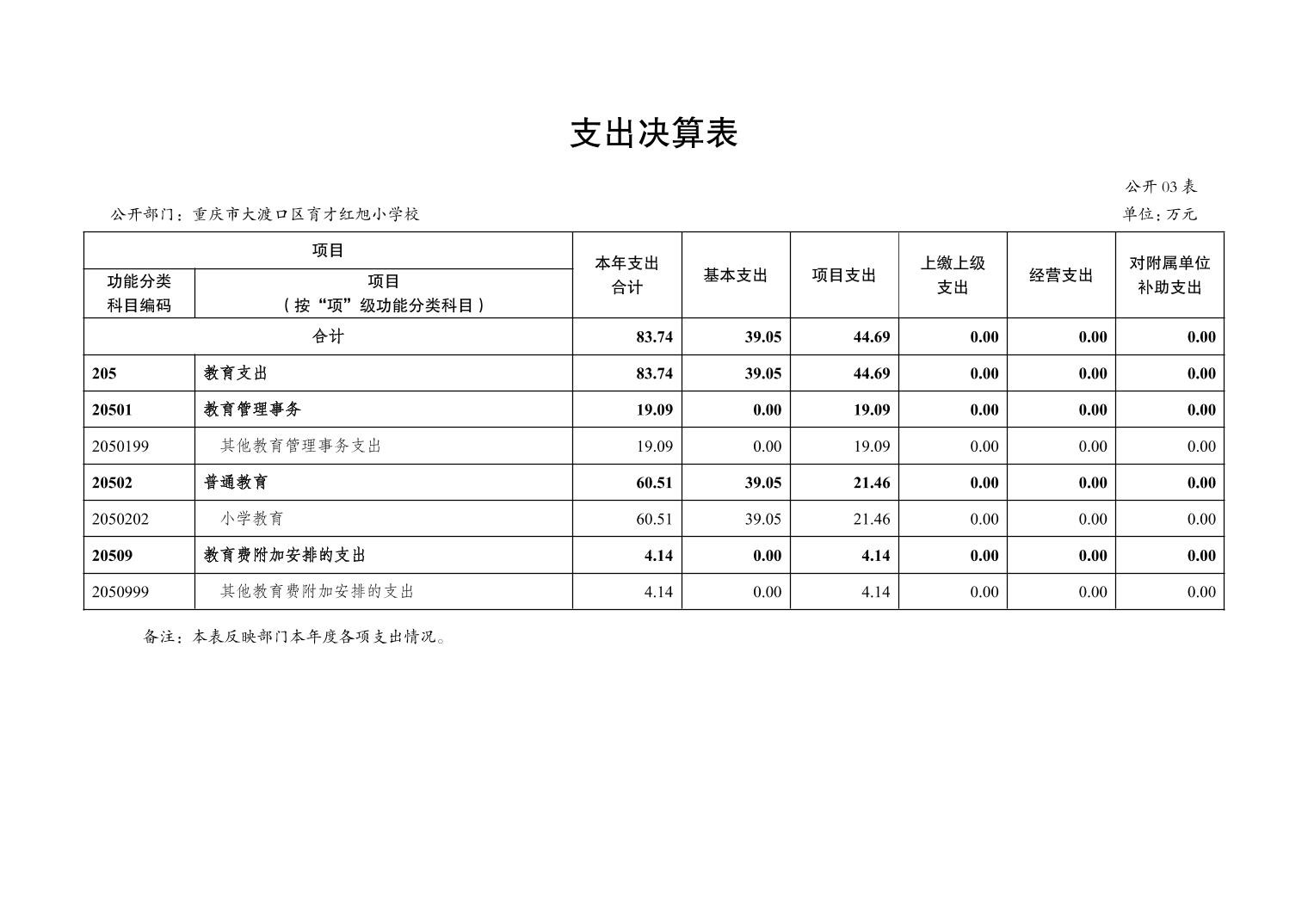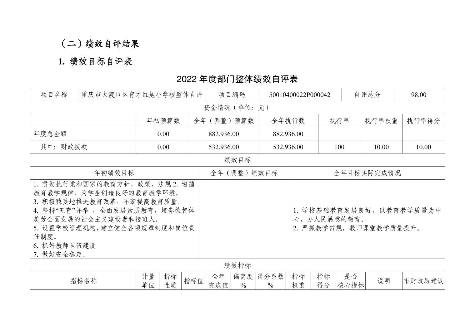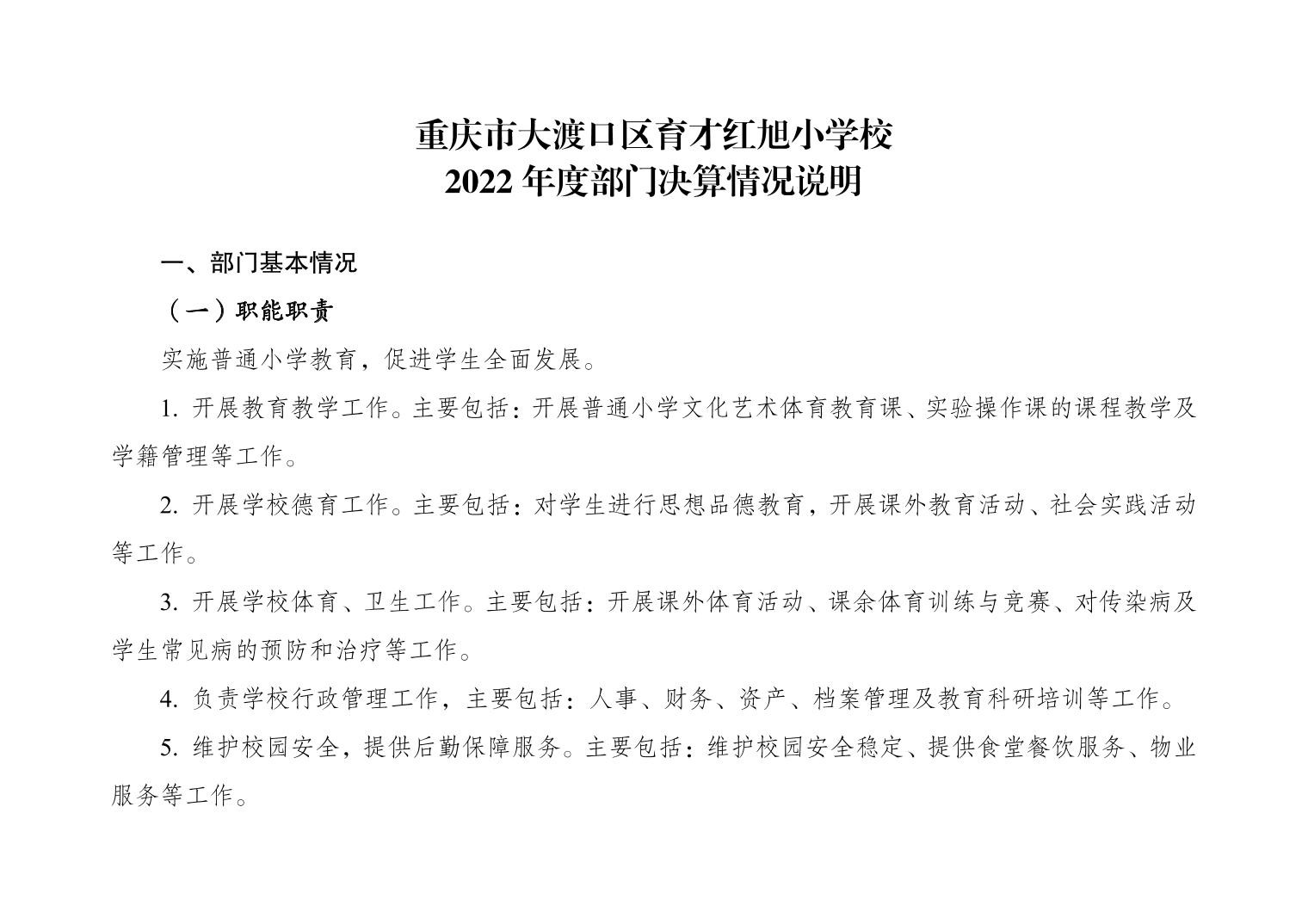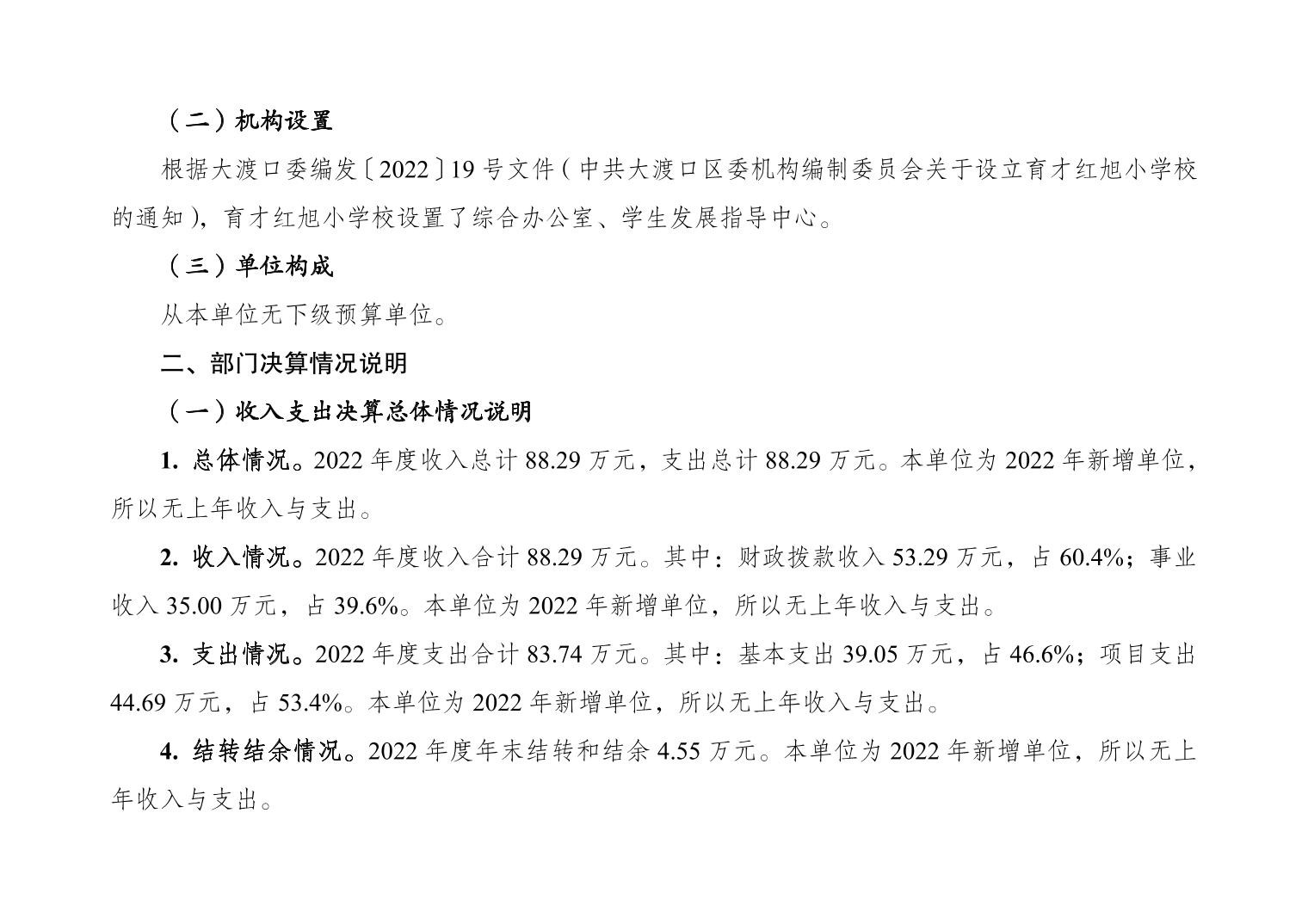 重庆市大渡口区育才红旭小学校2022年度部门决算情况说明