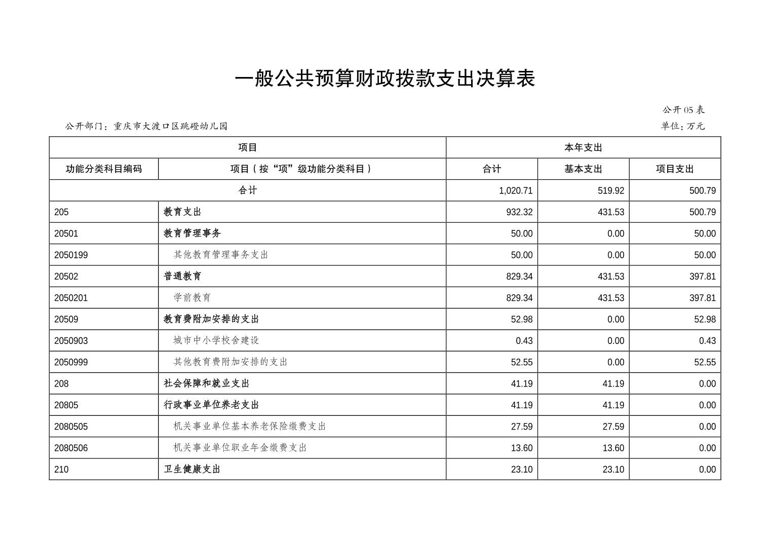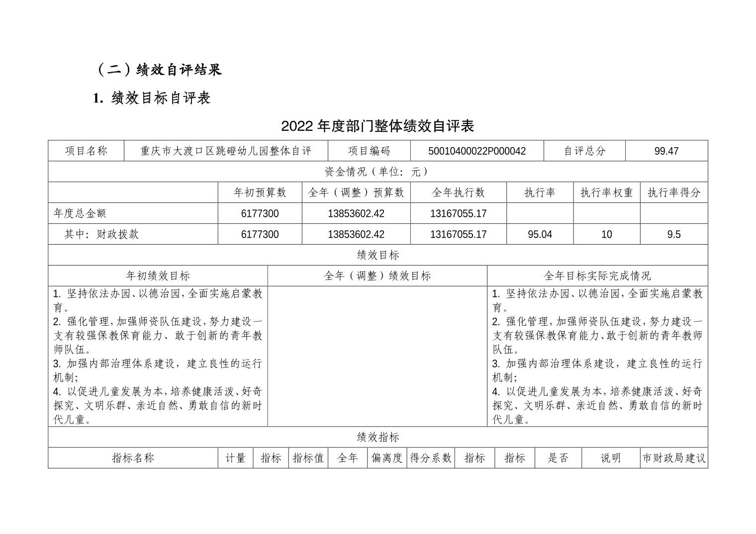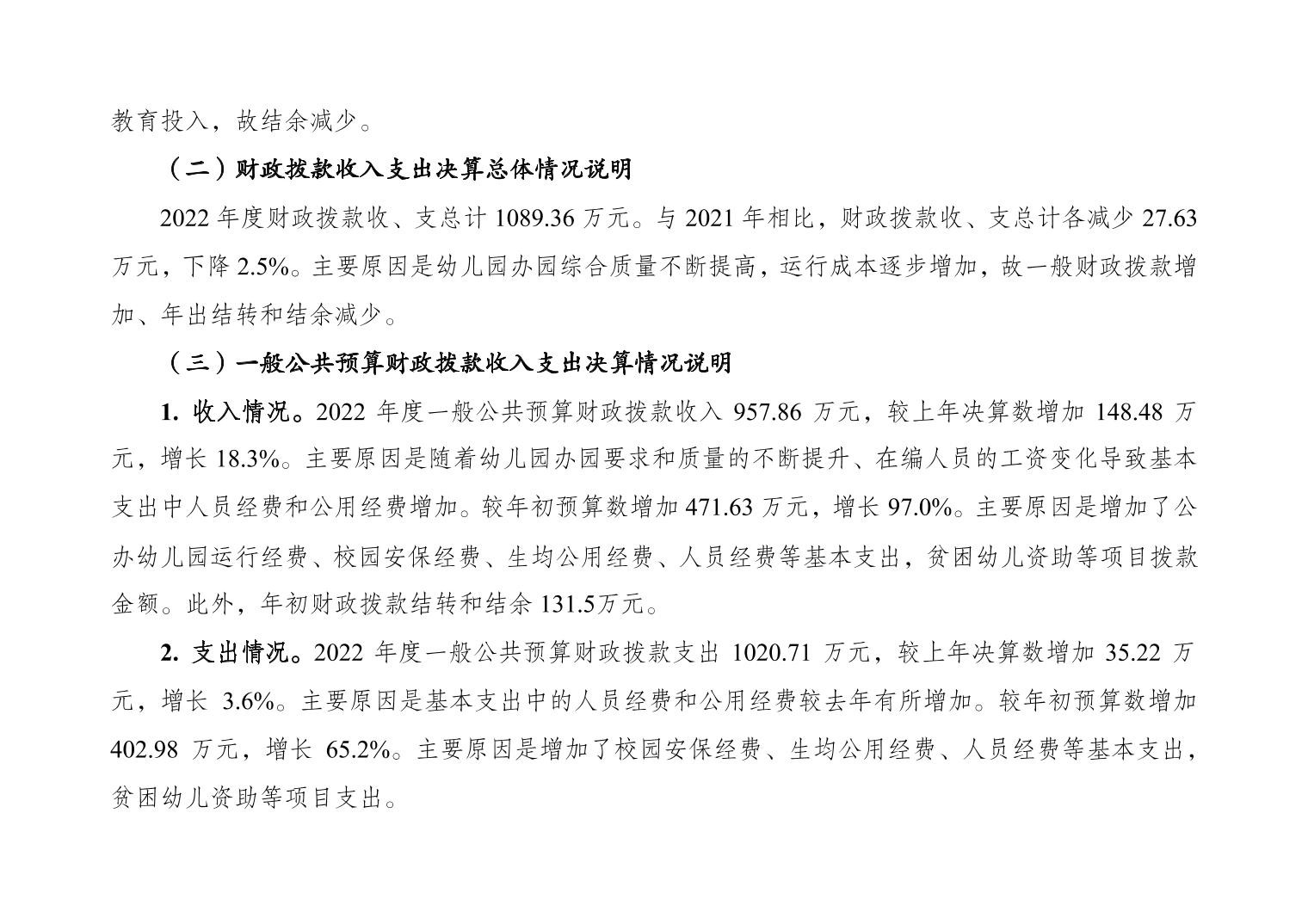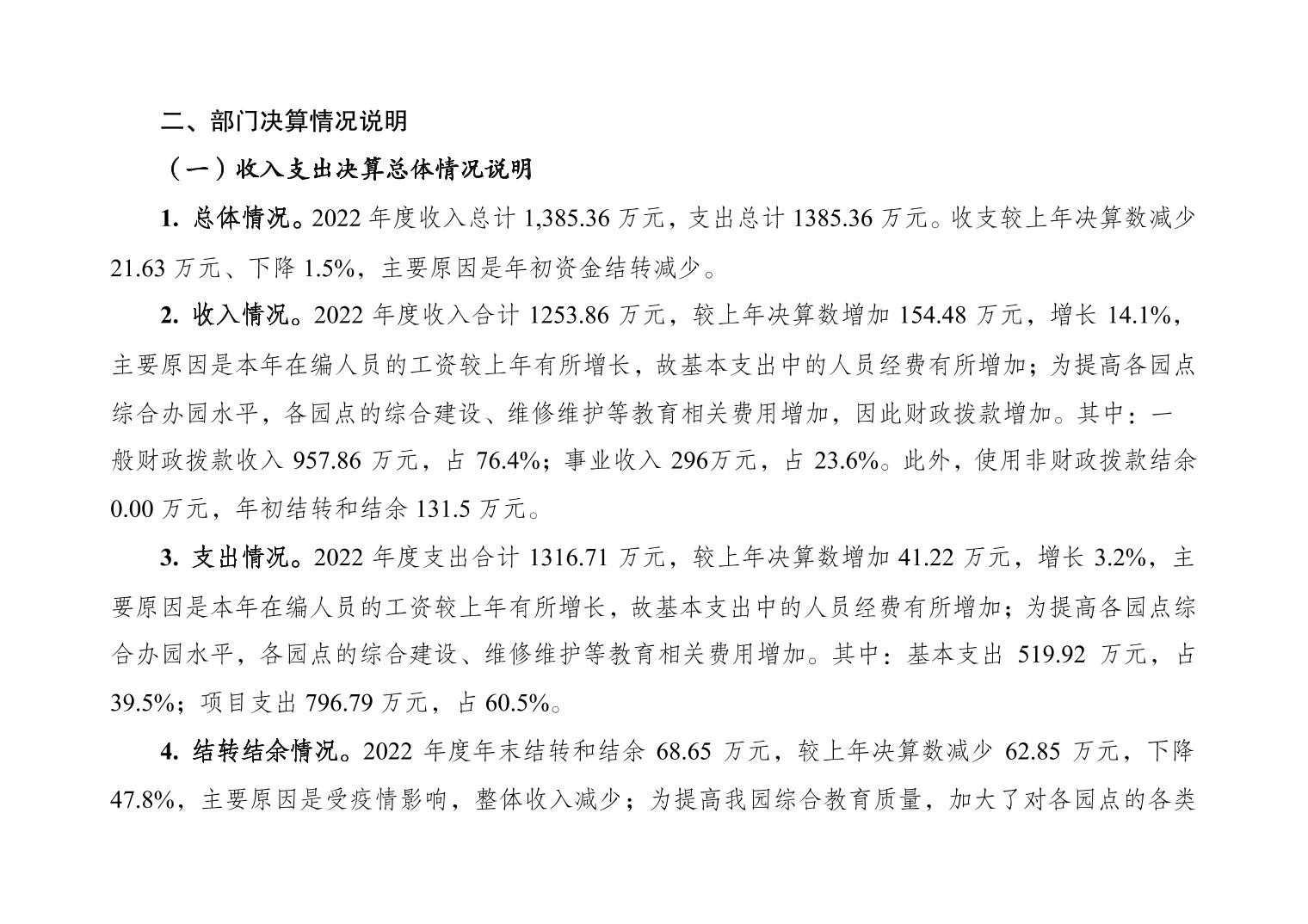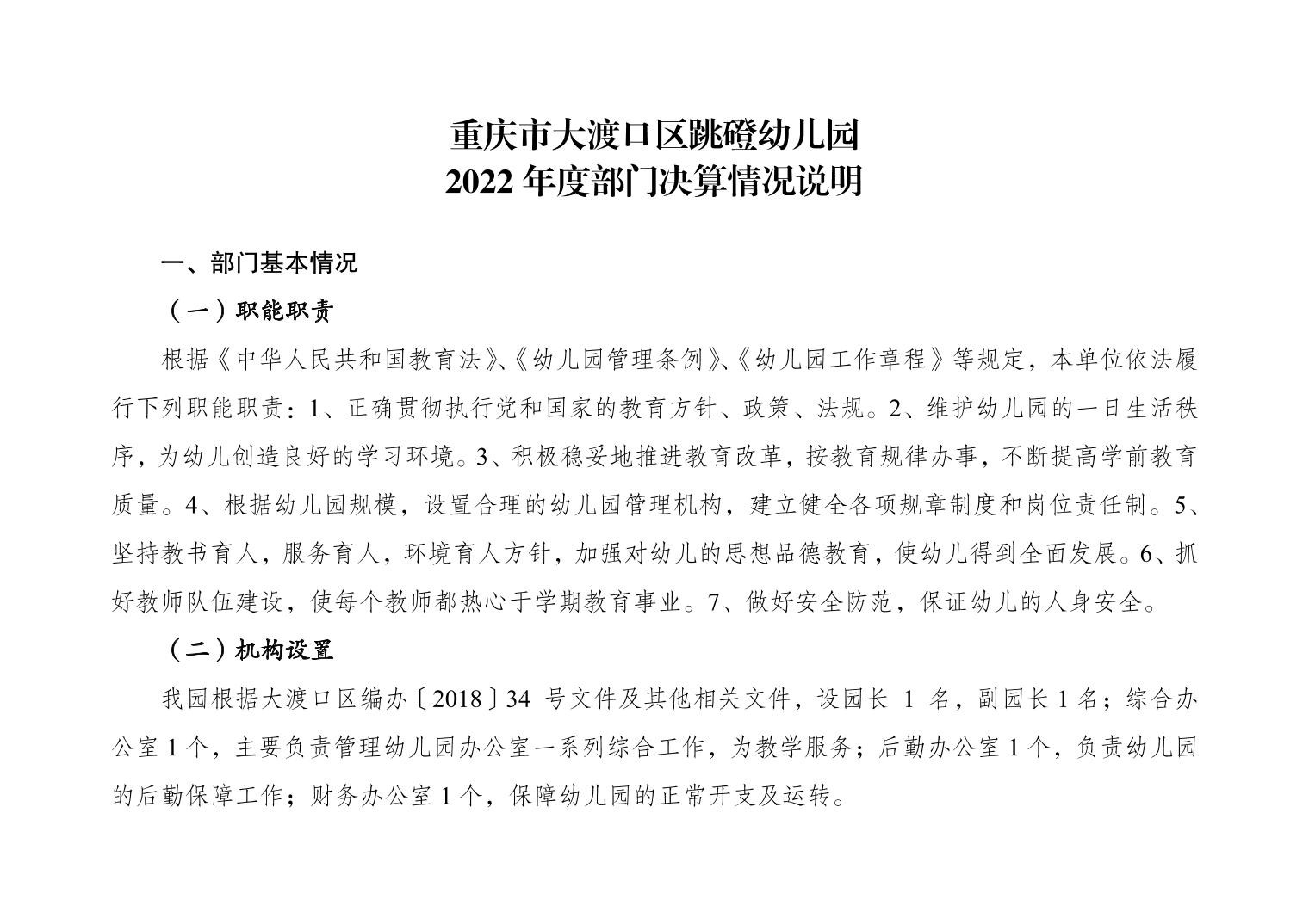 重庆市大渡口区跳磴幼儿园2022年度部门决算情况说明