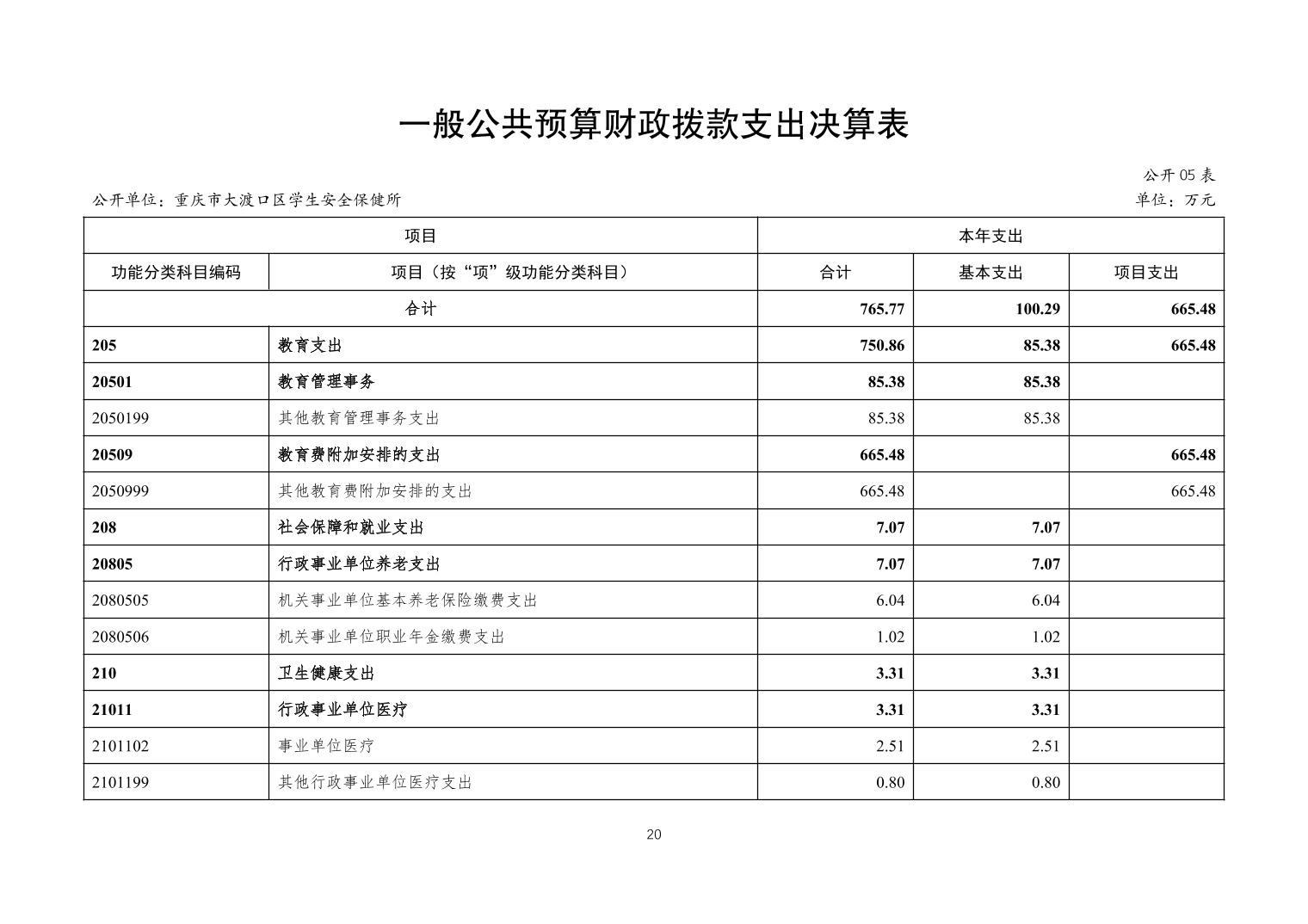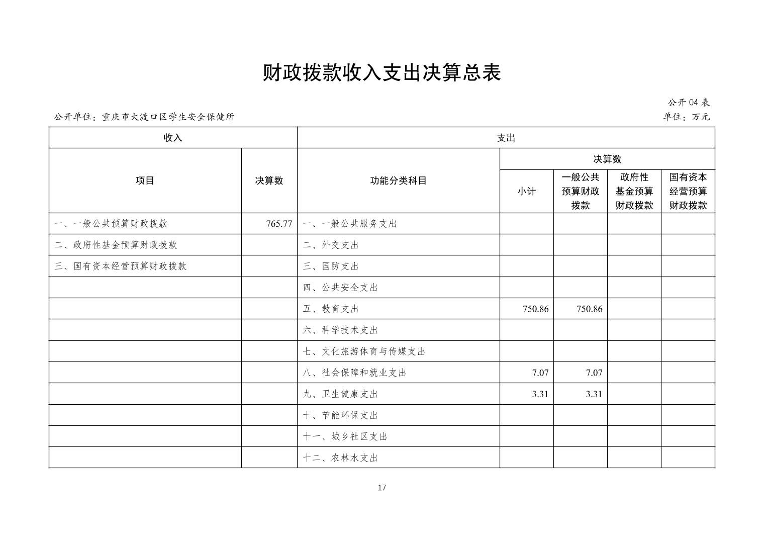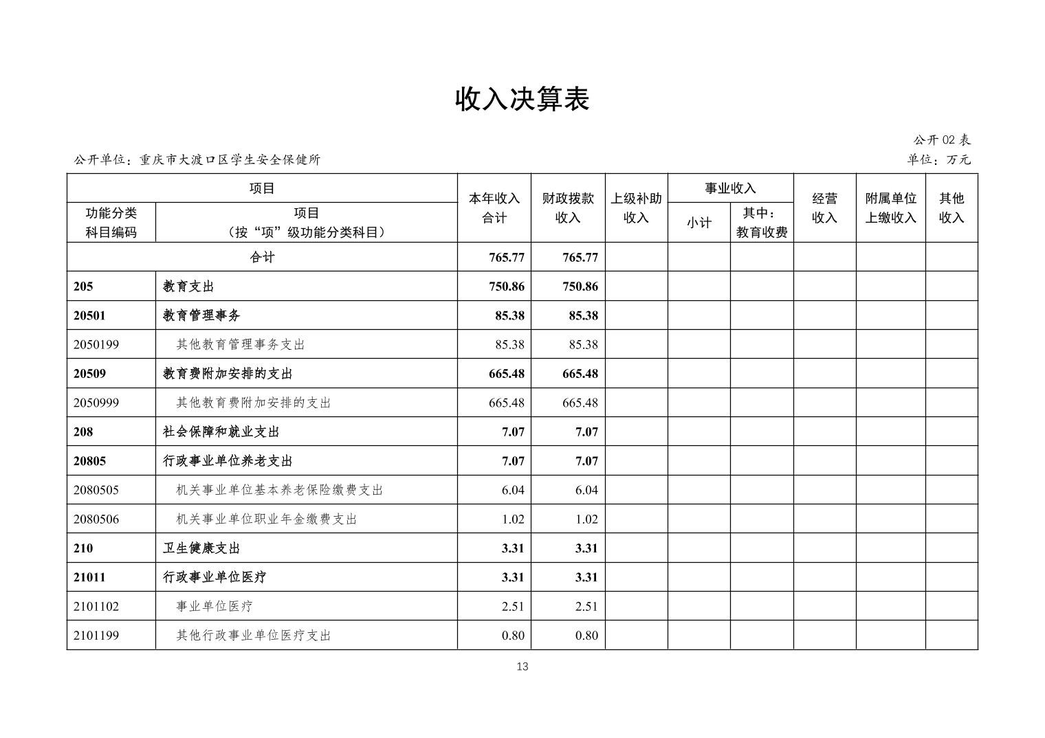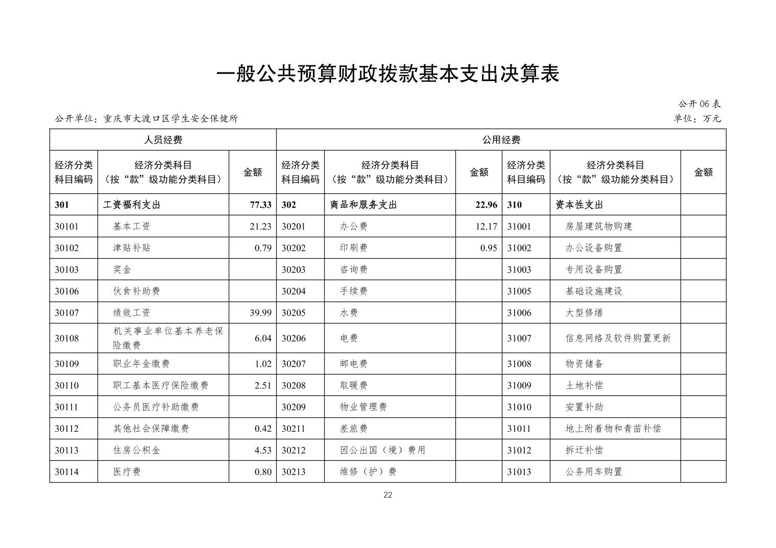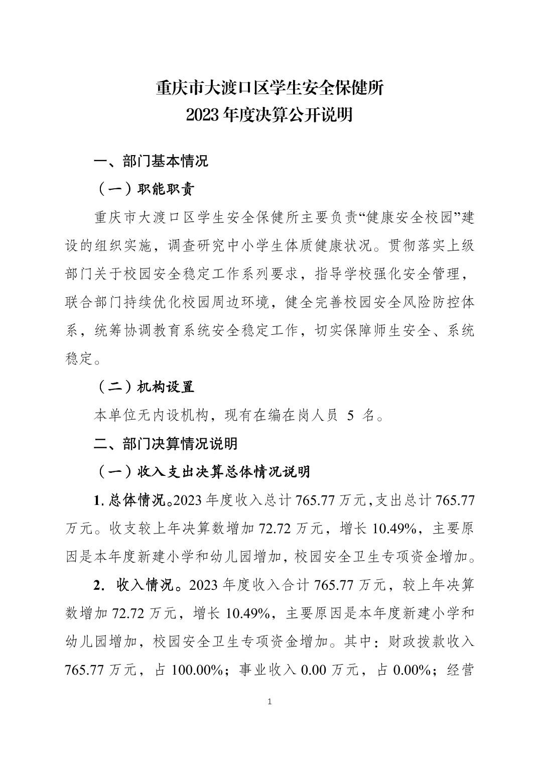 重庆市大渡口区学生安全保健所2023年度决算公开说明
