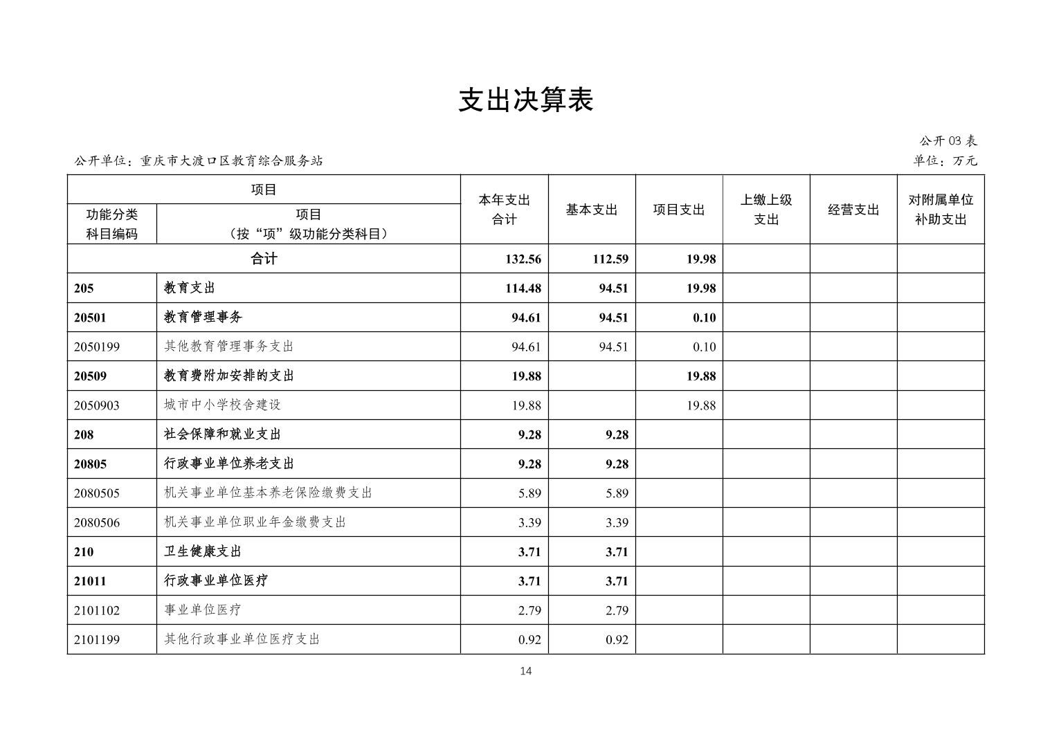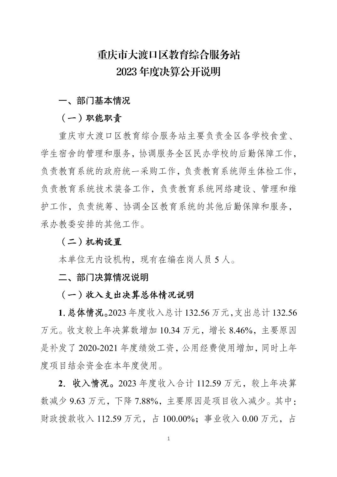 重庆市大渡口区教育综合服务站2023年度决算公开说明
