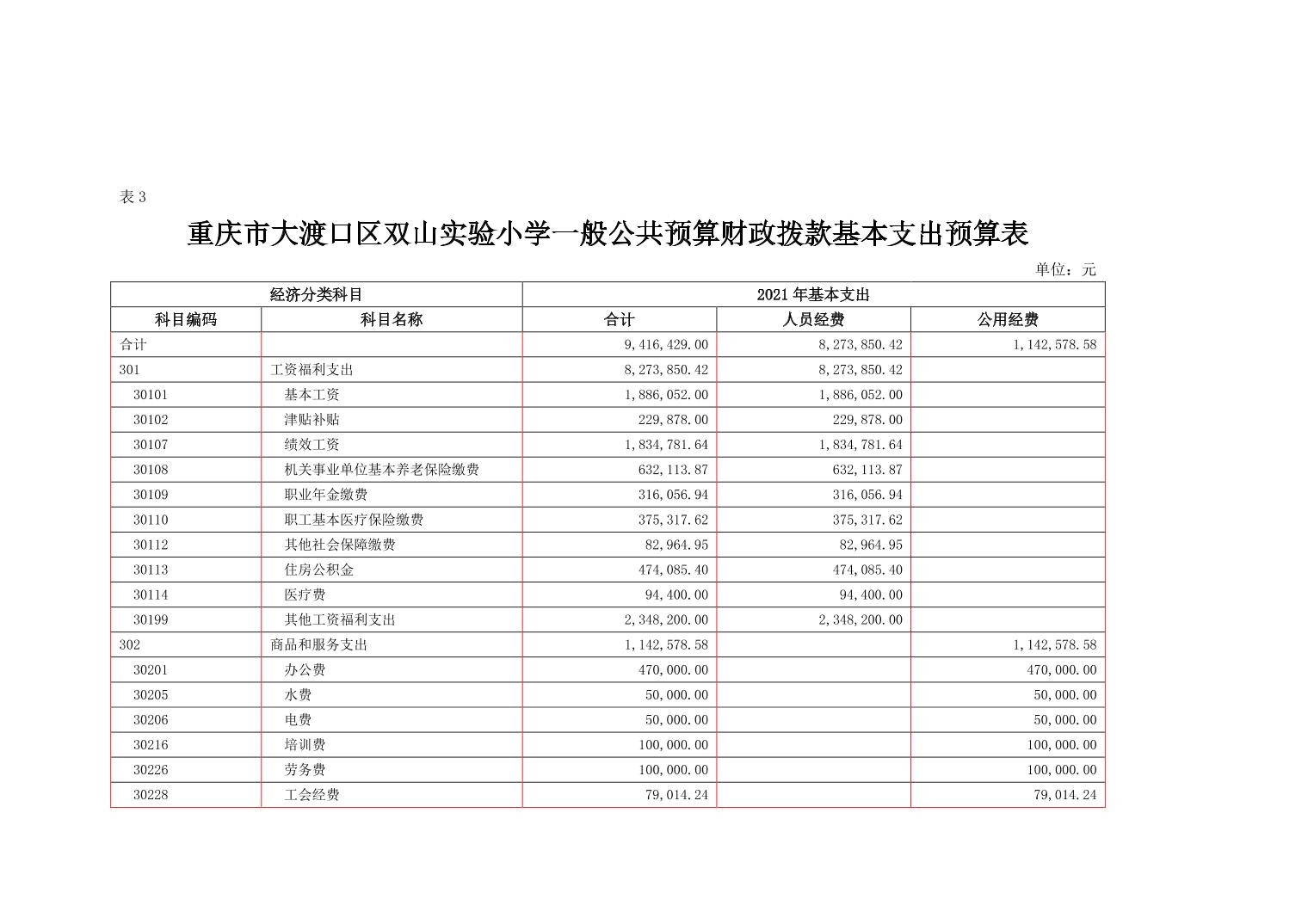 重庆市大渡口区双山实验小学2021年部门预算情况说明
