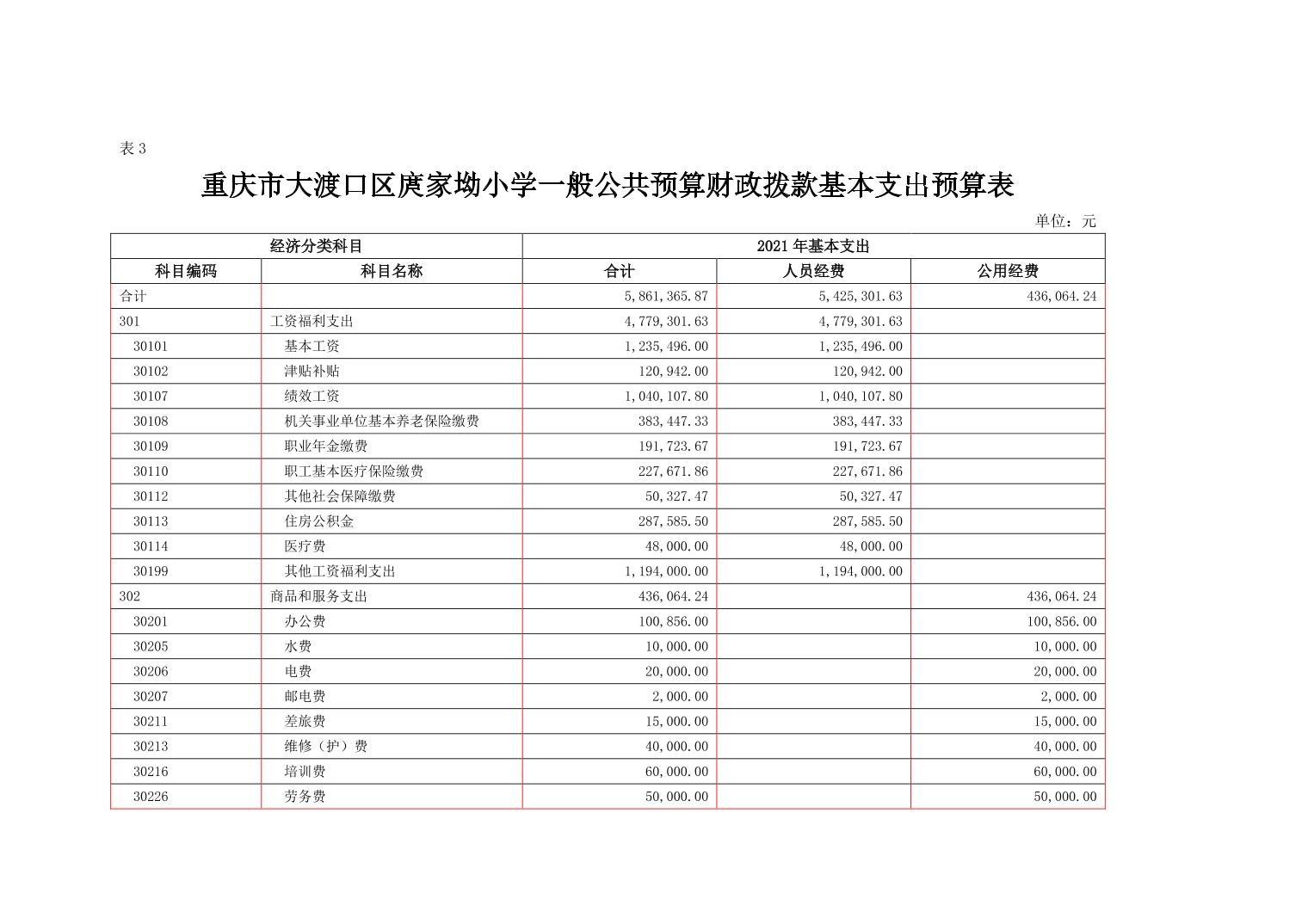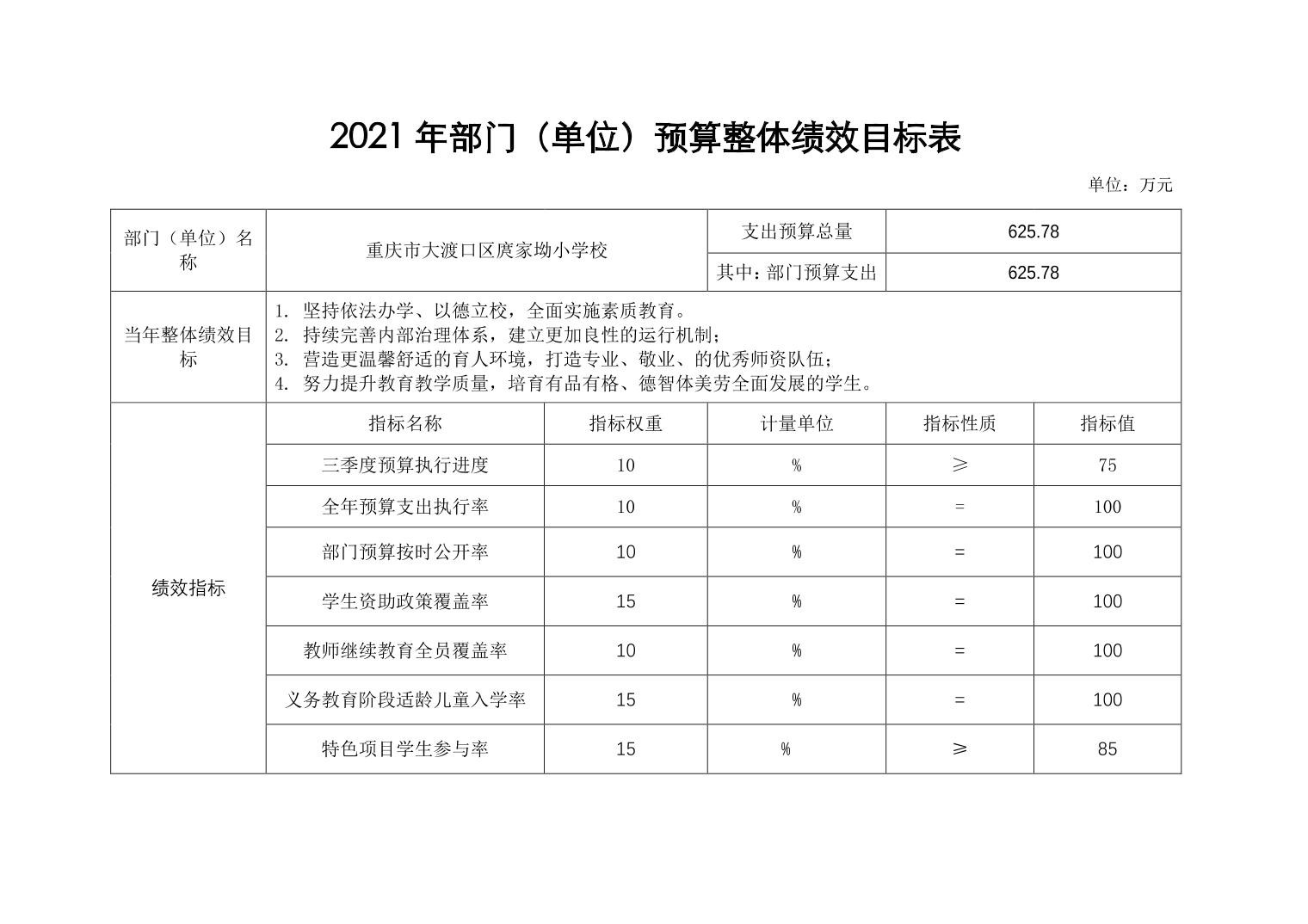 重庆市大渡口区庹家坳小学2021年部门预算情况说明