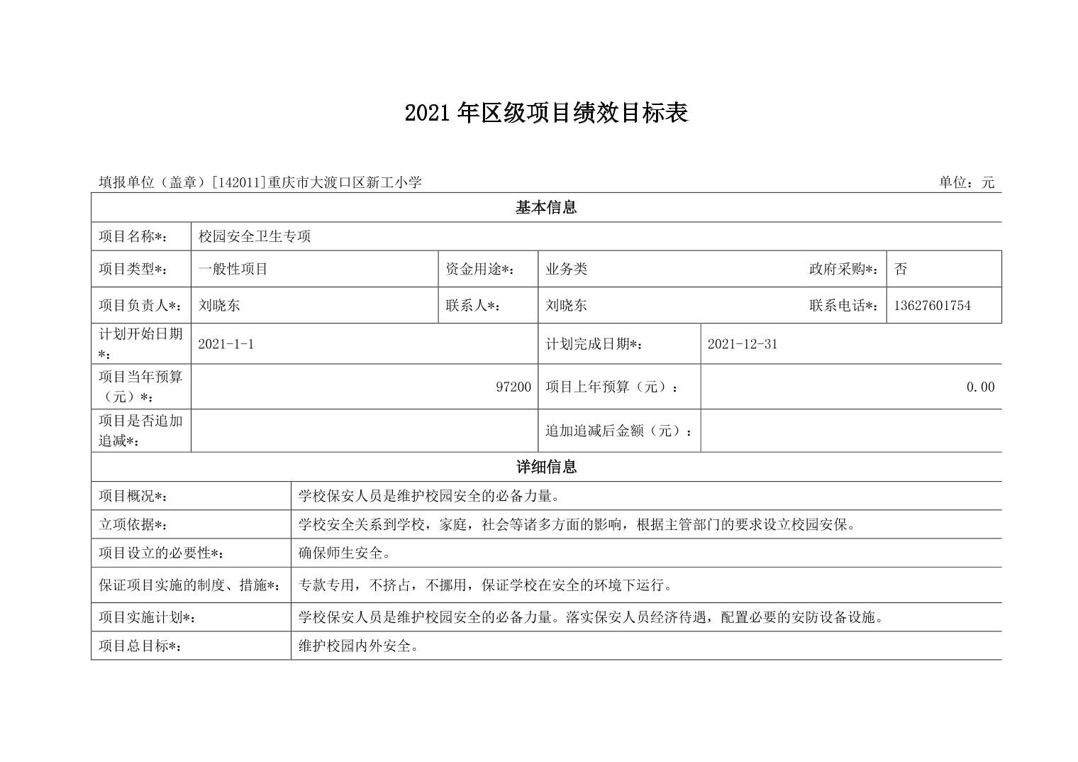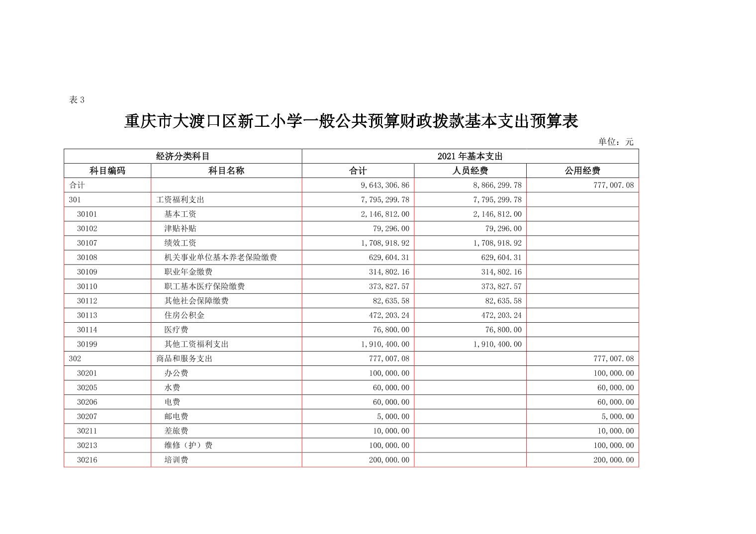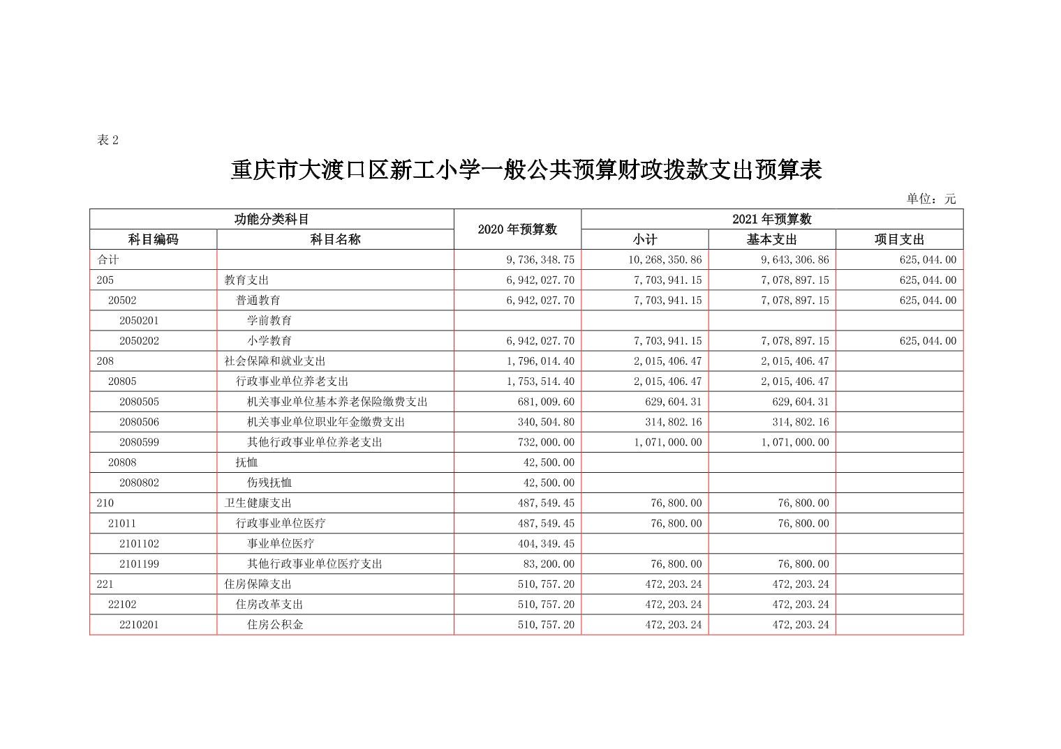 重庆市大渡口区新工小学2021年部门预算情况说明