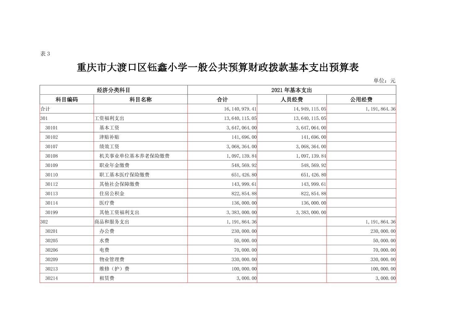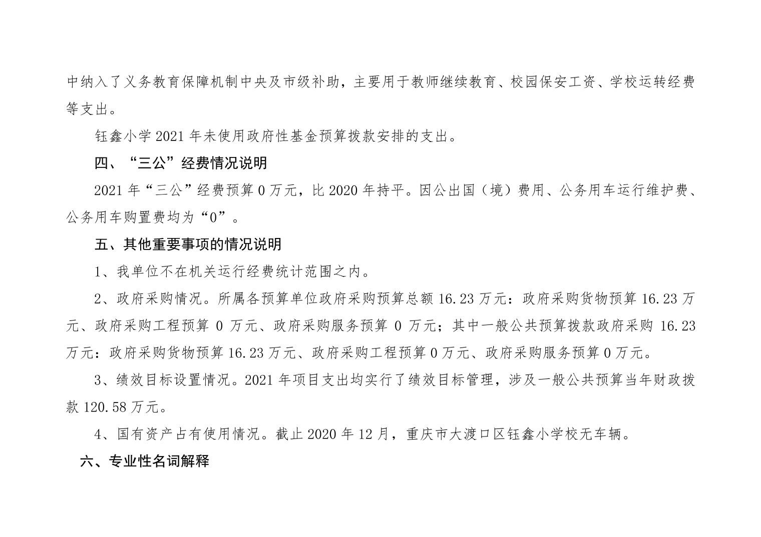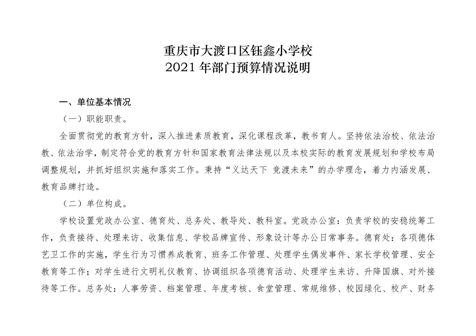 重庆市大渡口区钰鑫小学校2021年部门预算情况说明