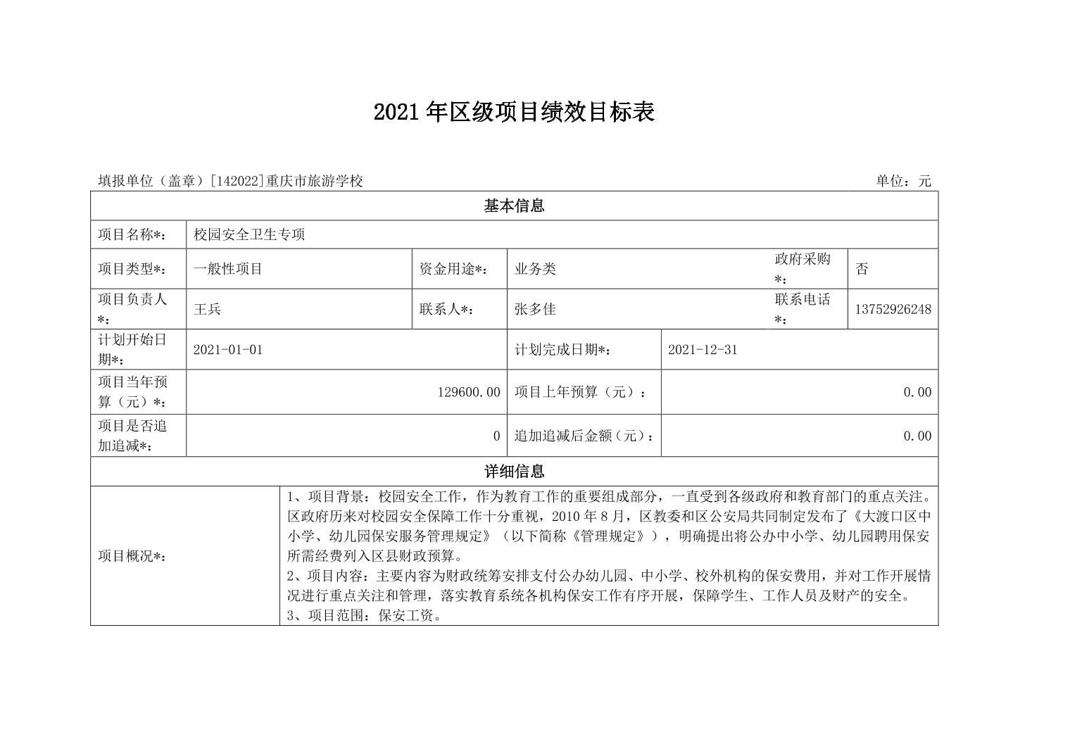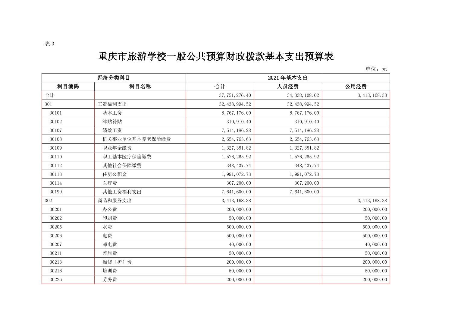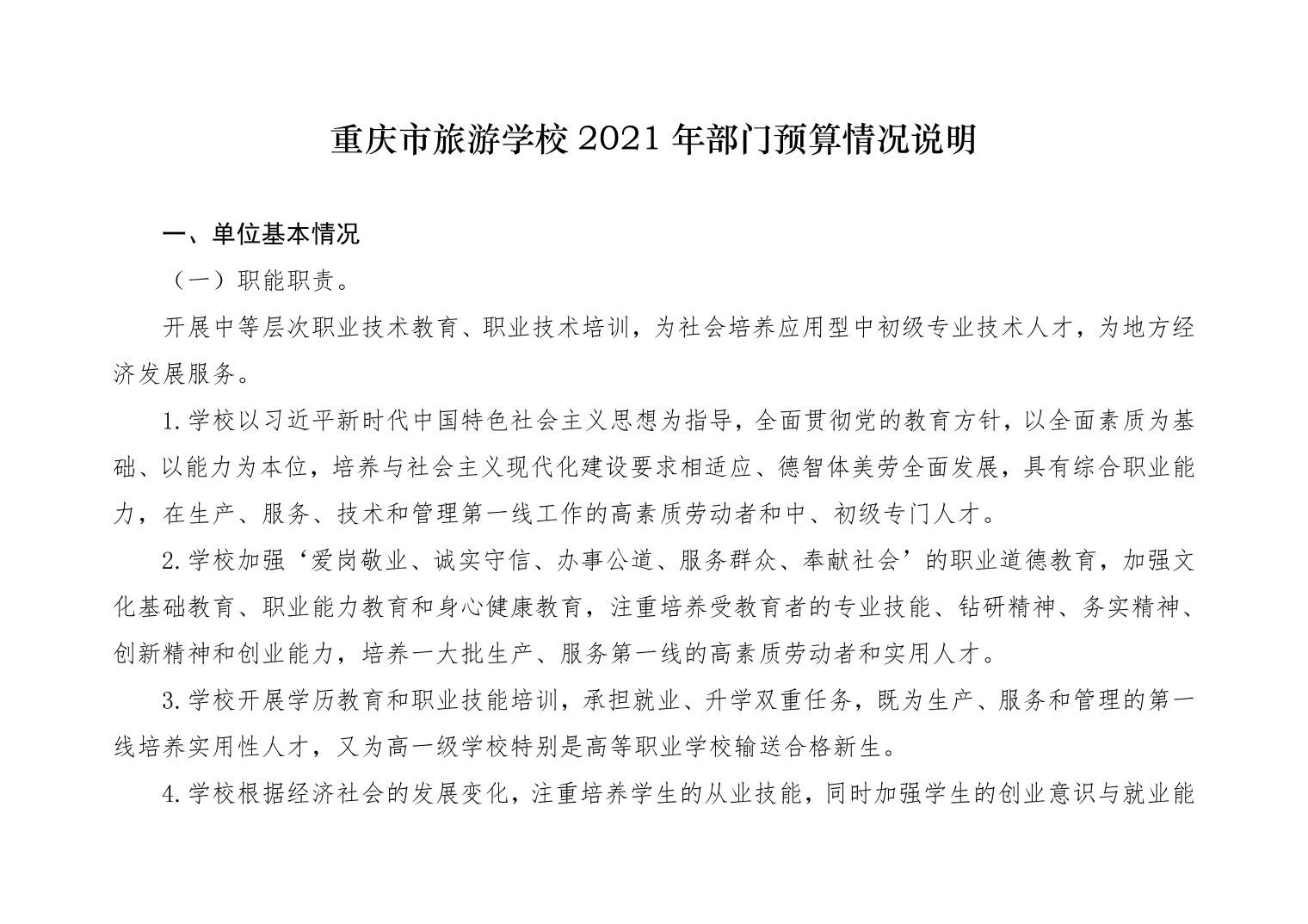 重庆市旅游学校2021年部门预算情况说明