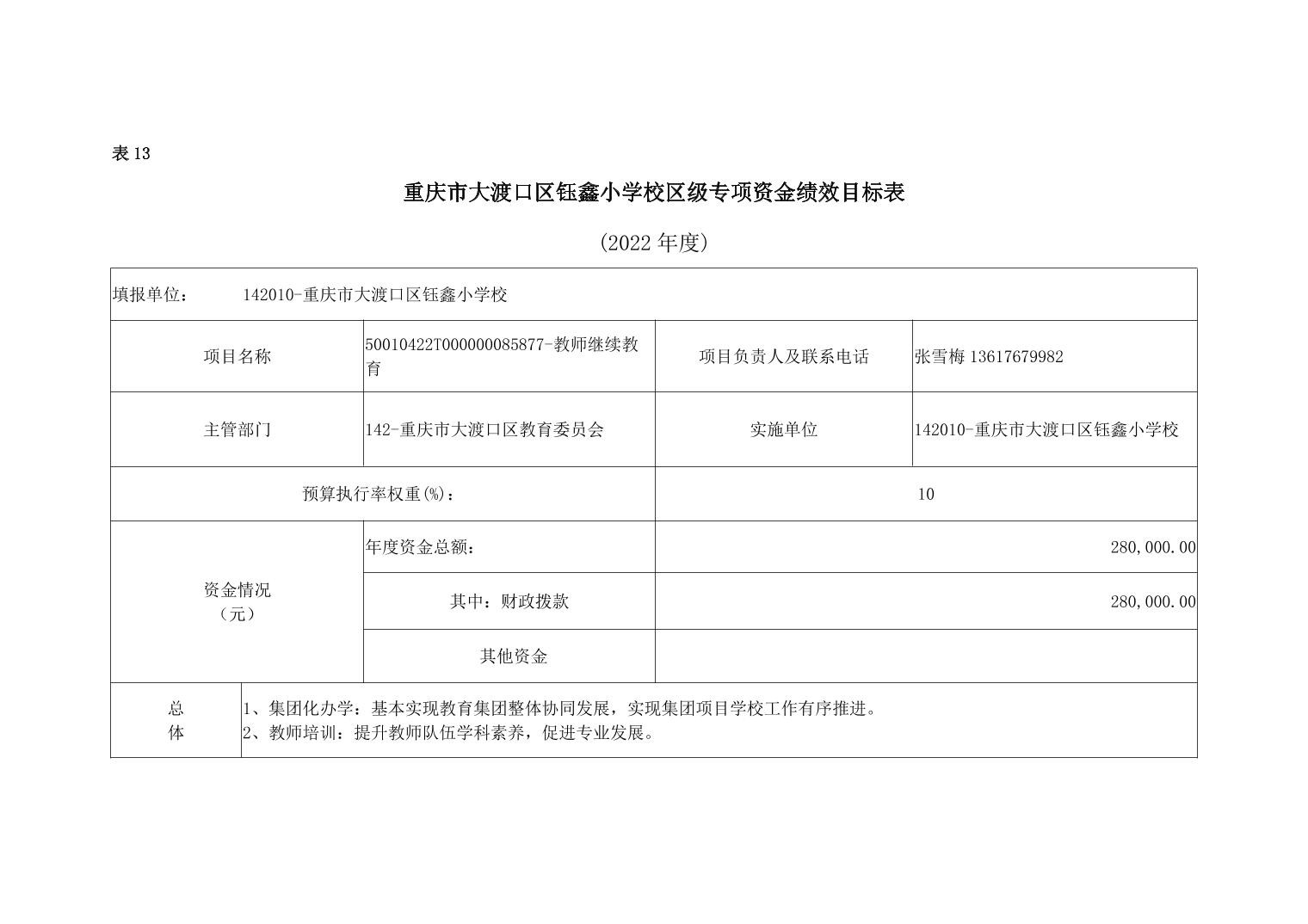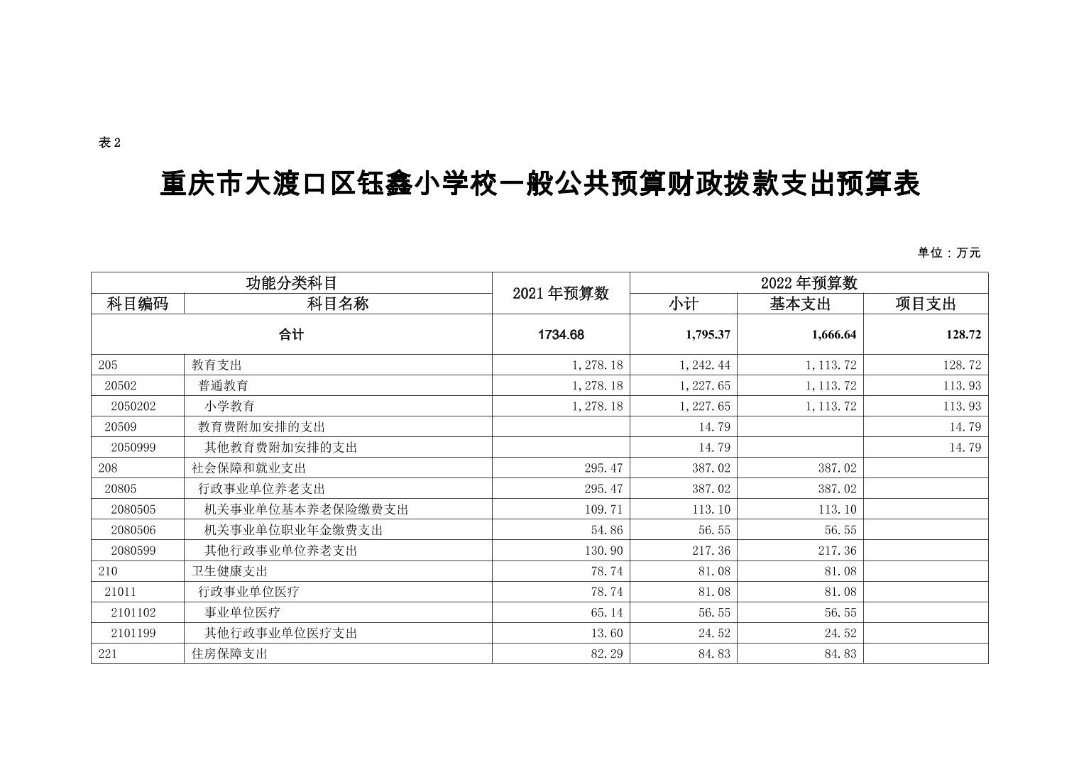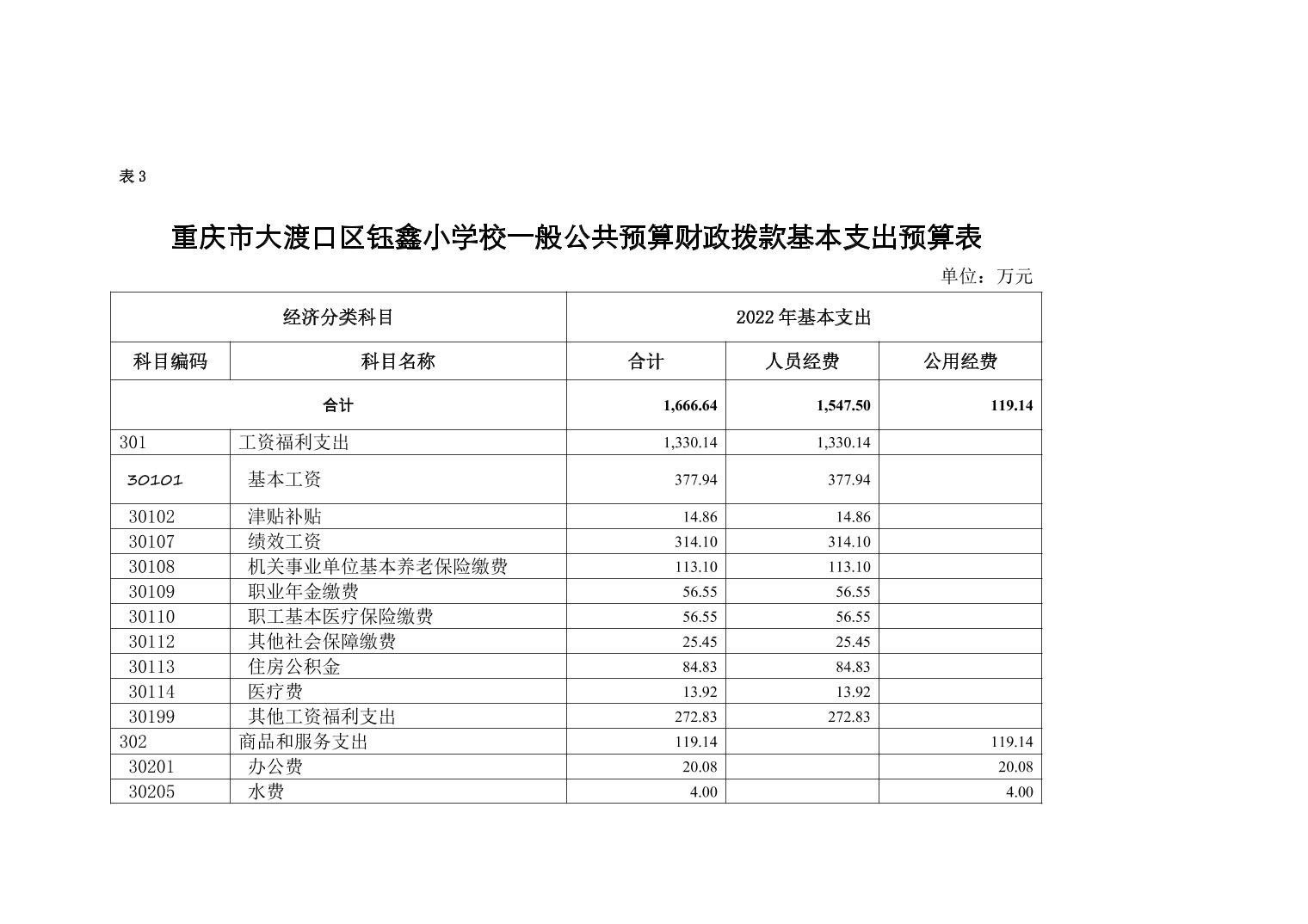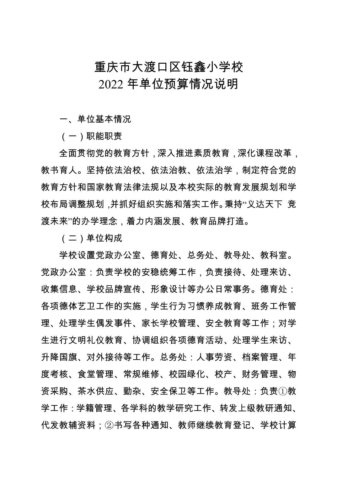 重庆市大渡口区钰鑫小学2022年单位预算情况说明