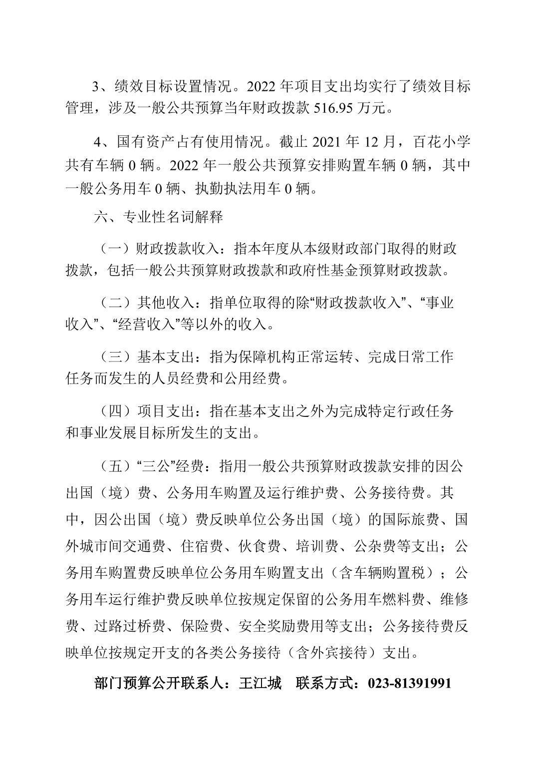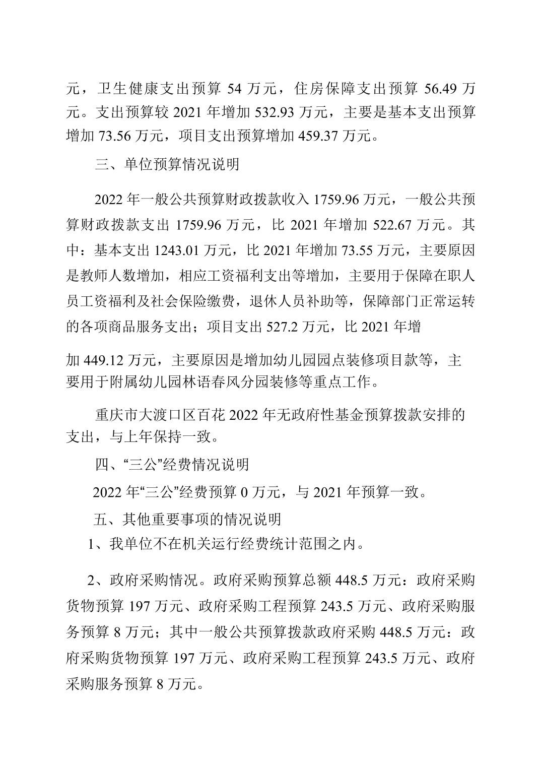 重庆市大渡口区百花小学2022年单位预算情况说明