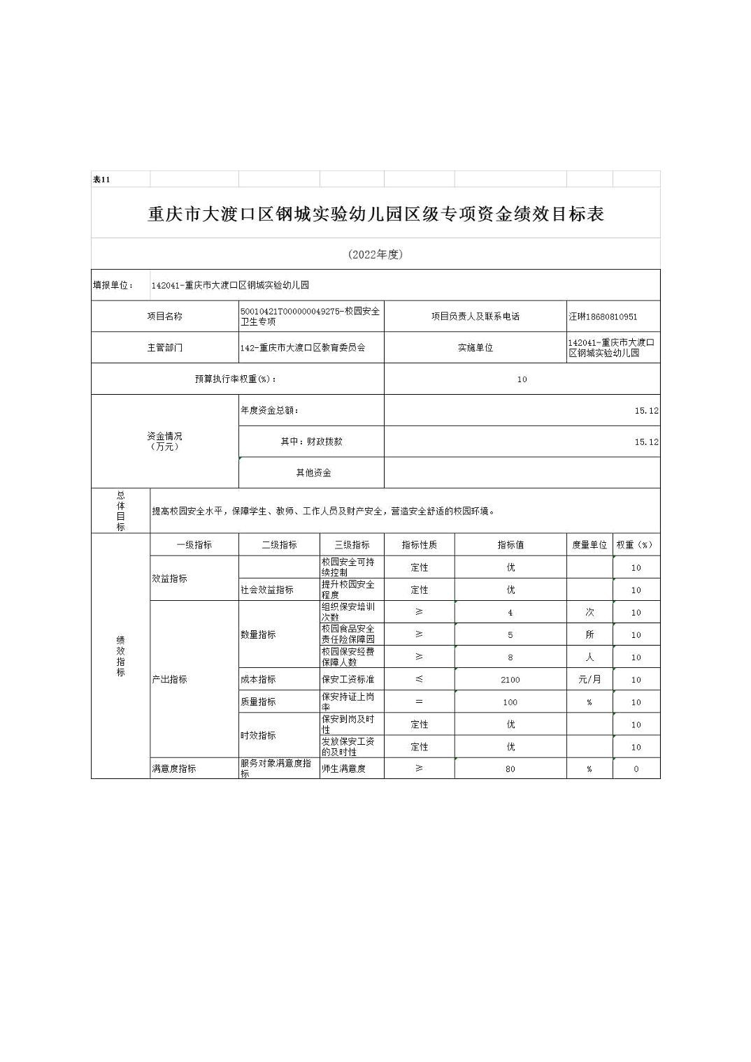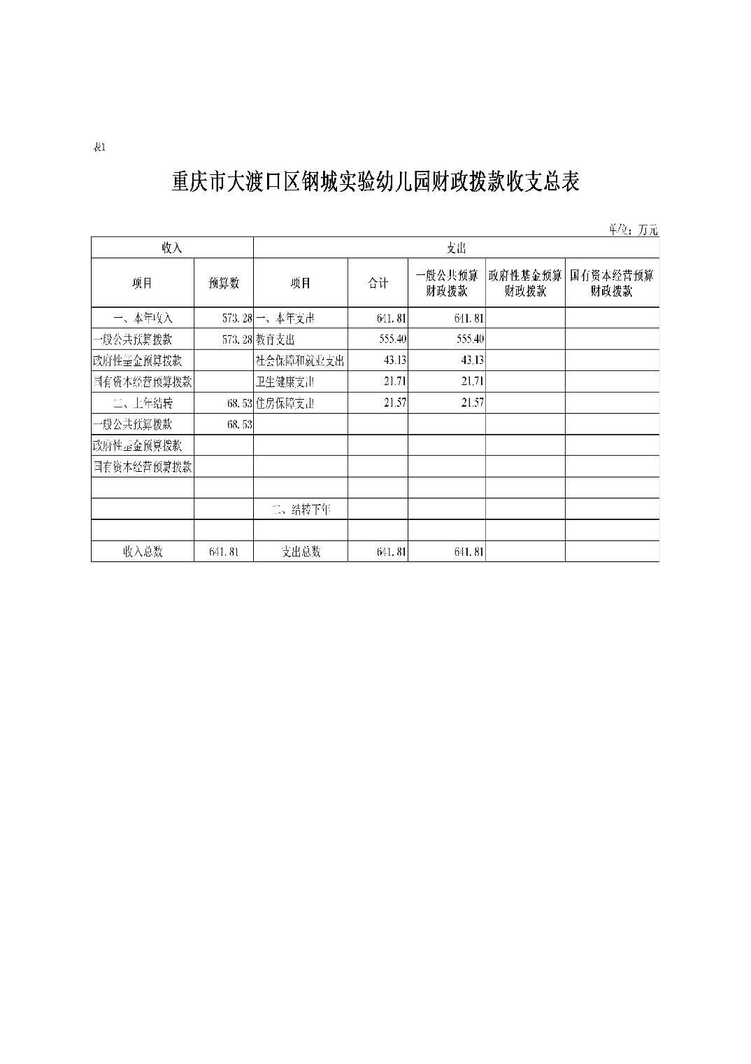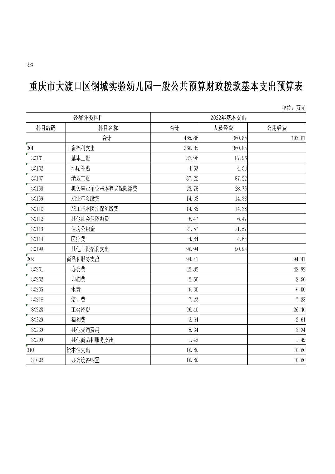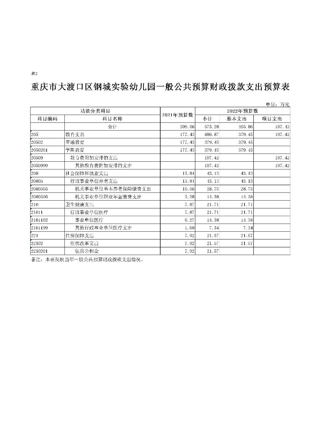 重庆市大渡口区钢城实验幼儿园2022年单位预算情况说明