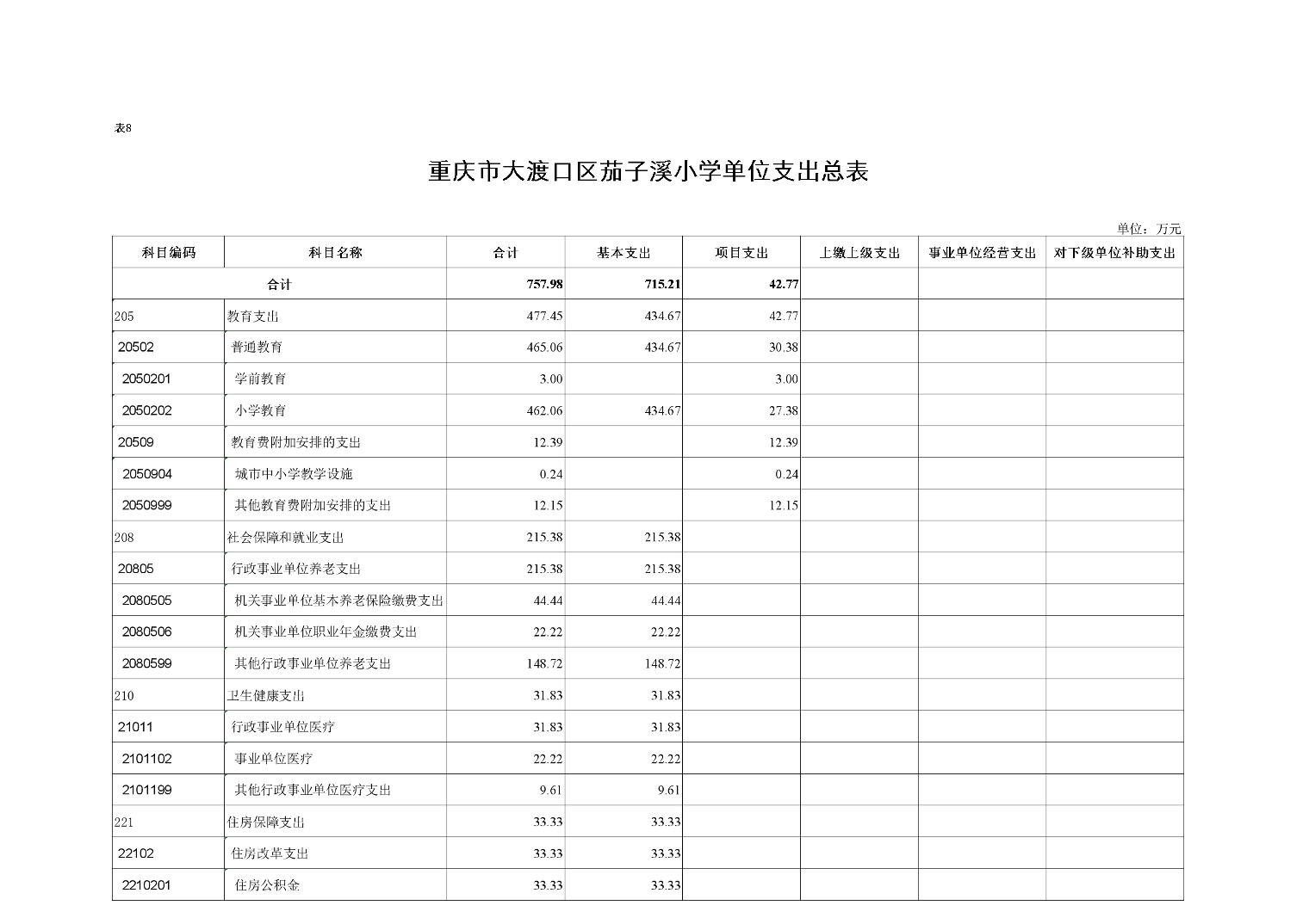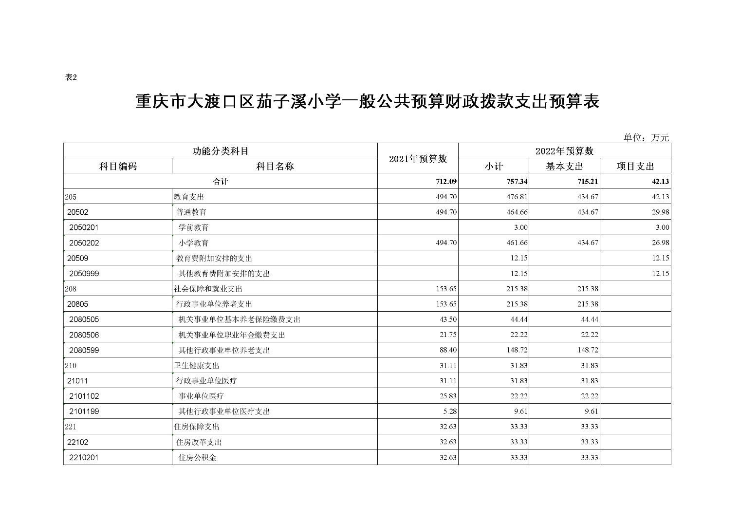 重庆市大渡口区茄子溪小学2022年单位预算情况说明