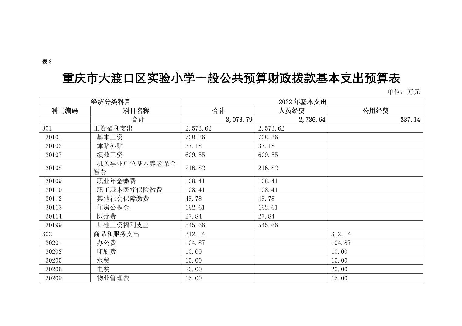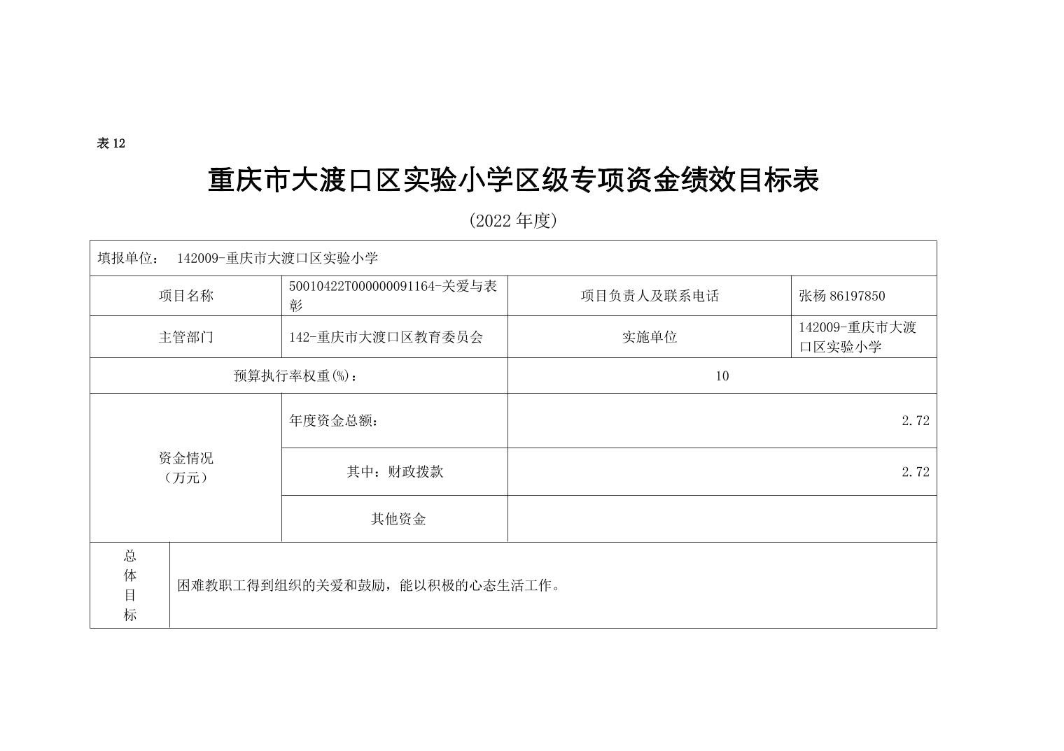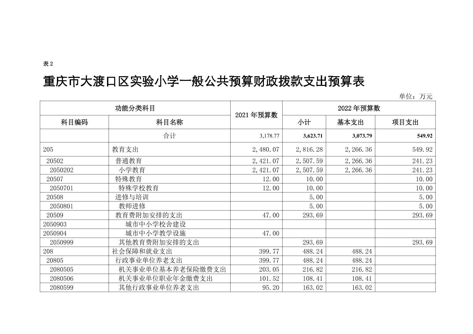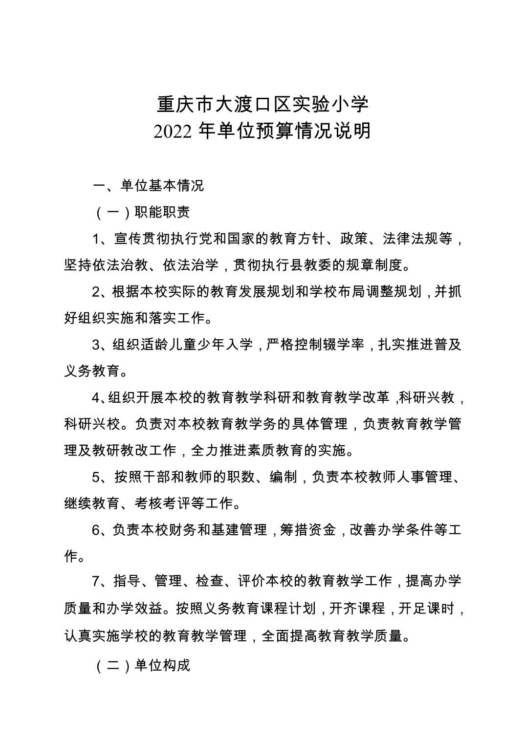重庆市大渡口区实验小学2022年单位预算情况说明