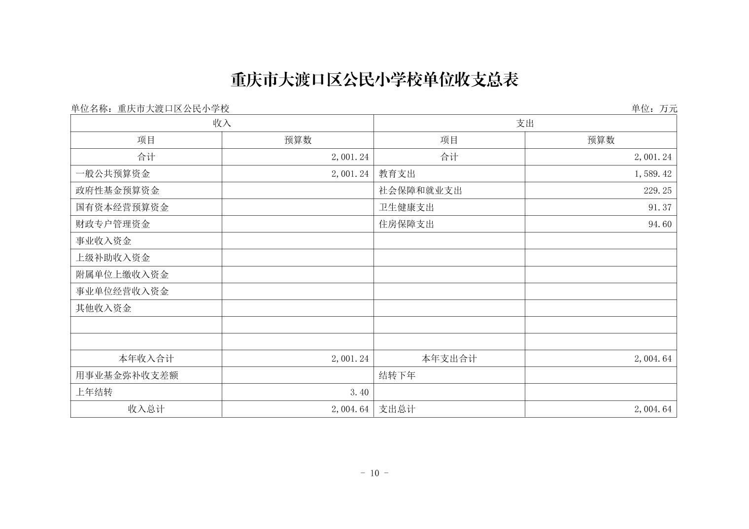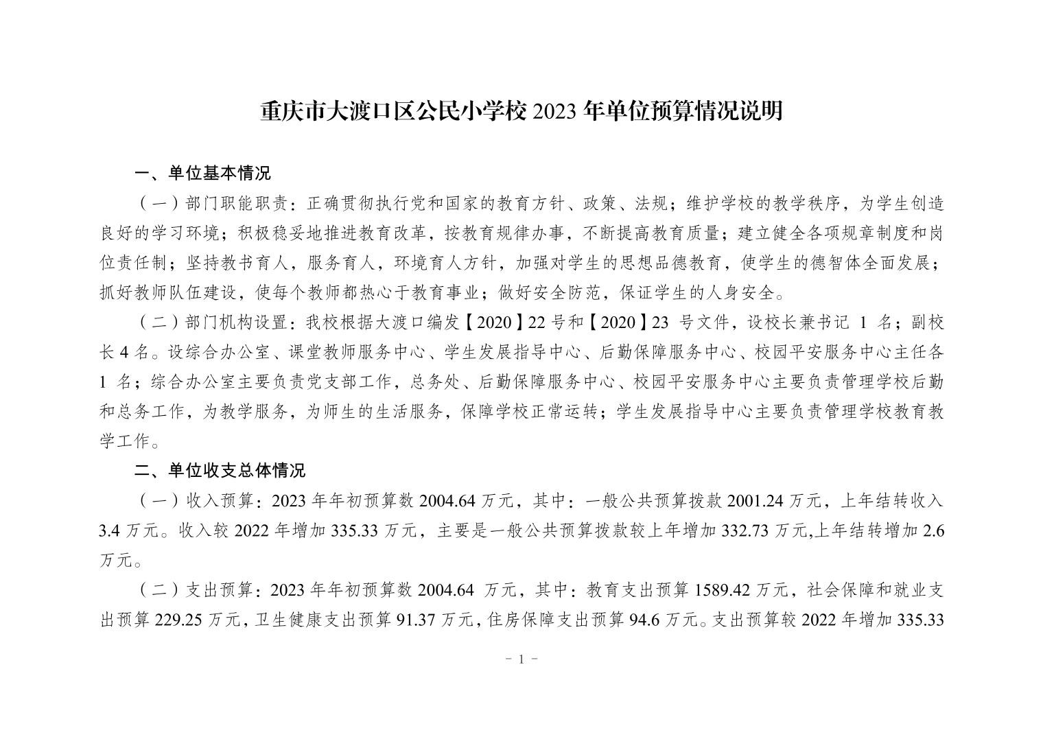 重庆市大渡口区公民小学校2023年单位预算情况说明