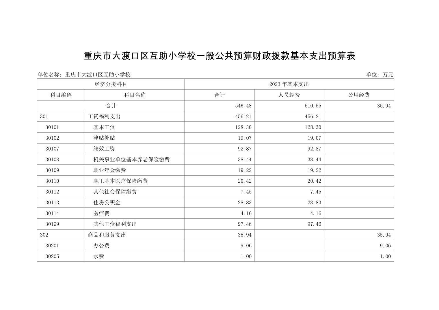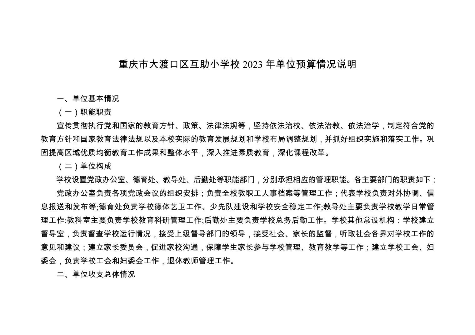 重庆市大渡口区互助小学校2023年单位预算情况说明
