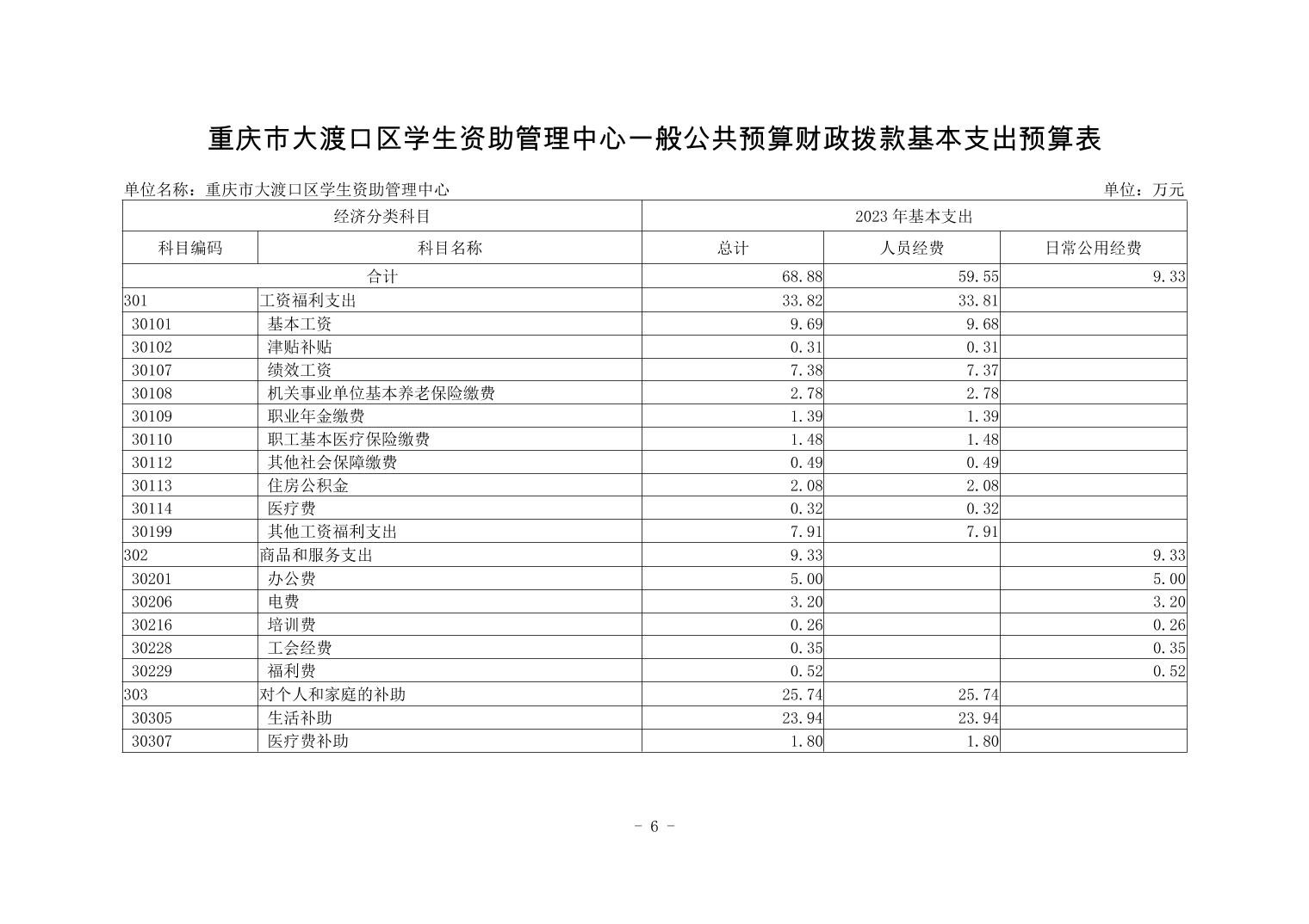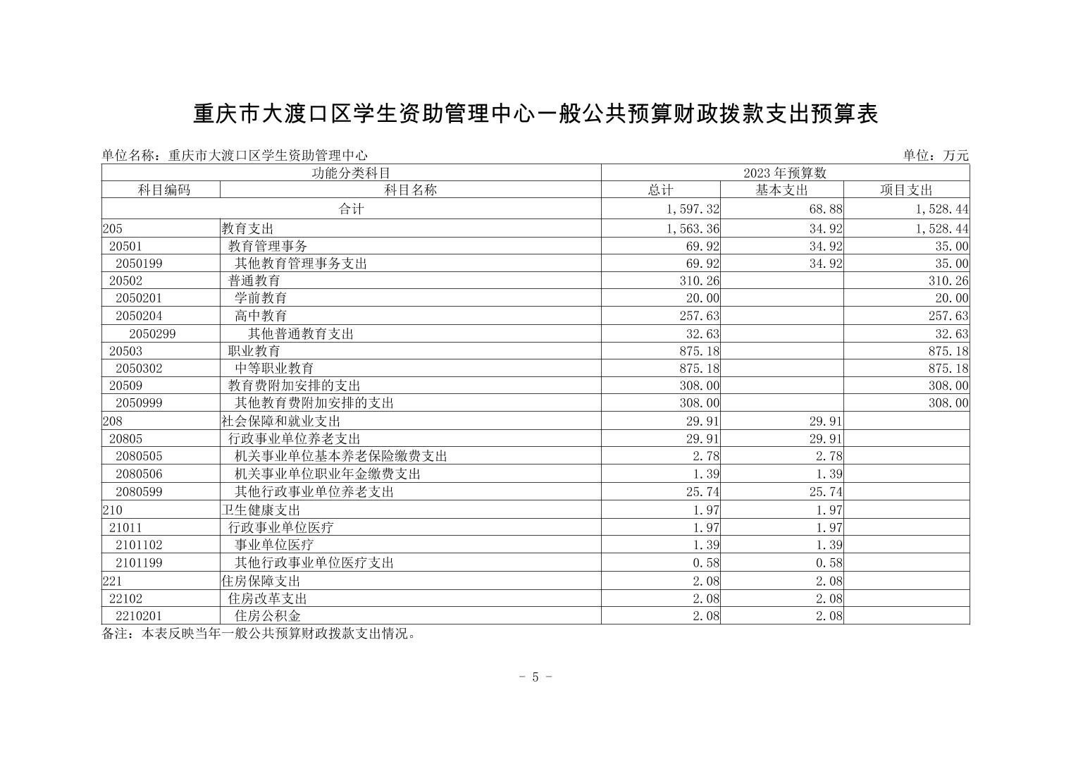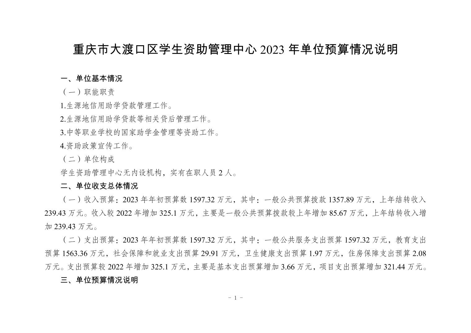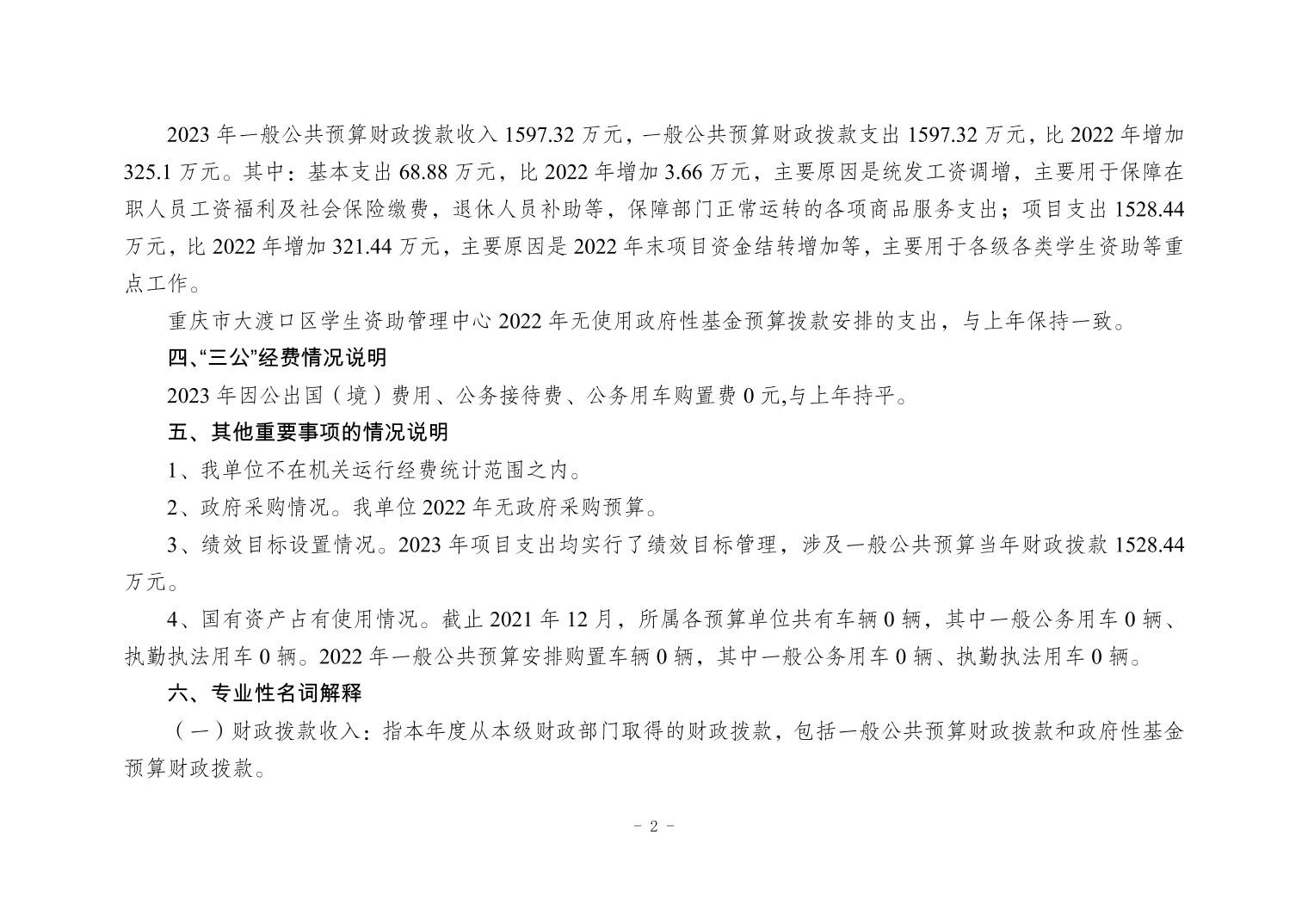 重庆市大渡口区学生资助管理中心2023年单位预算情况说明