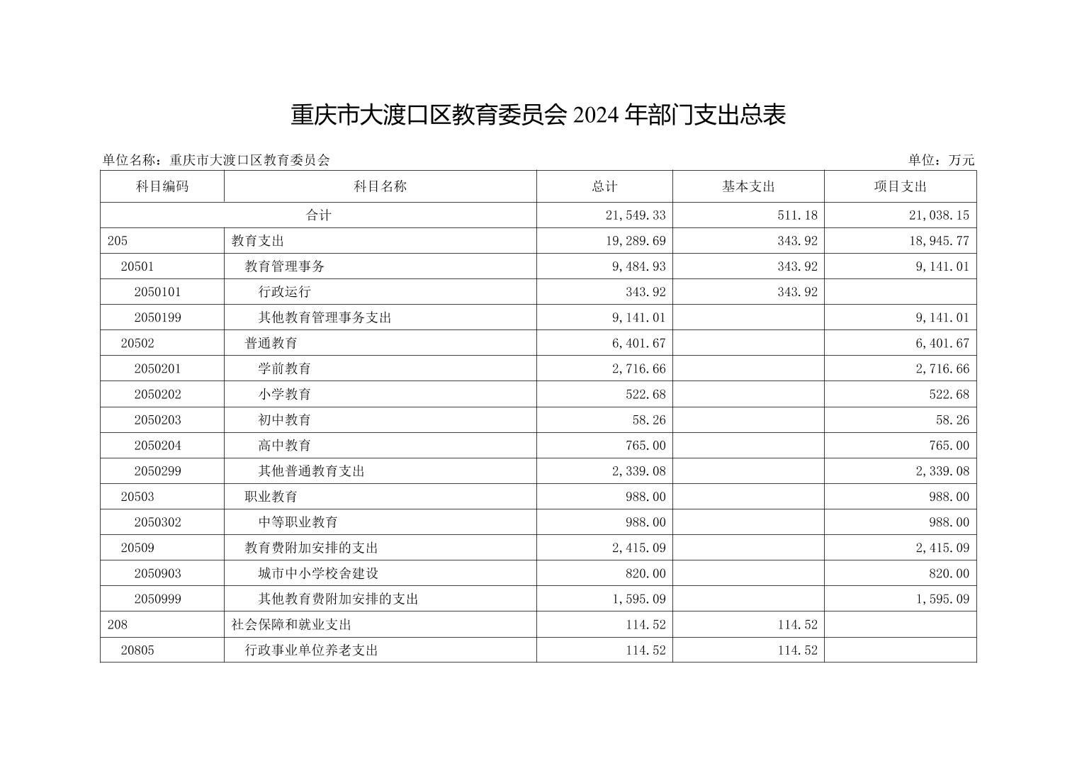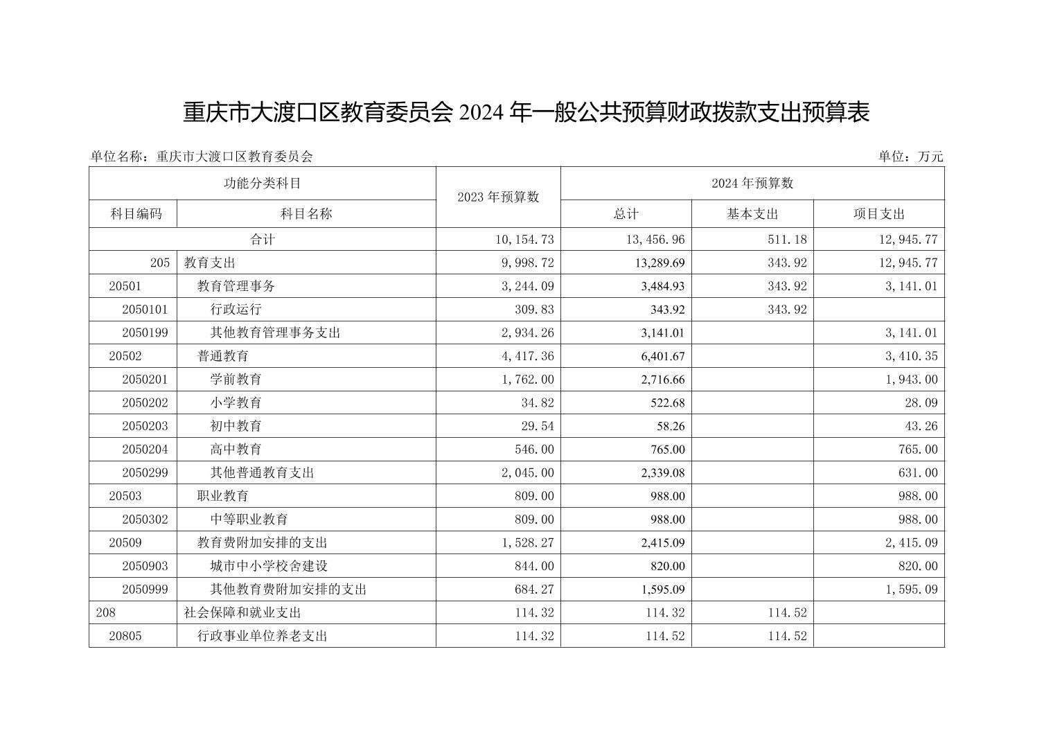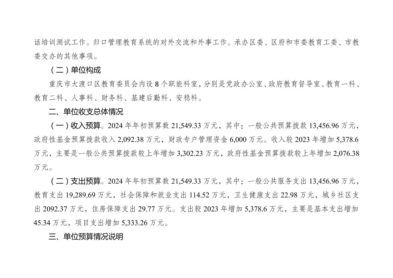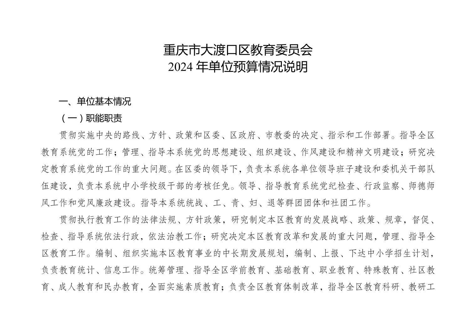 重庆市大渡口区教育委员会(本级)2024年单位预算情况说明