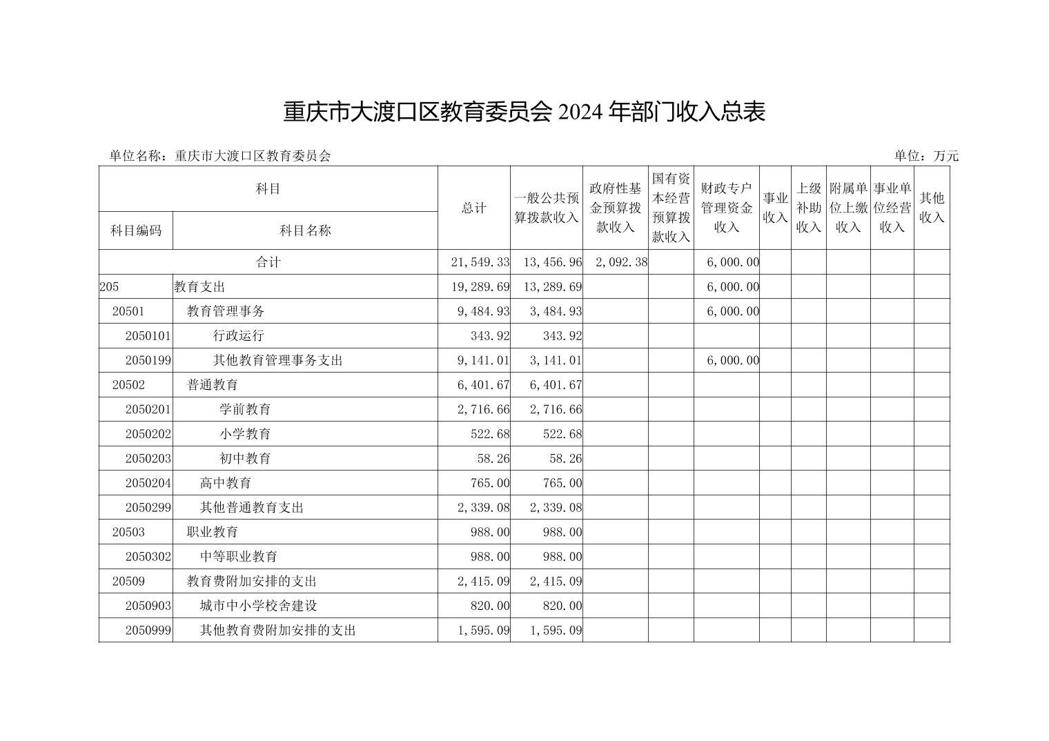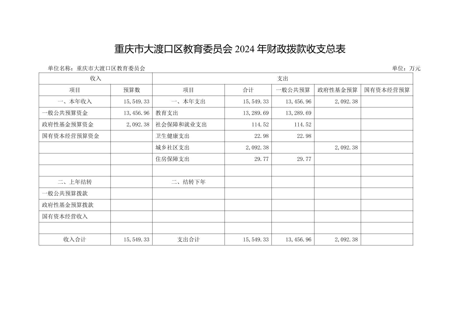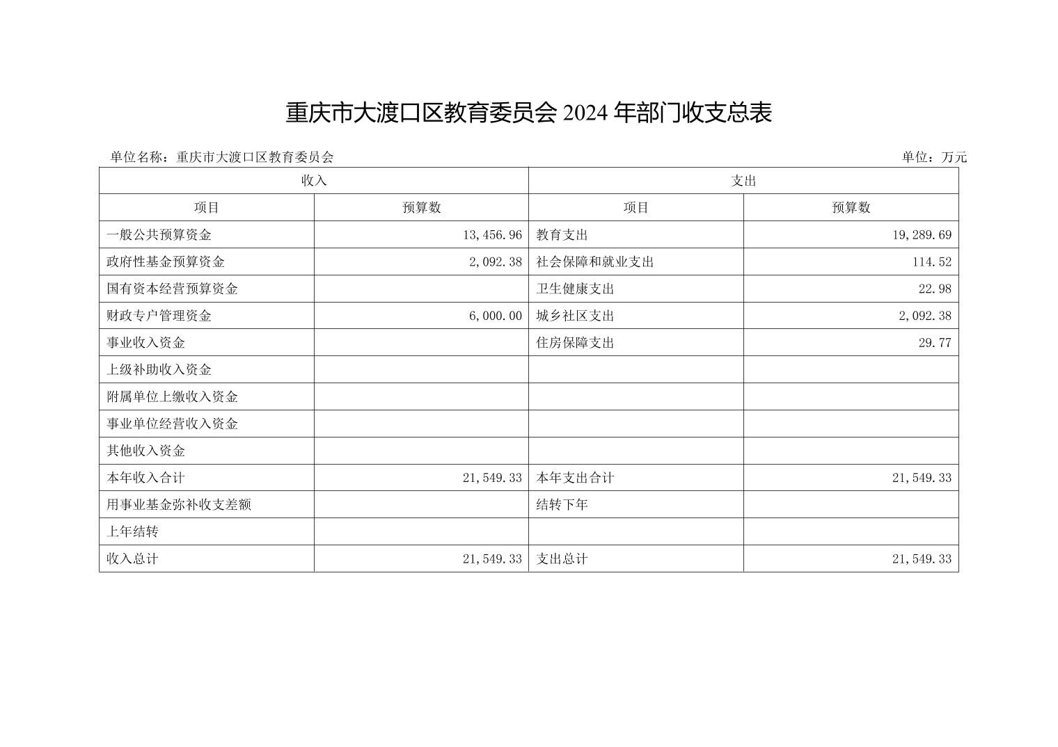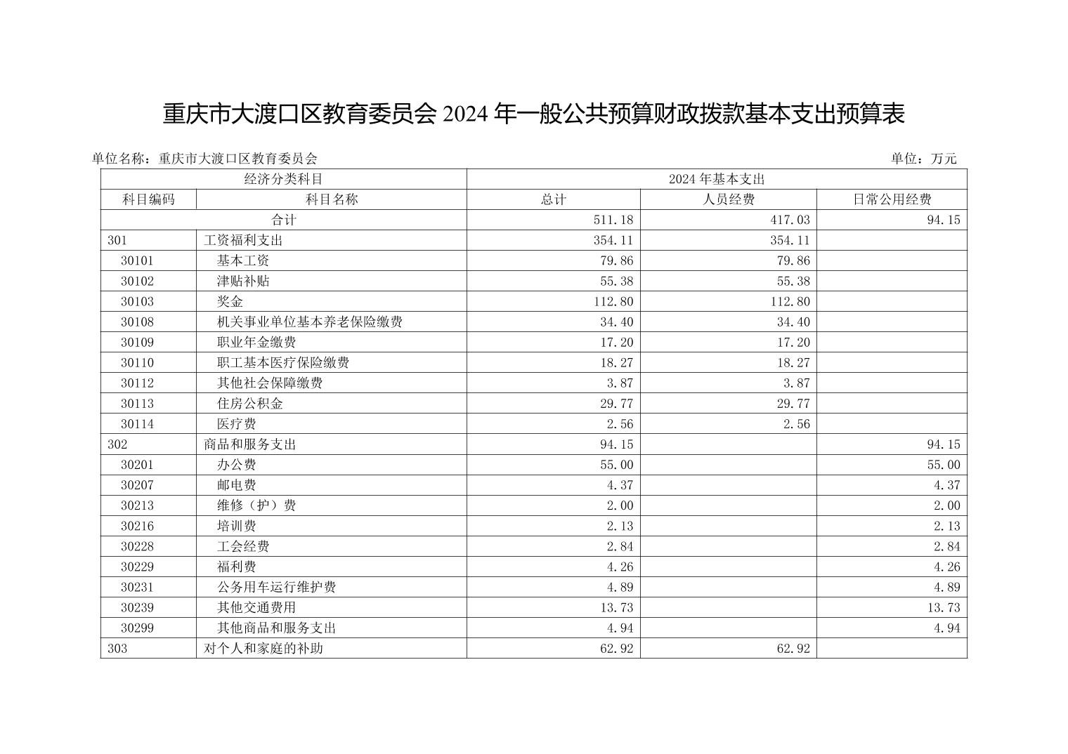 重庆市大渡口区教育委员会(本级)2024年单位预算情况说明