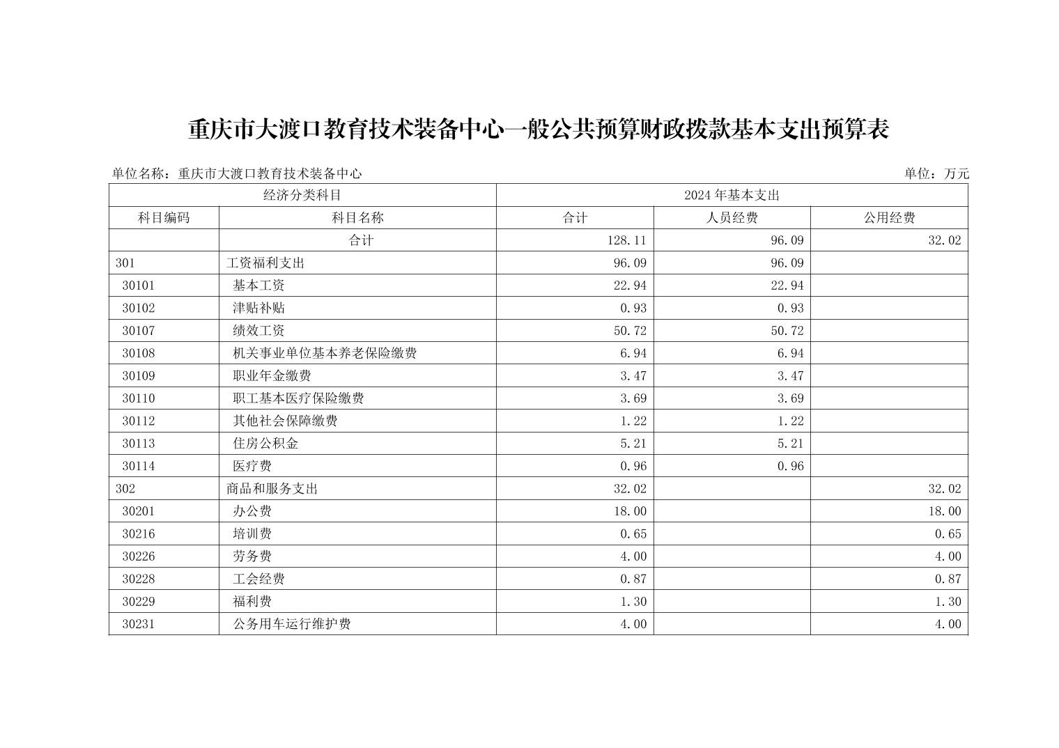 重庆市大渡口教育技术装备中心2024年单位预算情况说明