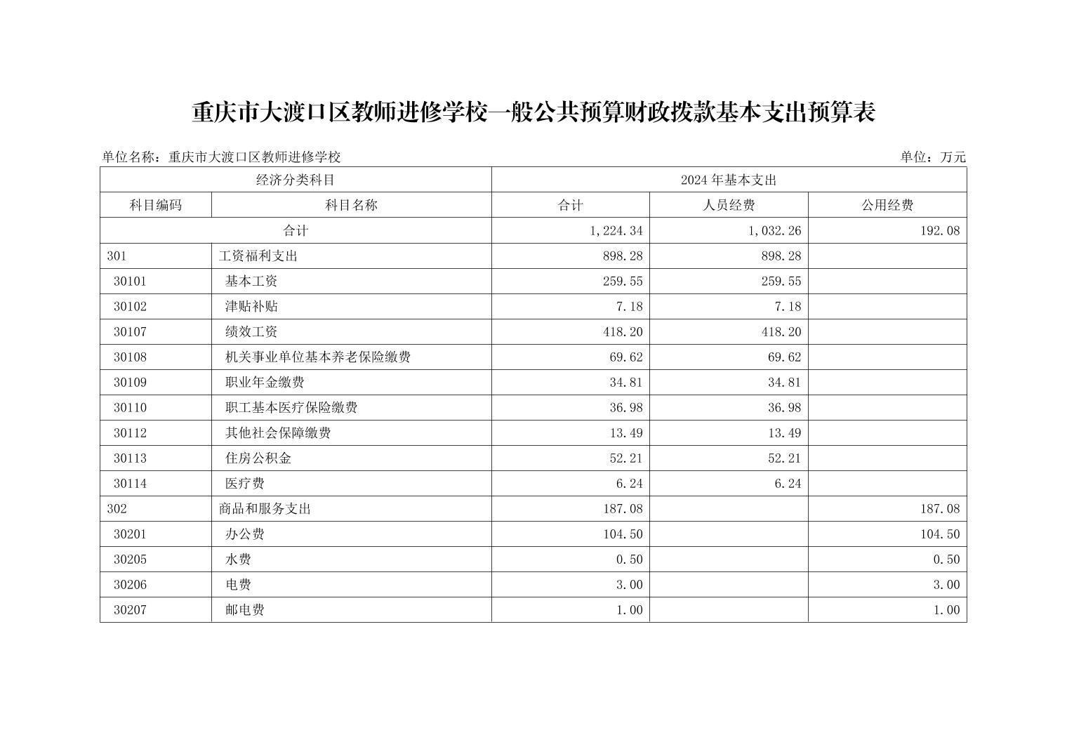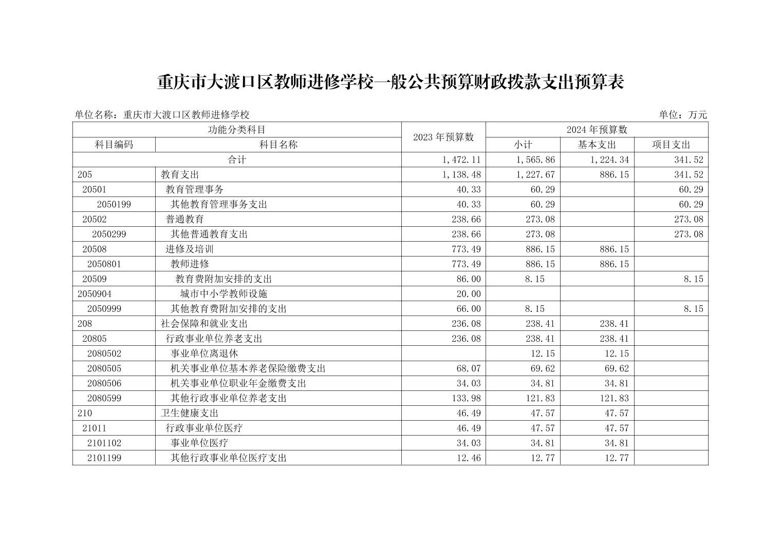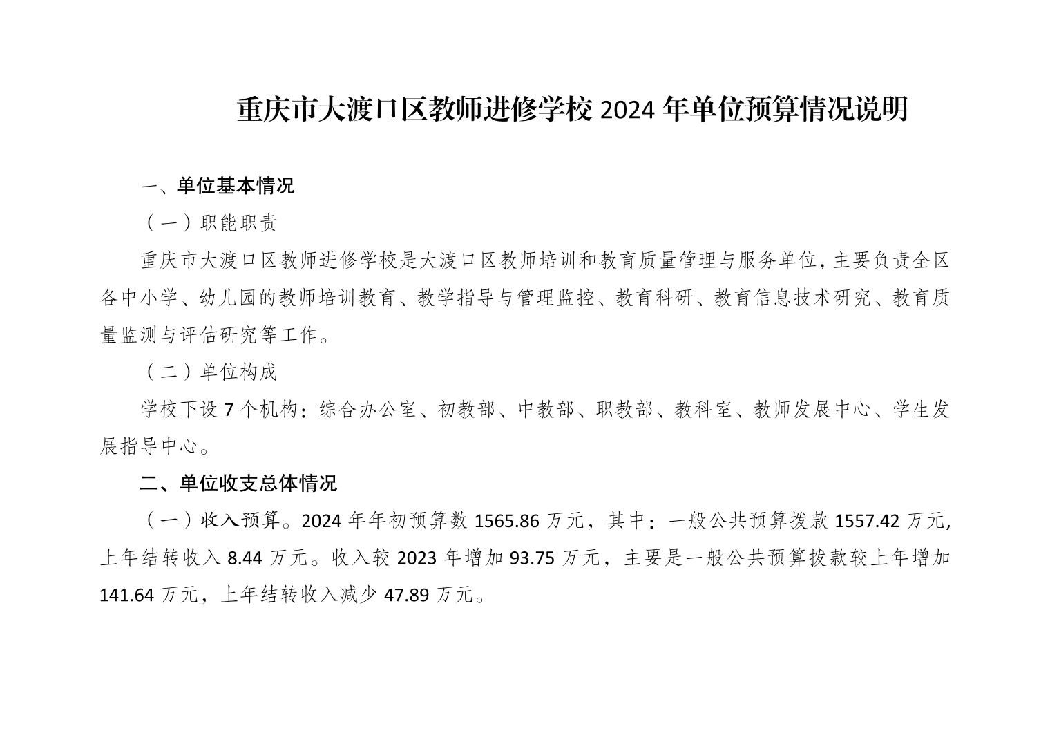 重庆市大渡口区教师进修学校2024年单位预算情况说明