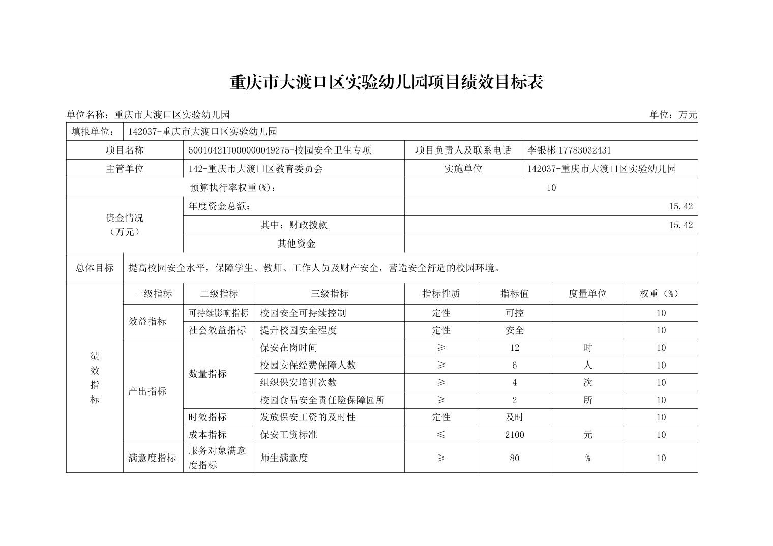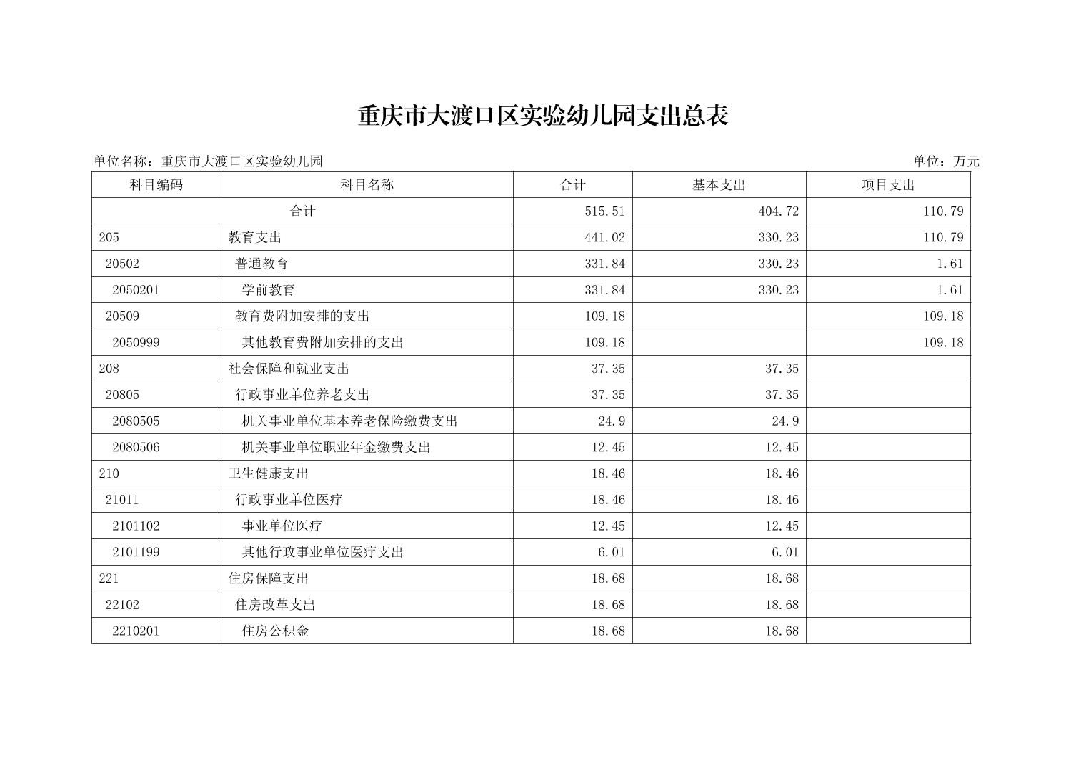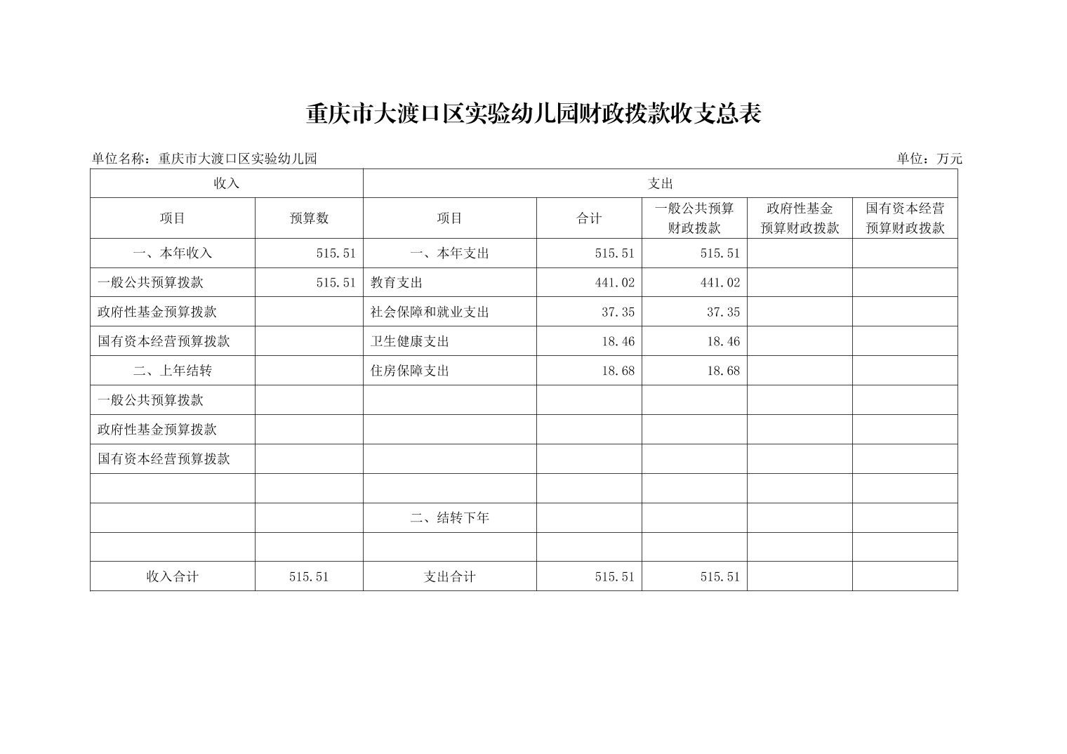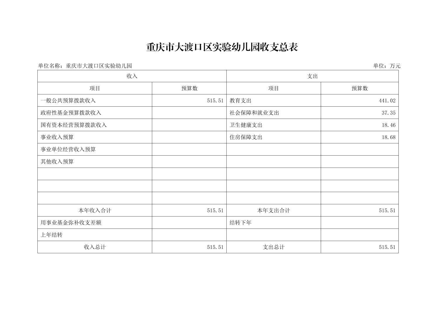 重庆市大渡口区实验幼儿园2024年单位预算情况说明