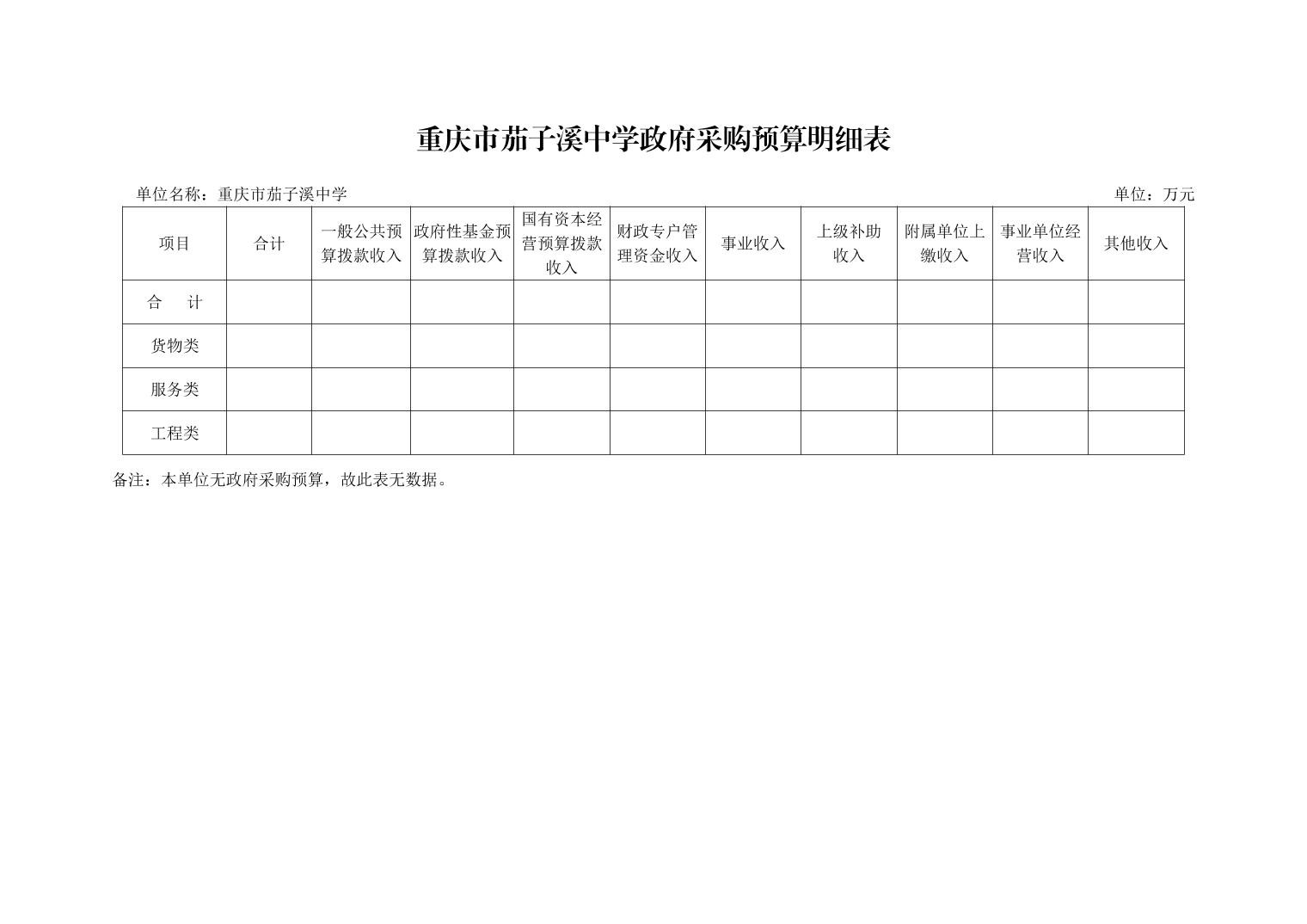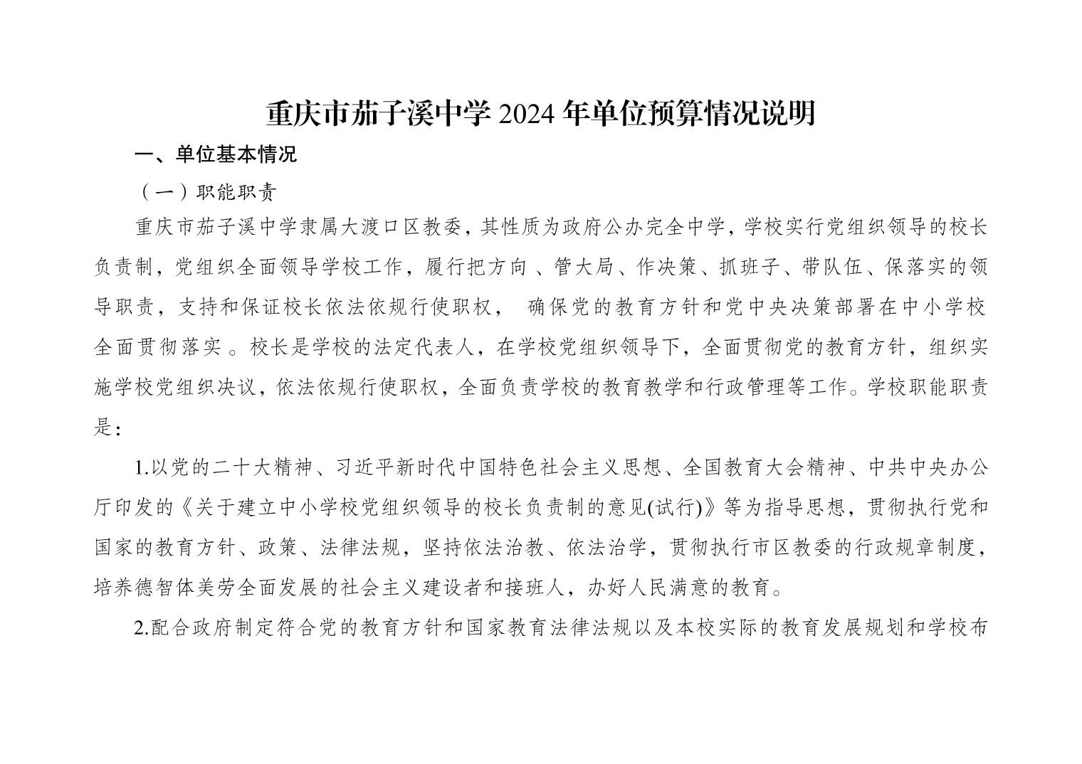 重庆市茄子溪中学2024年单位预算情况说明