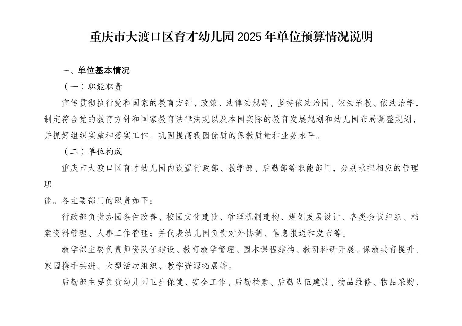 142042重庆市大渡口区育才幼儿园2025年单位预算情况说明