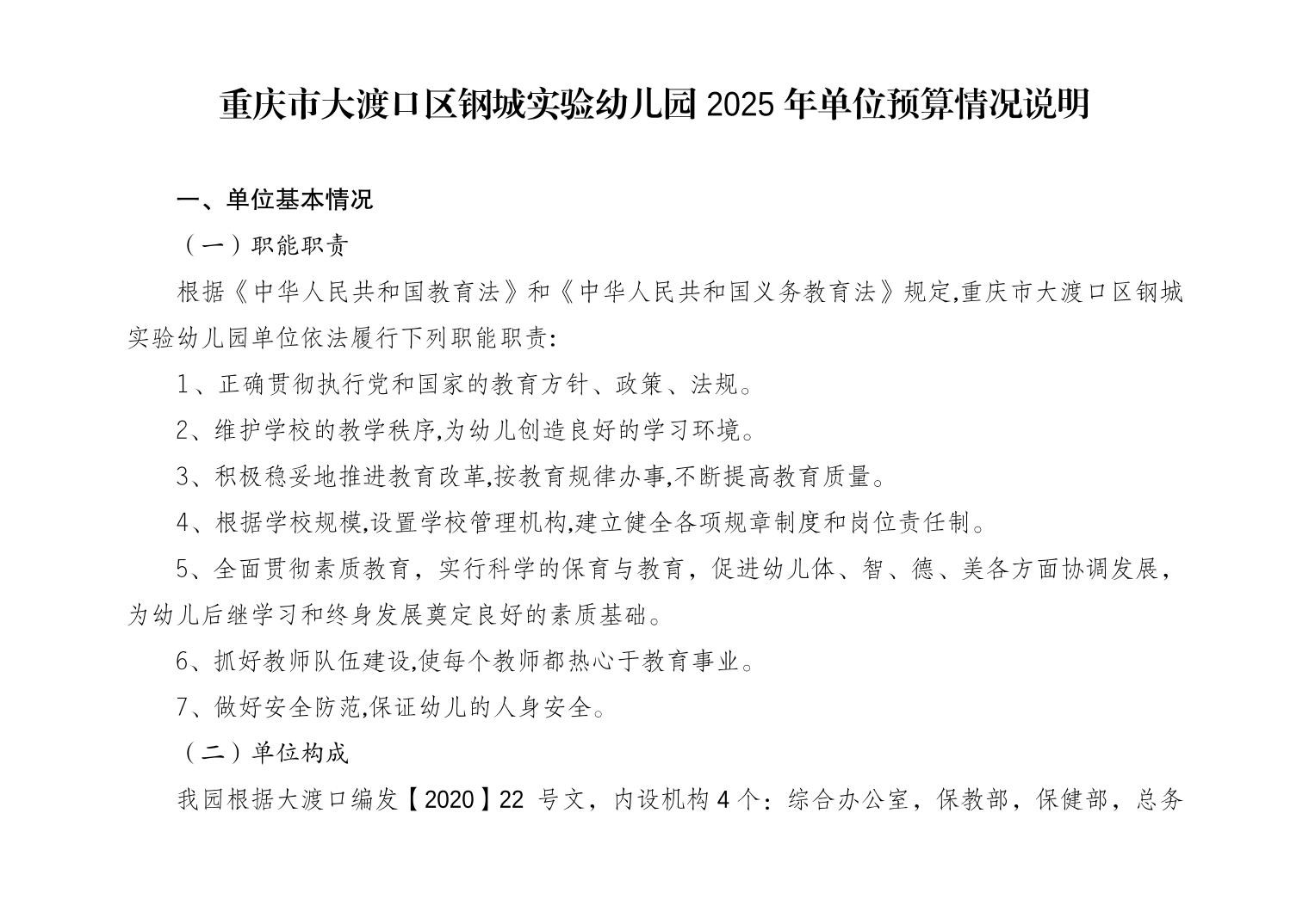 142041重庆市大渡口区钢城实验幼儿园2025年单位预算情况说明