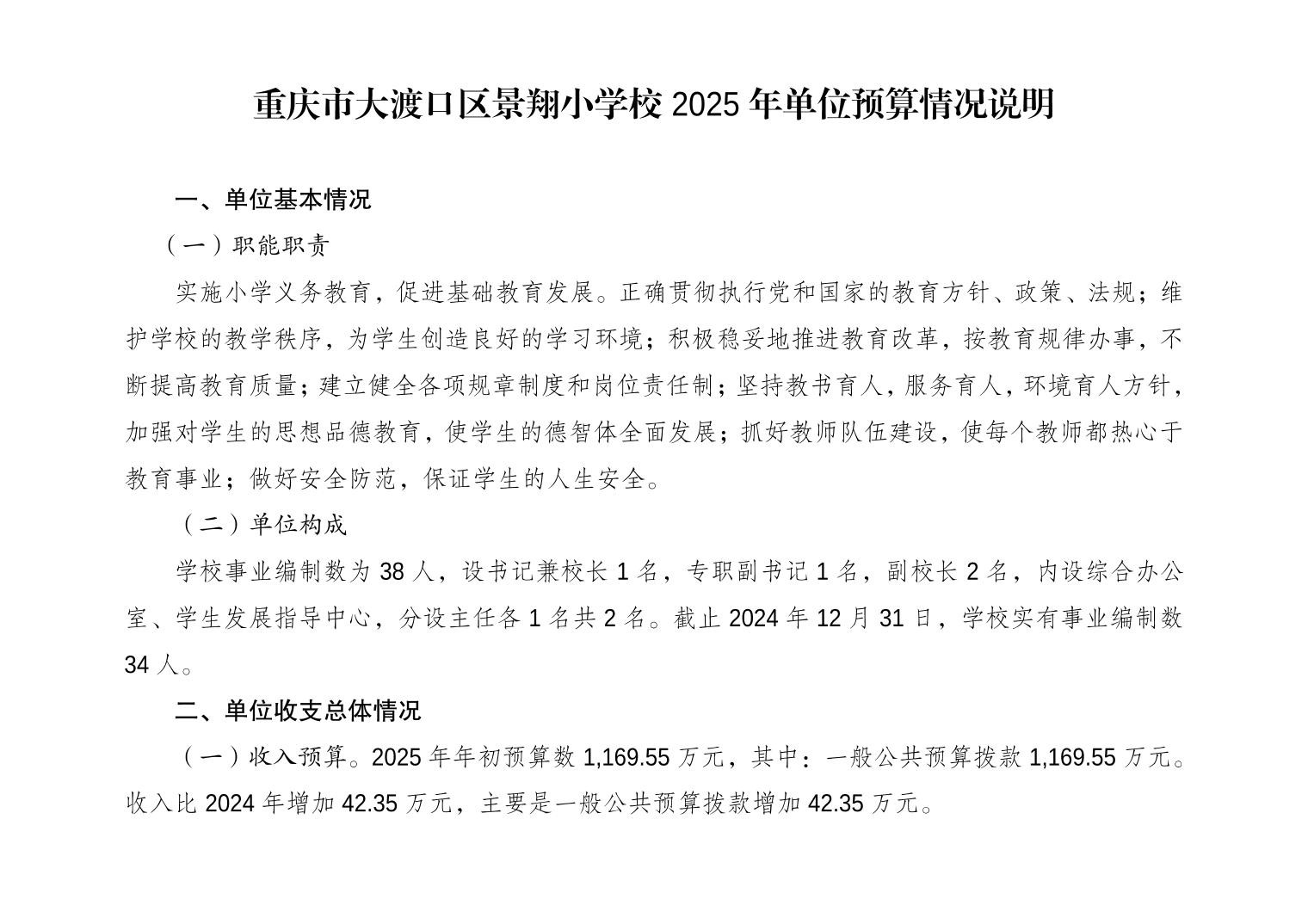 142043重庆市大渡口区景翔小学校2025年单位预算情况说明