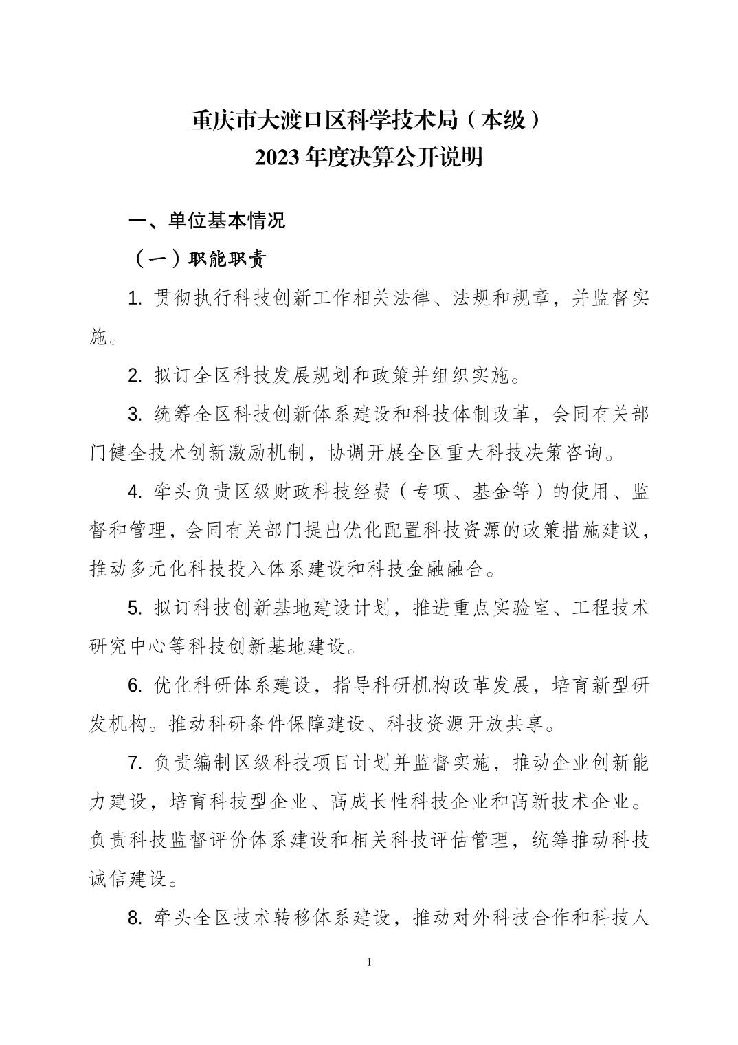 重庆市大渡口区科学技术局(本级)2023年度决算公开说明
